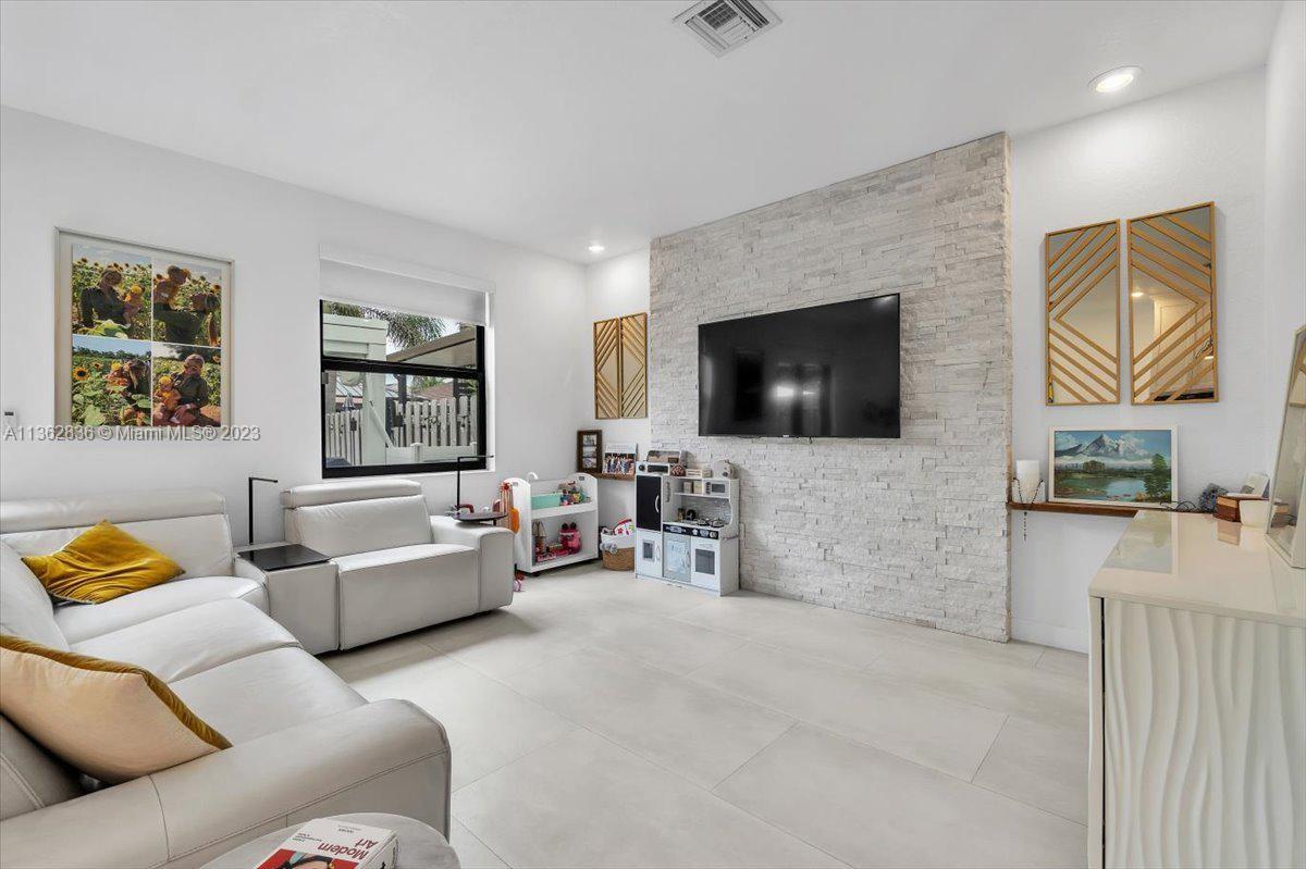 EXQUISITE TOWNHOUSE LOCATED IN THE MIAMI LAKES AREA, NO EXPENSES SPARED. BEAUTIFUL UPGREADED KITCHEN IN THE HEART OF THE HOME, WITH STONE BACKSPLASH AND COUNTER TOPS, 24X48 PORCELAIN TILE FLOORS THROUGHOUT. CUSTOM DESIGN WOOD STAIRWELL, WITH ARCHITECHURAL METAL ACCENTS. TOW COMPLETELY RENOVATED BATHROOMS WITH STONE AND NEW FIXTURES. BACKYARD HAS BEEN TOTALY REMODEDED WITH EXTERIOR MODE4RN DESIGNE FLOORING, INSTALLED ROOF PERGOLA AND ARTIFICIAL TURF. IMPACT WINDOWS AND DOORS, FULL HOME WATER PURIFIER BY PELICAN, TANKLESS WATER HEATER, SMART HOME FEATRUS ALEXA CAPATIBLE. ORIGINAL HOME DESIGNED PERMITTED GROUND FLOOR 4TH BEDROOM. EASY CONVERTIBLE. OVER $80,000 IN UPGRADES. A MUST SEE !