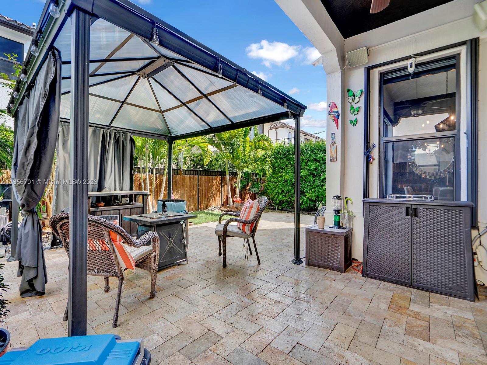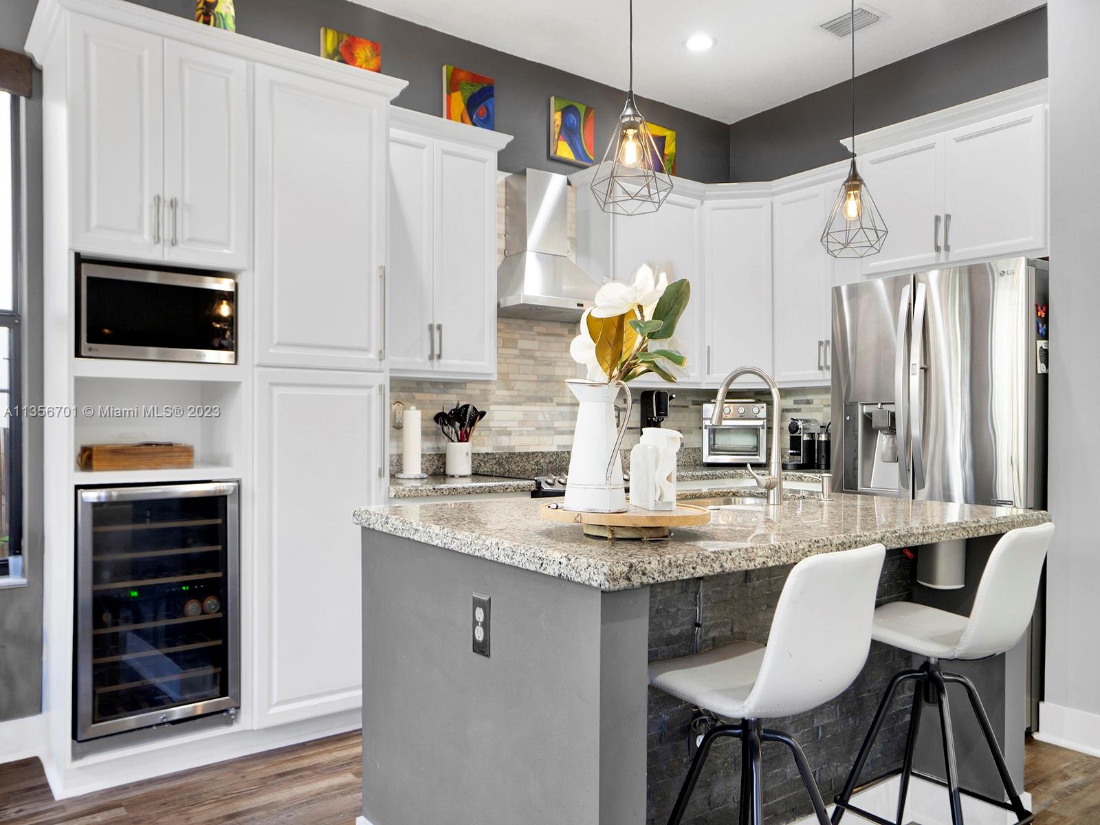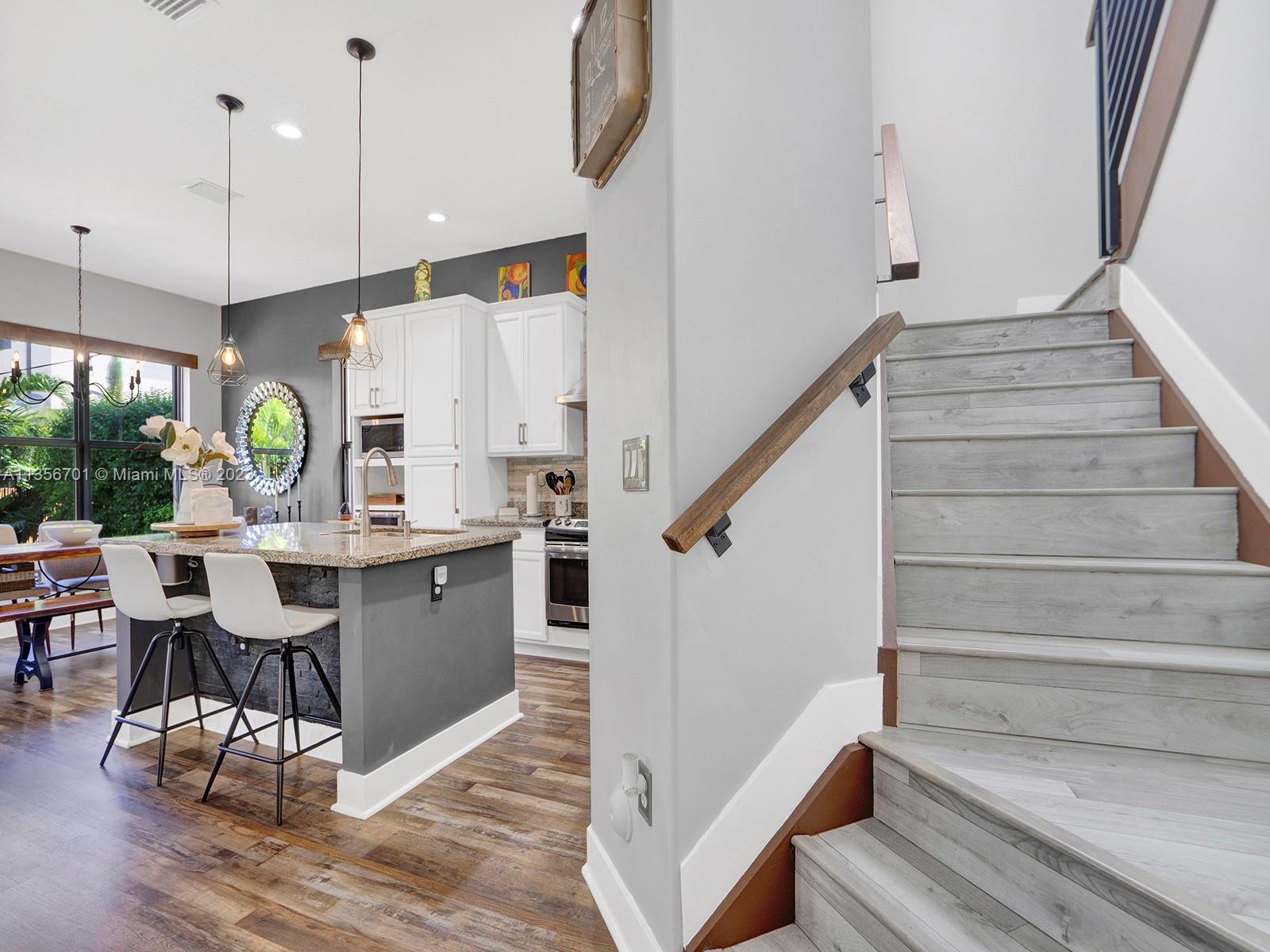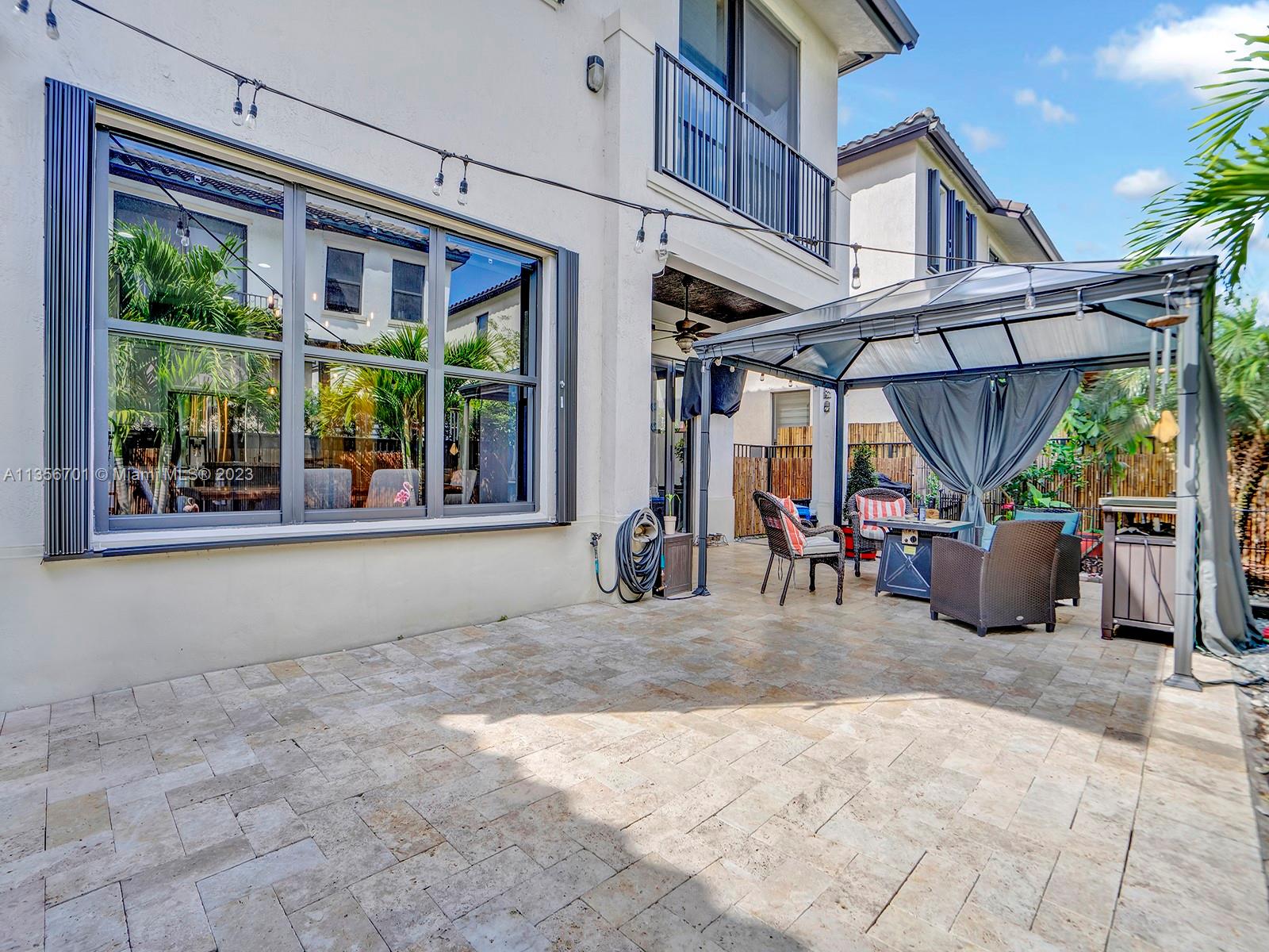 Fabulous 3/2.5 single family home w/2 car garage in the desirable gated community of Bonterra. Open floor plan, vaulted ceilings, spacious w/ample of natural light, custom wood cabinetry, chefs island, quartz countertops, energy efficient SS appliances upgraded fridge, dishwasher & wine cooler. Perfect home for entertaining w/several unique upgrades such as wood/aluminum railings, Hydro fix (waterproof) wood laminate floors, recessed lighting throughout, plenty of storage, oversize master, custom closet organization systems & more. Great backyard w/extended pavers, gazebo, lush greenery, & fence. Resort style amenities for the whole family to enjoy gym, pool, playground & more. Low HOA fee. Great neighbors & location. Easy access to expressways, schools, supermarket, & new strip mall.