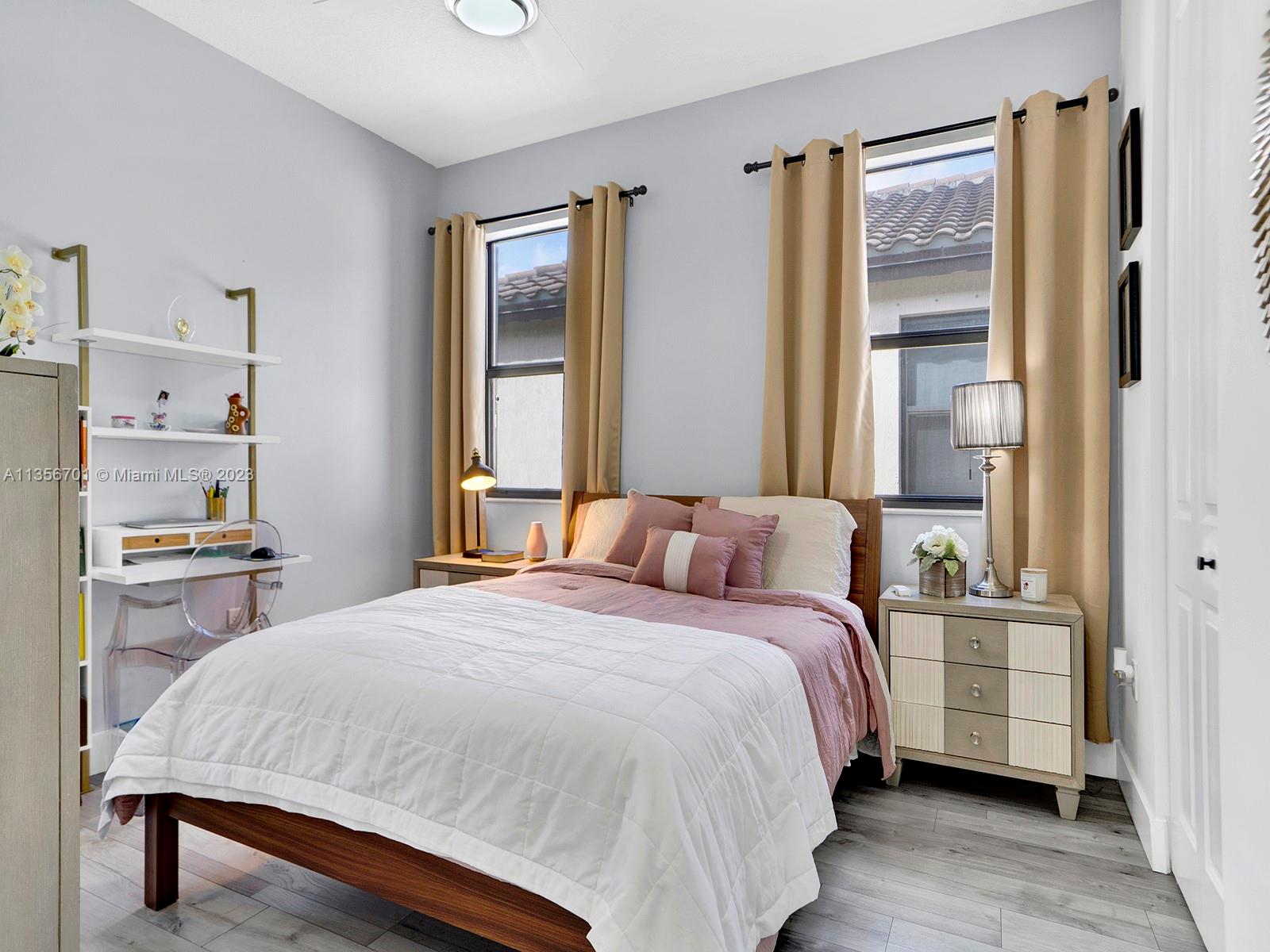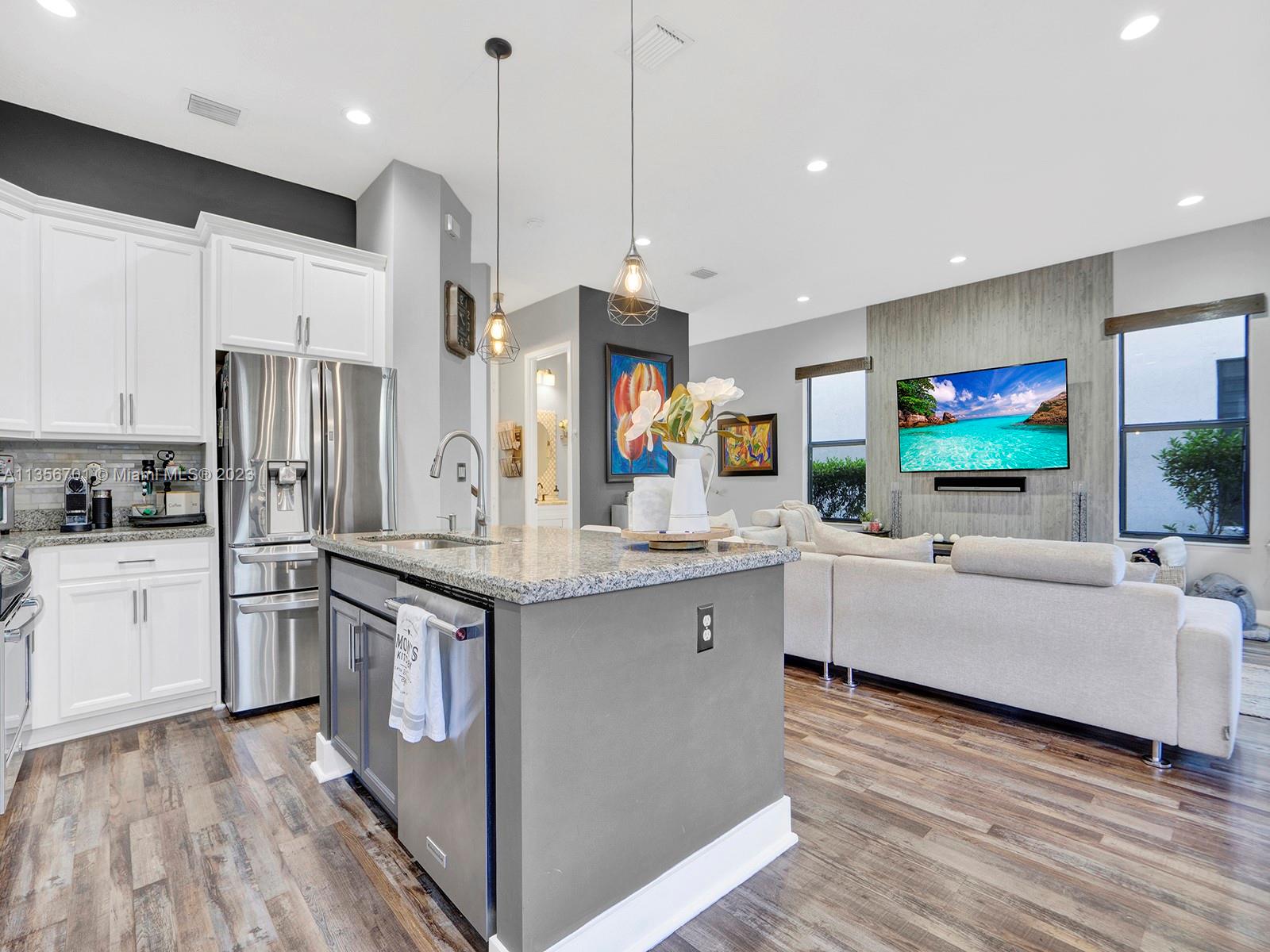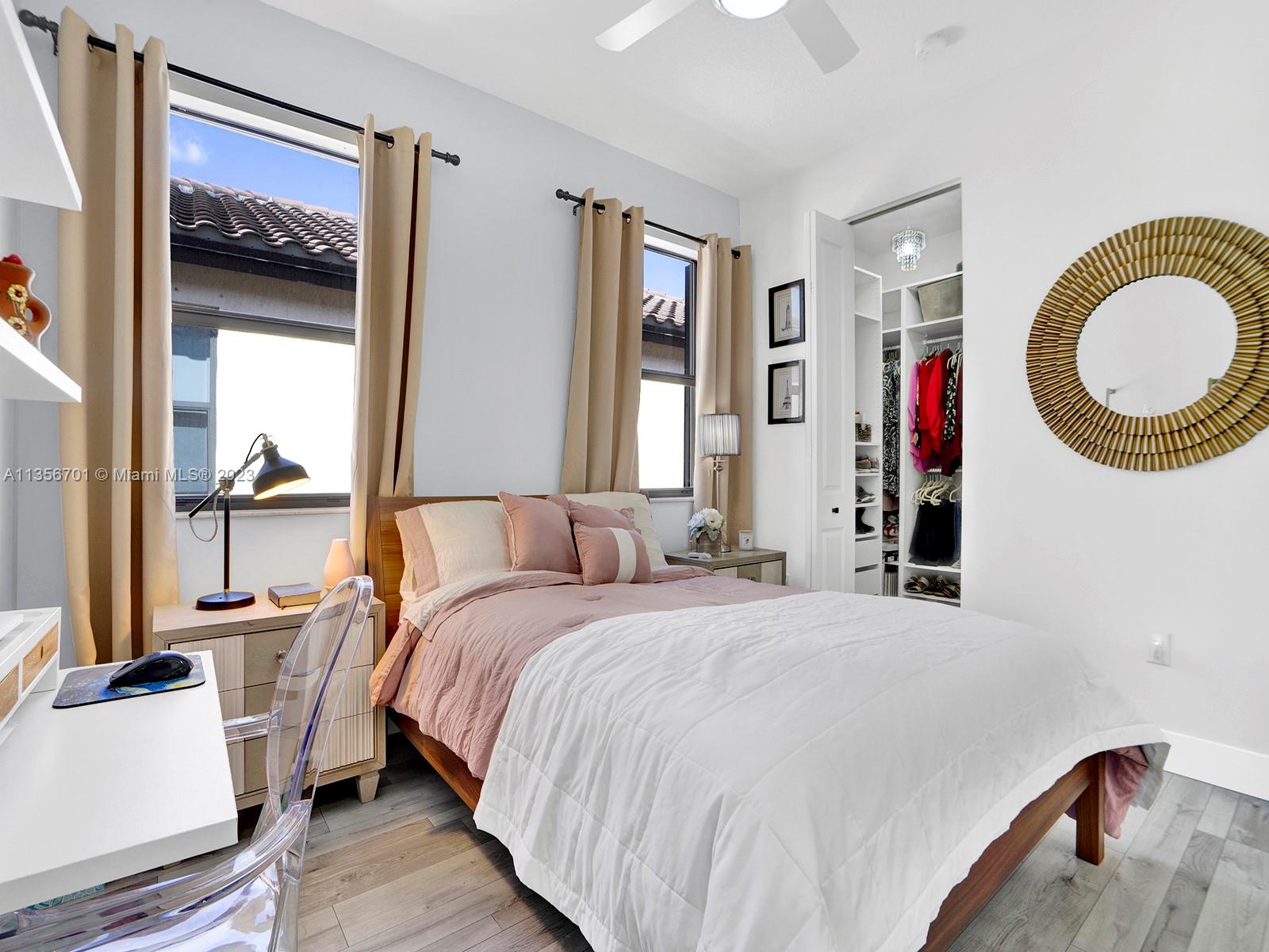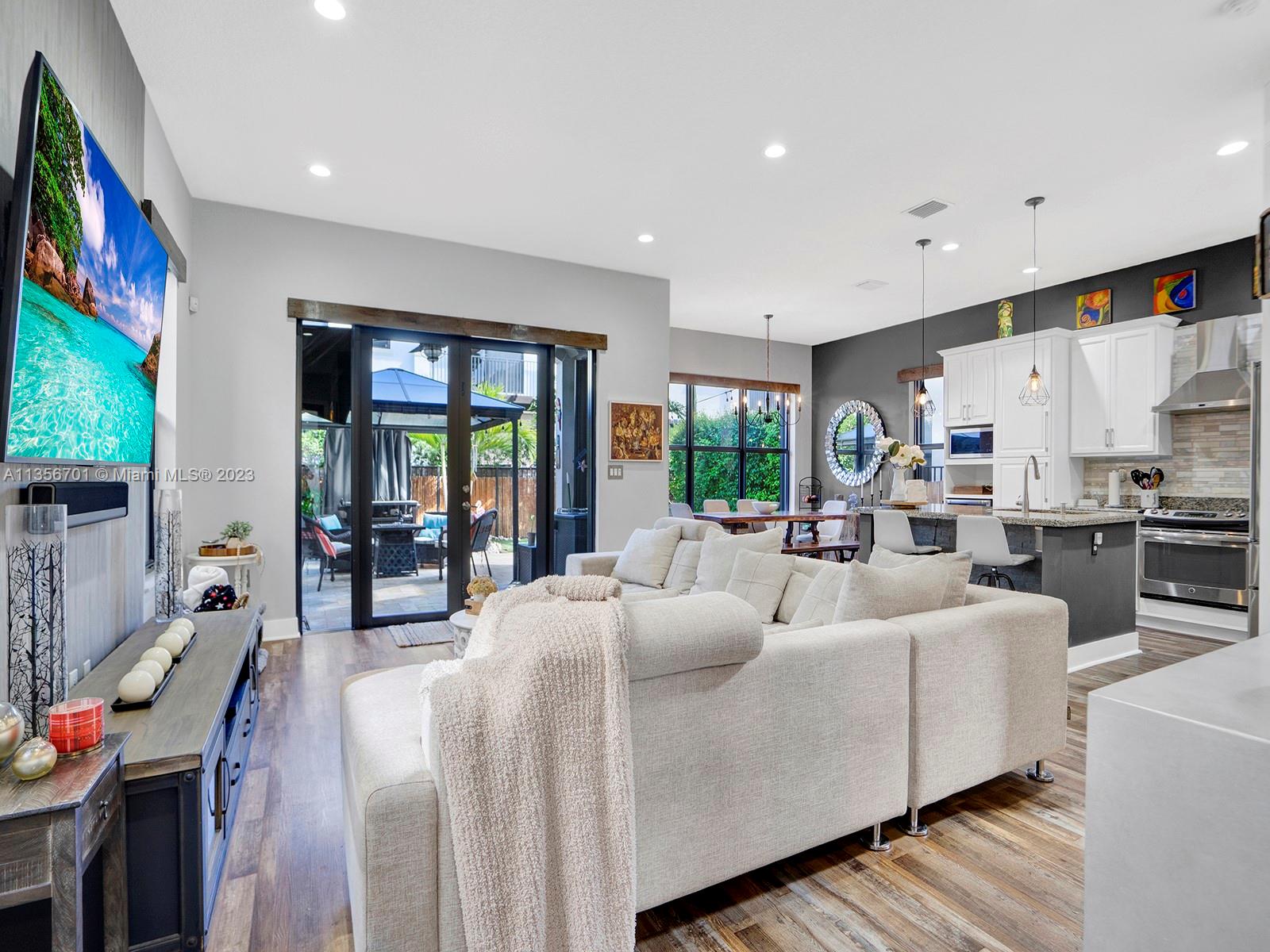 Fabulous 3/2.5 single family home w/2 car garage in the desirable gated community of Bonterra. Open floor plan, vaulted ceilings, spacious w/ample of natural light, custom wood cabinetry, chefs island, quartz countertops, energy efficient SS appliances upgraded fridge, dishwasher & wine cooler. Perfect home for entertaining w/several unique upgrades such as wood/aluminum railings, Hydro fix (waterproof) wood laminate floors, recessed lighting throughout, plenty of storage, oversize master, custom closet organization systems & more. Great backyard w/extended pavers, gazebo, lush greenery, & fence. Resort style amenities for the whole family to enjoy gym, pool, playground & more. Low HOA fee. Great neighbors & location. Easy access to expressways, schools, supermarket, & new strip mall.
