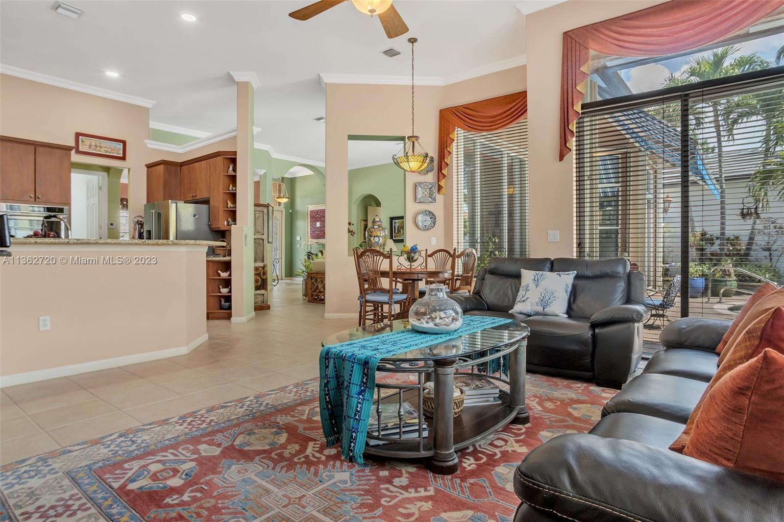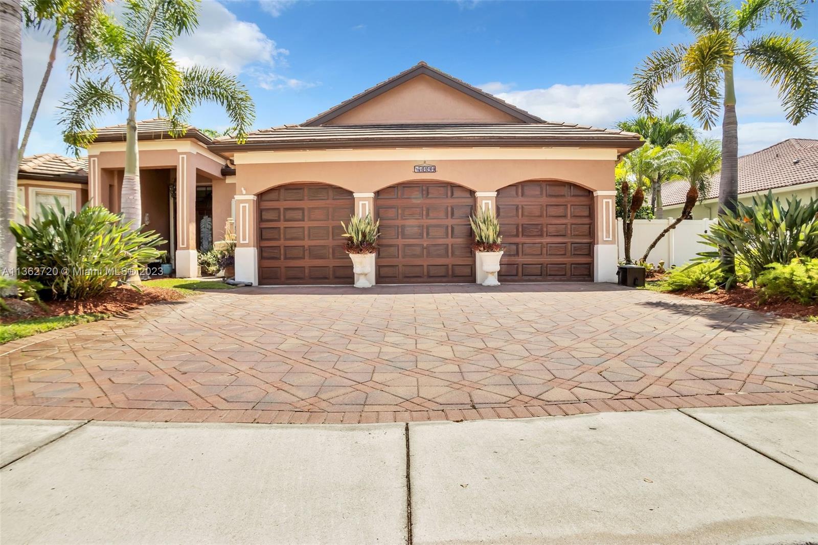 Impecable and beautifully maintained property by the original owners in the desirable community of The Estates of Pembroke Shores. Walk through the doubled doors to see the high ceilings and the perfectly designed space overlooking the pool and serene backyard. The kitchen features granite tops and TOP OF THE LINE appliances. This home was originally built with 2 master bedrooms (2 bedrooms were turned into one large bedroom) which is perfect for siblings or in law suite. The third bedroom is also large and is currently used as an office. The master bedroom overlooks the pool and the master bathroom is very spacious, has a double shower and a nice roman tub. Crown molding throughout the house. With 3 car garage and a large driveway there is plenty of space for parking.