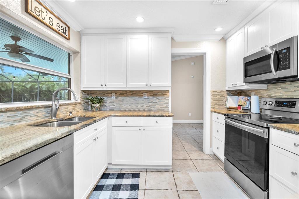 READY TO CALL THIS HOUSE YOUR HOME! LUSH LANDSCAPING & RELAXING FLOOR PLAN WITH PLENTY OF NATURAL LIGHT. TOTALLY REMODELED BATHROOMS AND UPDATED WATER HEATER AND AC UNIT. GRANITE COUNTER TOPS, LOTS OF KITCHEN CABINET STORAGE, CROWN MOLDING, FULL IMPACT WINDOWS AND DOORS, & NEST CLIMATE CONTROL. MASTER SUITE W/LARGE MASTER BATH, HUGE WALK-IN CLOSET. SEPARATE LAUNDRY ROOM. SPACIOUS SEPERATE LIVING AND FAMILY ROOMS. PRIVATE SCREENED IN POOL AND COVERED PATIO.