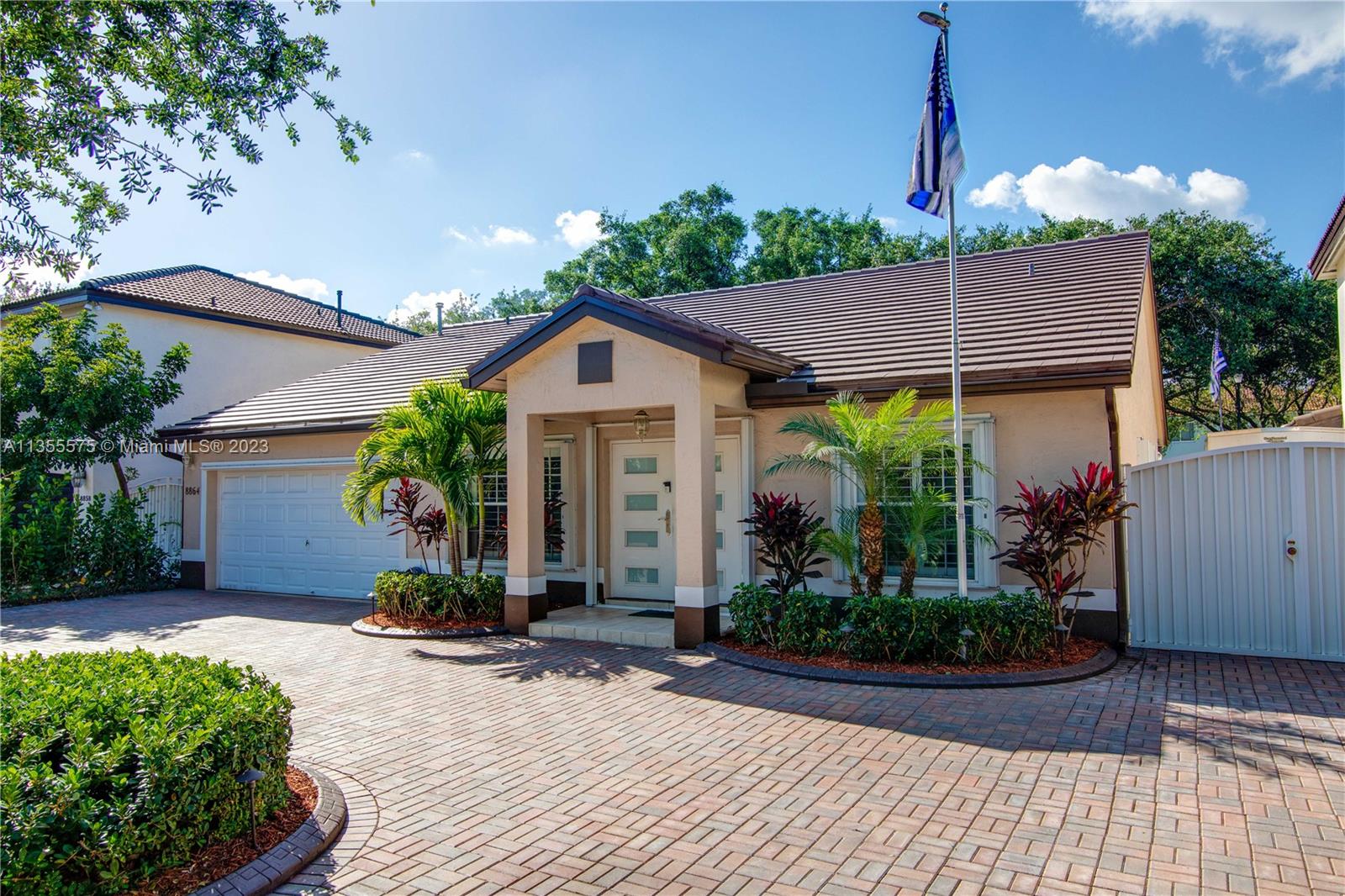 ** JUST REDUCED ** Highly Desirable GATED COMMUNITY of LAKES ON THE GREEN!! Located Directly Center of Dade & Broward County Next To I-75. Minutes From Beaches, Airport & More. Spacious Home Sits Off The Cul-De-Sac Providing Added Privacy. Property Features BRAND NEW 2023 FLAT CONCRETE ROOF, NEW 2022 Stainless Steel REFRIDGERATOR, White PLANTAIN SHUTTERS Added in 2022, Luxury Vinyl Flooring throught and Exterior Driveway Pavers Installed in 2020. A/C Relatively New From 2017. SAFETY FEATURES Include: Accordion SHUTTERS Throught & HURRICANE IMPACT French Door Entry. SPLIT BEDROOM Floorplan Offers ROMAN TUB With Massage Jets & Shower Inside The Primary Bedroom. CUSTOM SHELVES In the TWO CAR GARAGE Allows For Effortless Organization. Washer/Dryer Does NOT Convey. BY APPOINTMENT ONLY.