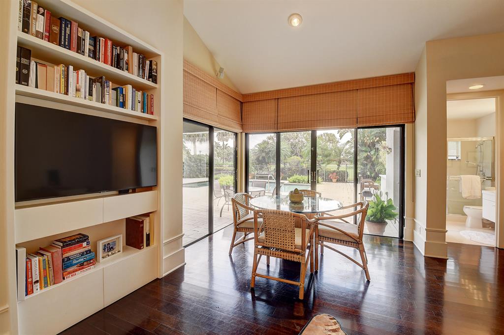 Elegantly appointed 3 bedroom, 4.5 bath home. Professionally designed . Mahogany wood plank floors, custom moldings, open kitchen and family room featuring a large granite topped island. Wonderful storage areas and beautifully appointed detailing abound in this amazing property.The home has a warm and rich feeling when you enter and has been beautifully maintained. From the entry way of the home, you can look thru to the pool area and golf course.The master suite is large and gracious and most rooms look out to the spacious pool area overlooking the 13th hole on Dye IV.There are motorized hurricane shutters thru-out. The 2 AC systems are new, and the roof is in good condition.Exclude: Living room and Master Drapes and Valance, Roman shade in bedroom ; Entry Lantern