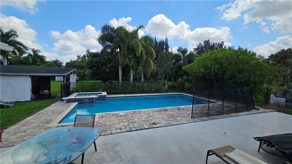 Welcome to Southwest Ranches. Wonderful 4/2, pool home, fully fenced, over an acre. Roof 7yrs, Impact windows and doors 2019, 400 ft deep well for crystal clear water. 1yr pump. 2 central AC units. 5 ton 2017 and 2 ton 2021. Huge kitchen w custom cabinets, granite counter tops, open to dining area, family room, overlooking pool. Formal LR w new carpet. Split bedroom plan. Master bedroom w bonus room, leading to pool, master bath w updated countertop, double sinks, walk-in shower, 2 closets. Three bedrooms w second bath on the other side, one Bed Room off the laundry room. Bath#2 updated 2019. Laundry Room, w door to outside, stackable W/D, laundry tub, cabinets, loads of storage space. Bring your horses, ride your 4-wheeler, enjoy Avocados, Mangoes, Guava, and more. Great Schools Included!