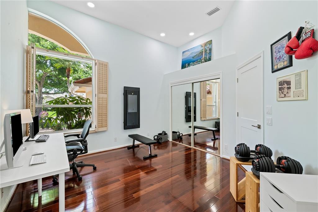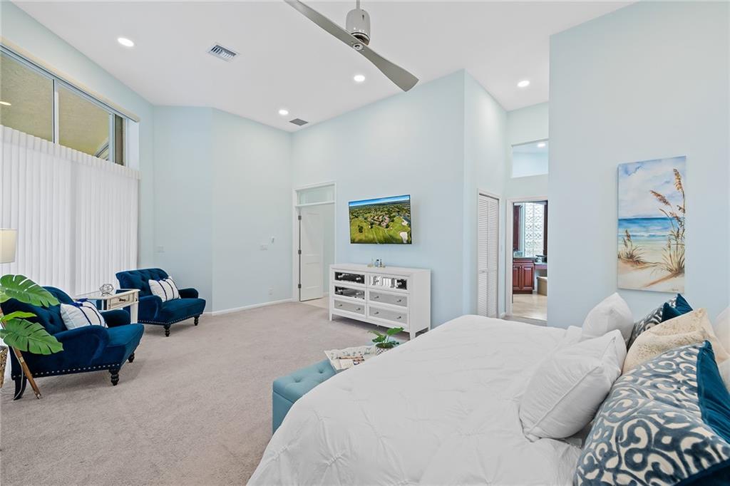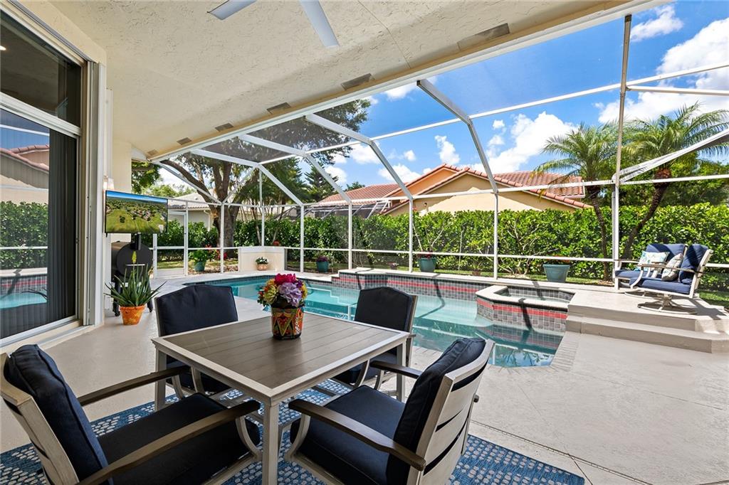Stunning, one story home, situated on a large lot, on cul-de-sac with ample parking. Located in the guard gated, golf & tennis comm, Eagle Trace. 3 way split floor plan, perfect for (in-law, au pair or game room), 12' ceilings & tons of natural light. Wood kit cabinets, quartz counters, double oven & walk in pantry. Main bdrm w/sitting area, custom closets, ensuite w/ double vanities, separate shwr & jetted tub. 2 new A/C (handlers, compressors & ducts.) New LED recessed lighting, ceiling fans, rocker switches, outlets & interior doors. Laundry rm w/storage & sink. Screen enclosure, great for in/outdoor living w/salt water heated pool & spa. New pool pump & heater. Outdoor kit connections - electric, plumbing & exhaust. Privacy hedge, manicured landscape & irrigation system. And much more