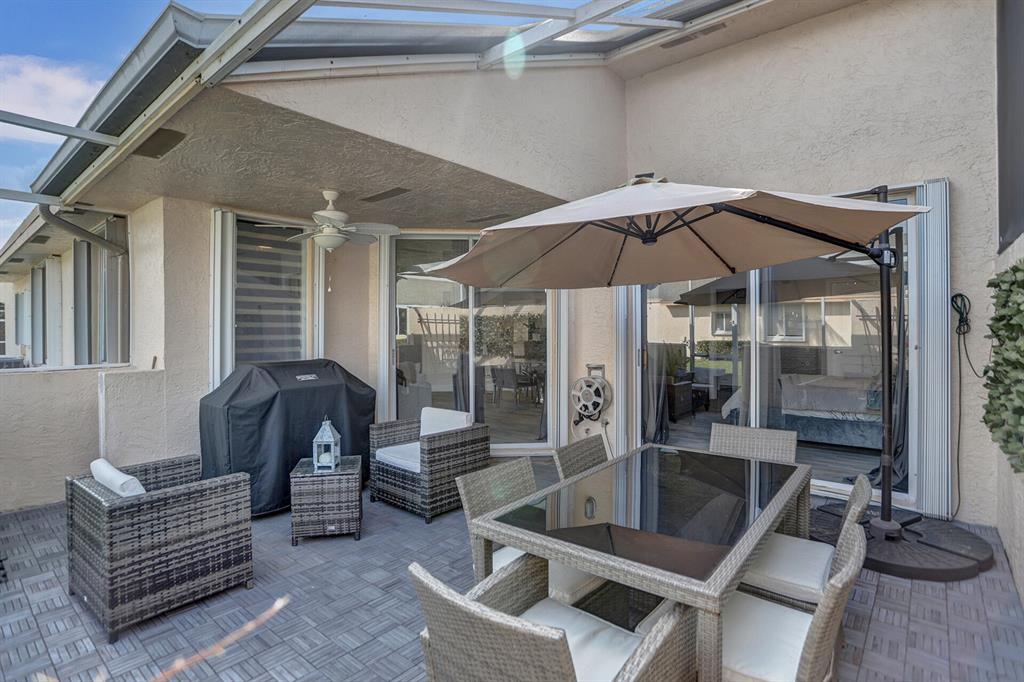 Gorgeous 3 bedroom 2 bath villa located in the well known community of Boca Gardens. Excellent West Boca neighborhood, close to nearby shopping and dining, just walking distance! Remodeled, this spacious 1566 square foot home feels like a single family with high ceilings, walk in closet, one car garage and screened in private patio. Finishes include gray wood tile floors, white wood shaker cabinets, gray speckled granite countertops and more..Modern updates and open floor plan. Garage parking, driveway and plus 1 assigned parking space. Community has three pools, tennis court, racket court and basketball court. Great school district! Furniture and exterior patio/grill furniture negotiable. 1989 Total Sq Ft.-BRAND NEW ROOF SOON TO BE INSTALLED.
