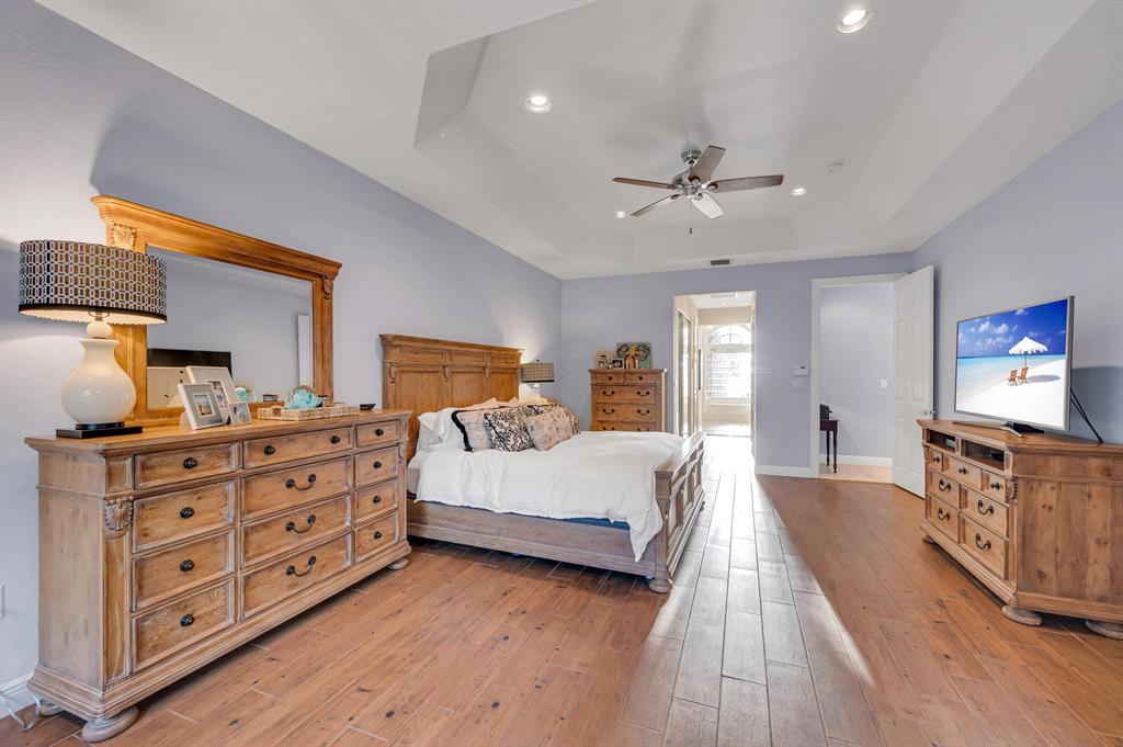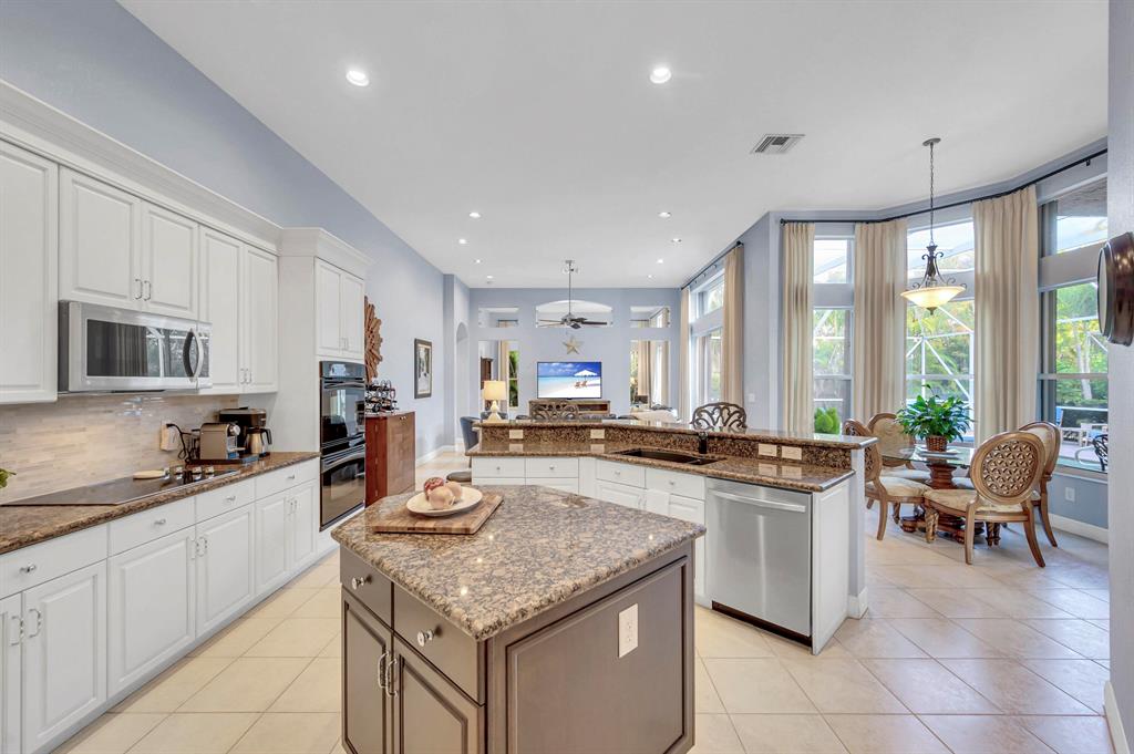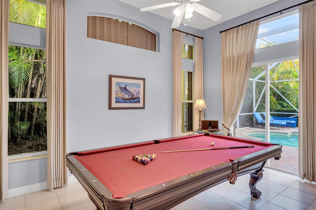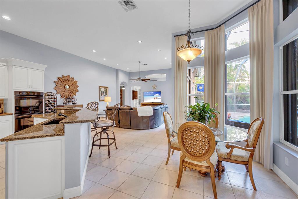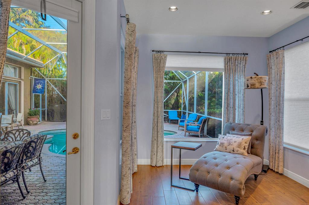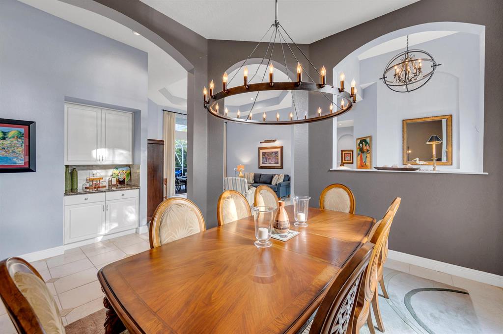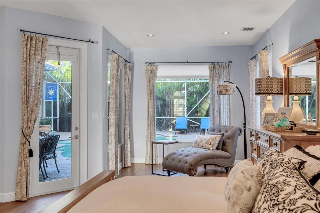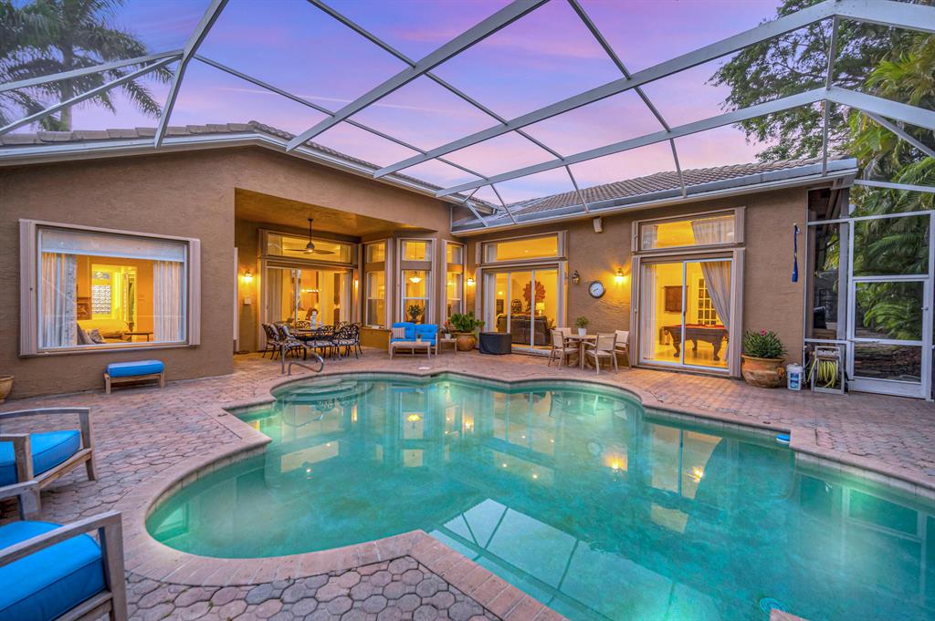 Stunning 1-story Raphael model located in the desirable gated community of Saturnia. It boasts 5 bedrooms and 3 baths, spacious living areas perfect for entertaining, and a stunning pool and lush backyard that can be admired from all main living areas. The master suite offers a peaceful spacious retreat with large windows that overlook the pool, as well as built-out his/her walk-in closets, dual sinks, a separate shower, and tub. The gourmet kitchen features top-of-the-line appliances and a large island, while other great features include accordion shutters, a screened-in heated pool, a 3-car garage, 2 A/C units, and a bonus playroom. This home is conveniently situated near highly-rated schools. Saturnia provides a range of amenities such as a resort-style pool, gym, tennis court, and more