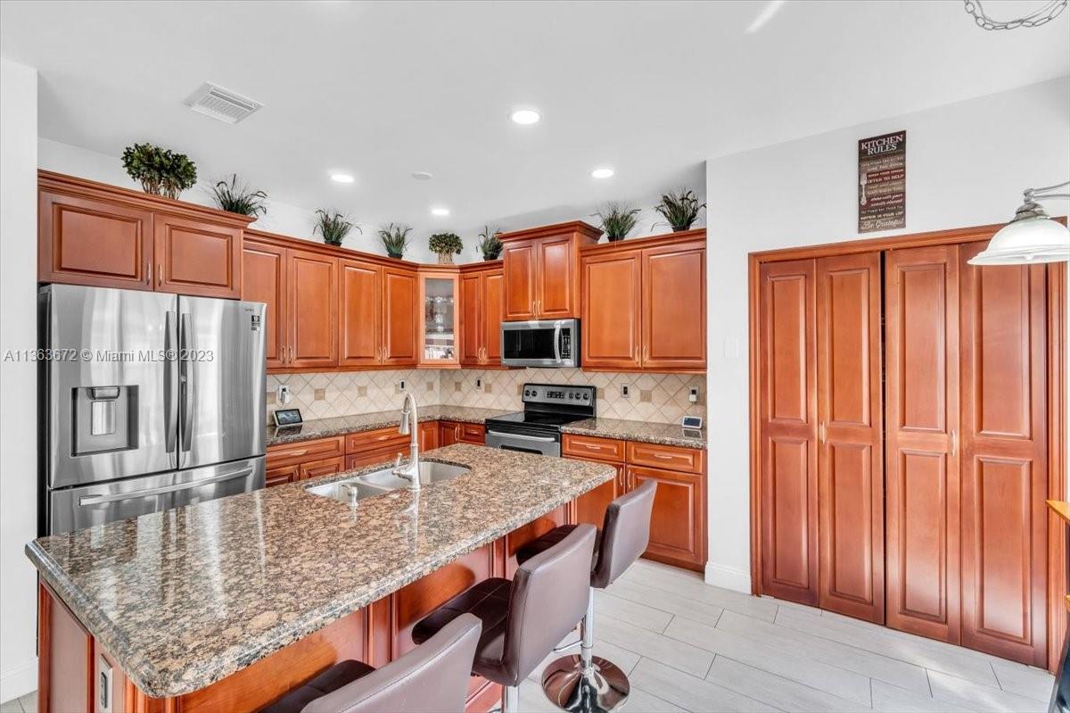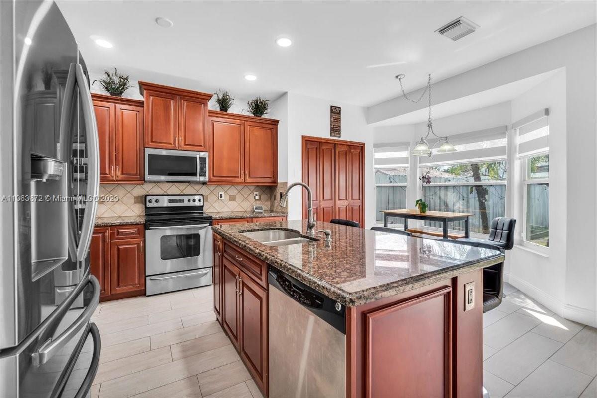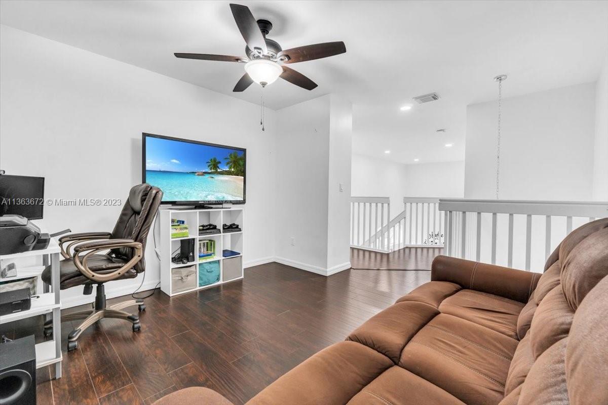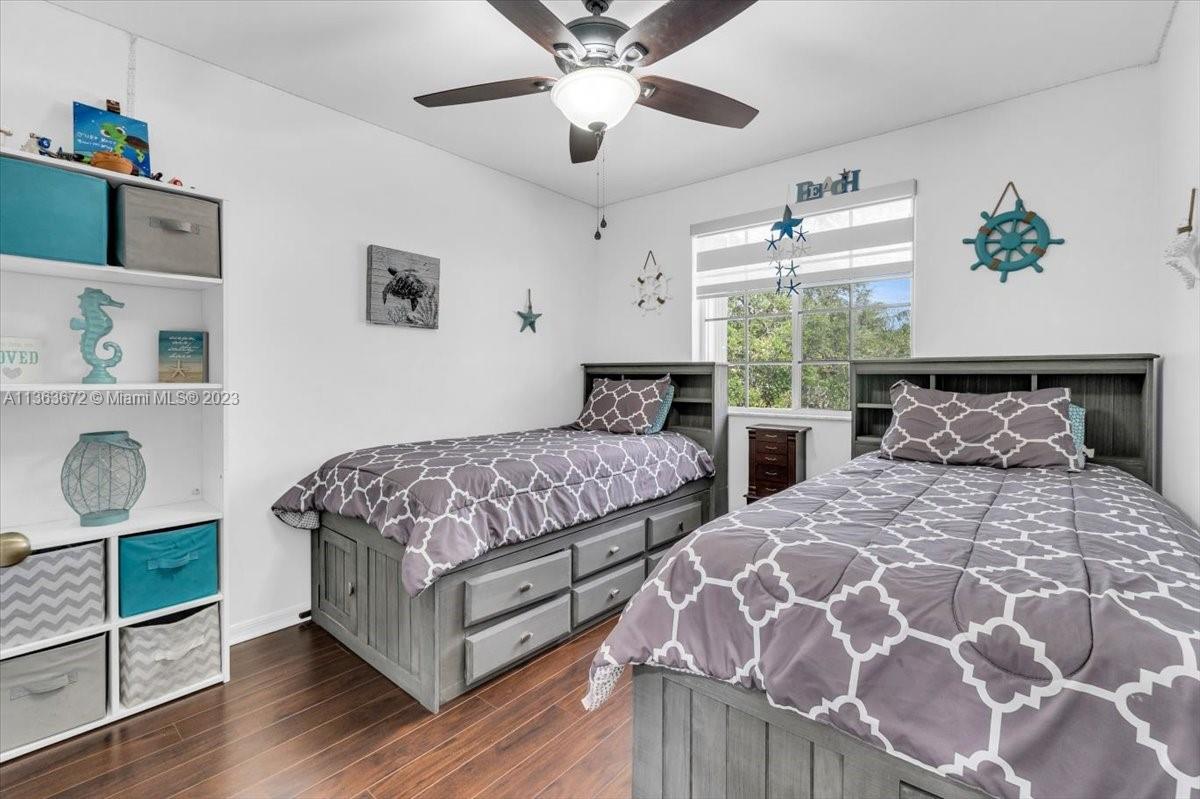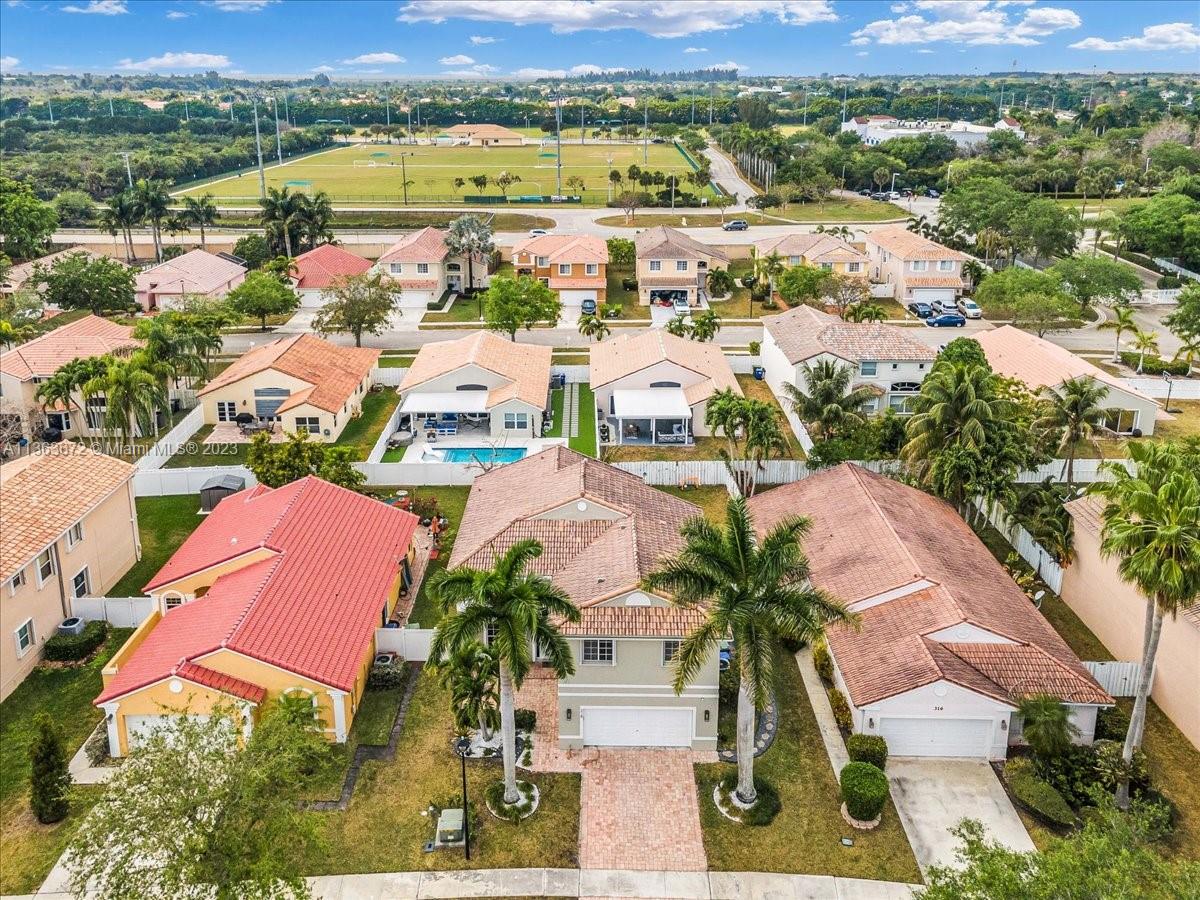 A beautiful 2-story home with 4 bedrooms, 2.5 baths and over 2400 sf in one of Pembroke Pines most sought-after neighborhoods - Estancia! Additional loft space added for bonus room/office or could be a 5th bedroom. This home features tile floors downstairs & dark wood upstairs, vaulted ceilings and updated baths. The beautiful and open kitchen area has many cabinets, pantry, plus eat-in area and exits out to the backyard. Main bedroom is located upstairs with updated modern bathroom with large shower. Separate living and family room area. Spacious, fenced backyard with plenty of room for a pool. The garage has a full-size drop-down screen door. Close to pool and amenities. Estancia offers a gated community with 24-hour guard, pool, playground, bike/jogging trails & plenty of green space.