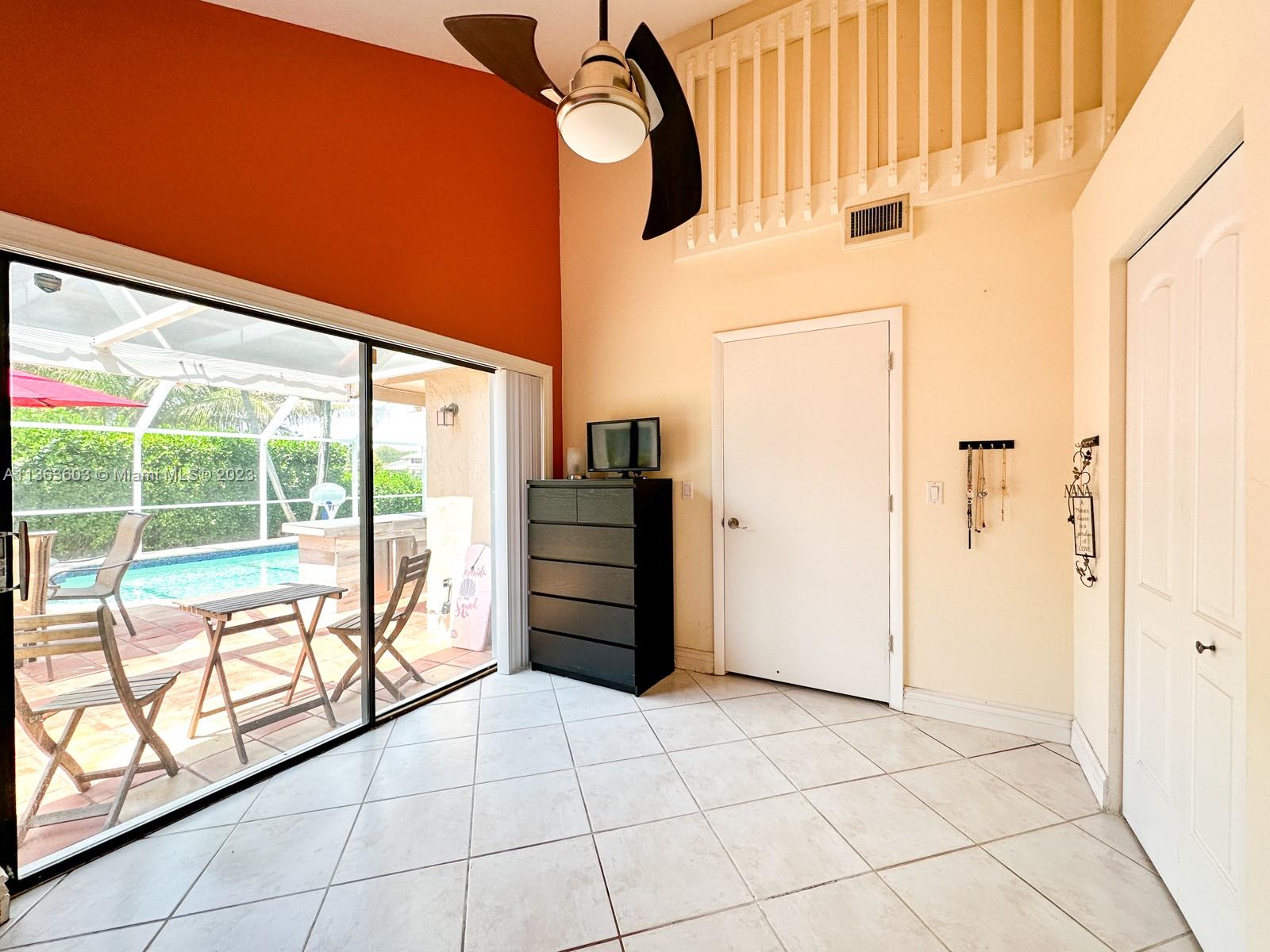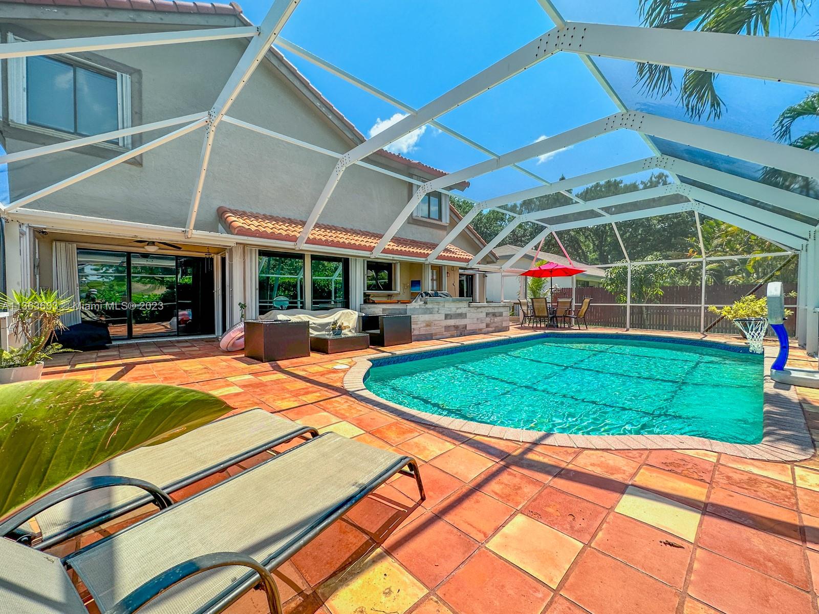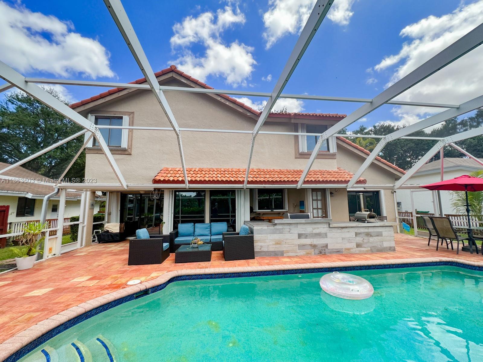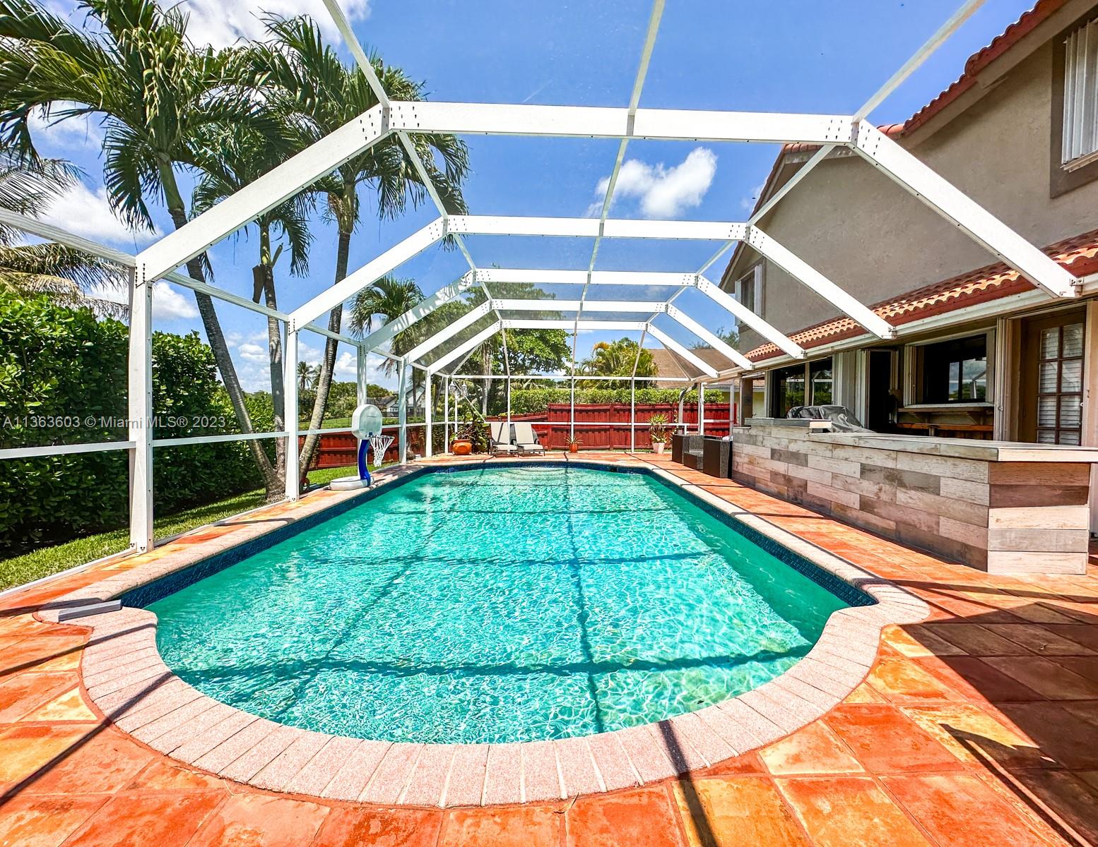 This stunning 4 bedroom, 3 bath lakefront home is located in one of the most desirable communities in Cooper City. The home features an open floor plan with plenty of natural light with views of the lake from nearly every room. The kitchen has stainless steel appliances and granite countertops, and the bathrooms have been updated with new fixtures and vanities. The master bedroom is spacious and features a walk-in closet and en suite bathroom. The loft can be converted to a 5th bedroom, used as a playroom or home office. The backyard is fully fenced and features a sparkling pool with a screened-in patio, perfect for entertaining guests or relaxing on a hot day. The home also has a 2 car garage and is located in a quiet neighborhood with great schools within walking distance.