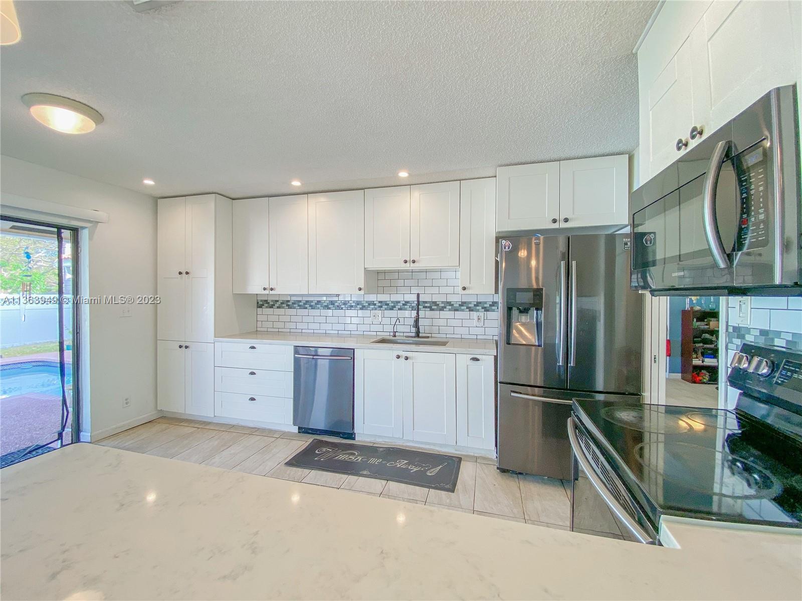 Welcome to Coral Springs Highly Desirable The Crossings. Spacious 8,500 SF Corner Lot - Four Bedroom Two Bathroom Single Family with Two Vehicle Garage, Pool, and Brand New Fenced Backyard. Step into this Open layout Updated Kitchen, with Custom Cabinetry, and Stainless Steel Appliances. Family Room with Double Sliding Doors Leading to Private Pool as well as Living Room with Vaulted Ceiling and Separate Dining Area. The Primary Bedroom has a Walk-in Closet and In-suite Bathroom w/ door a Leading to the Pool. Energy Efficient Solar Power Water Heater and State of Art Water Softening System.