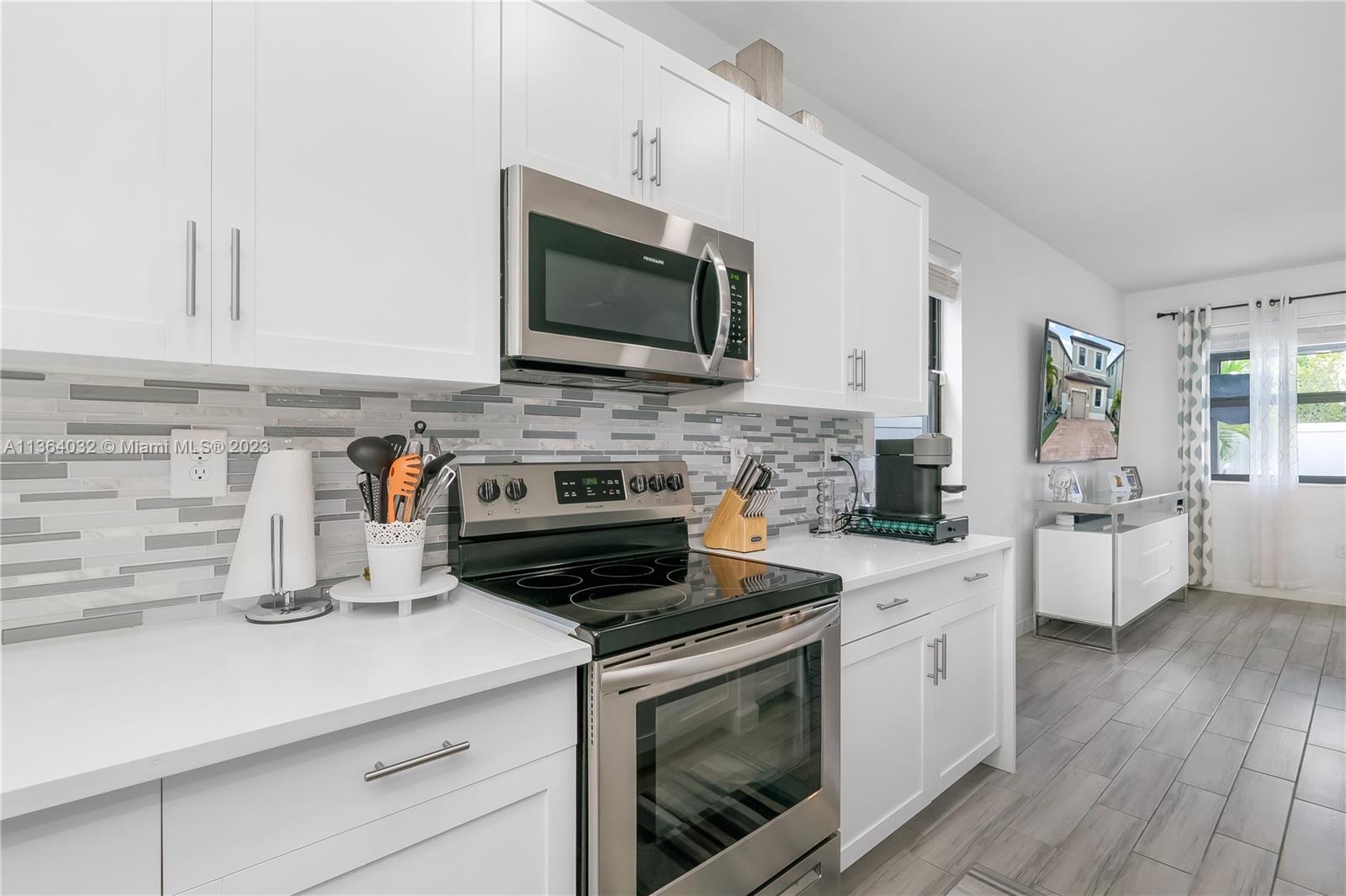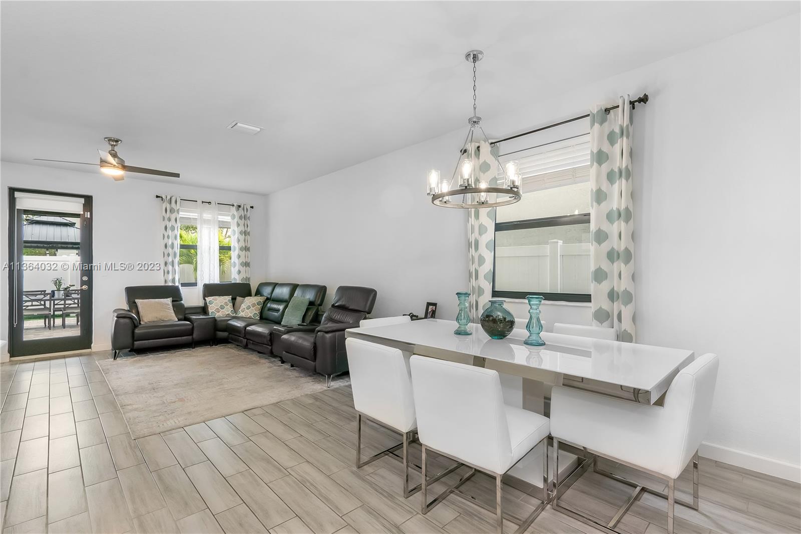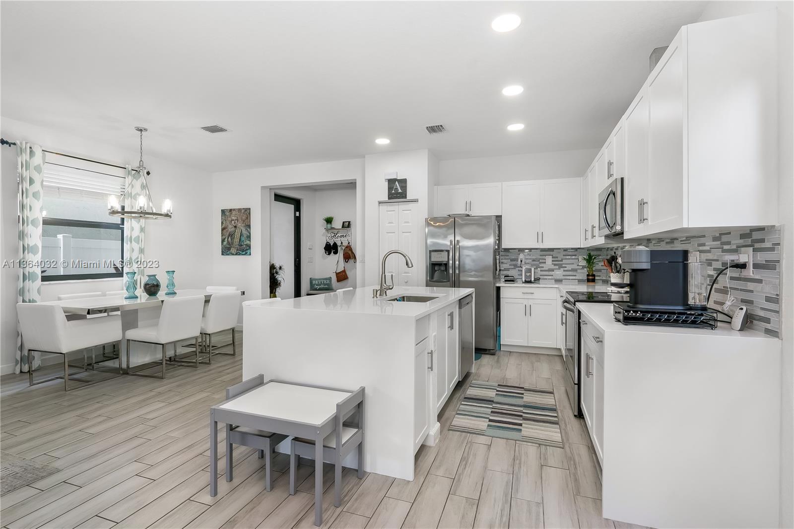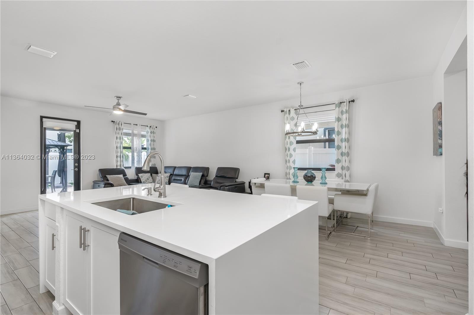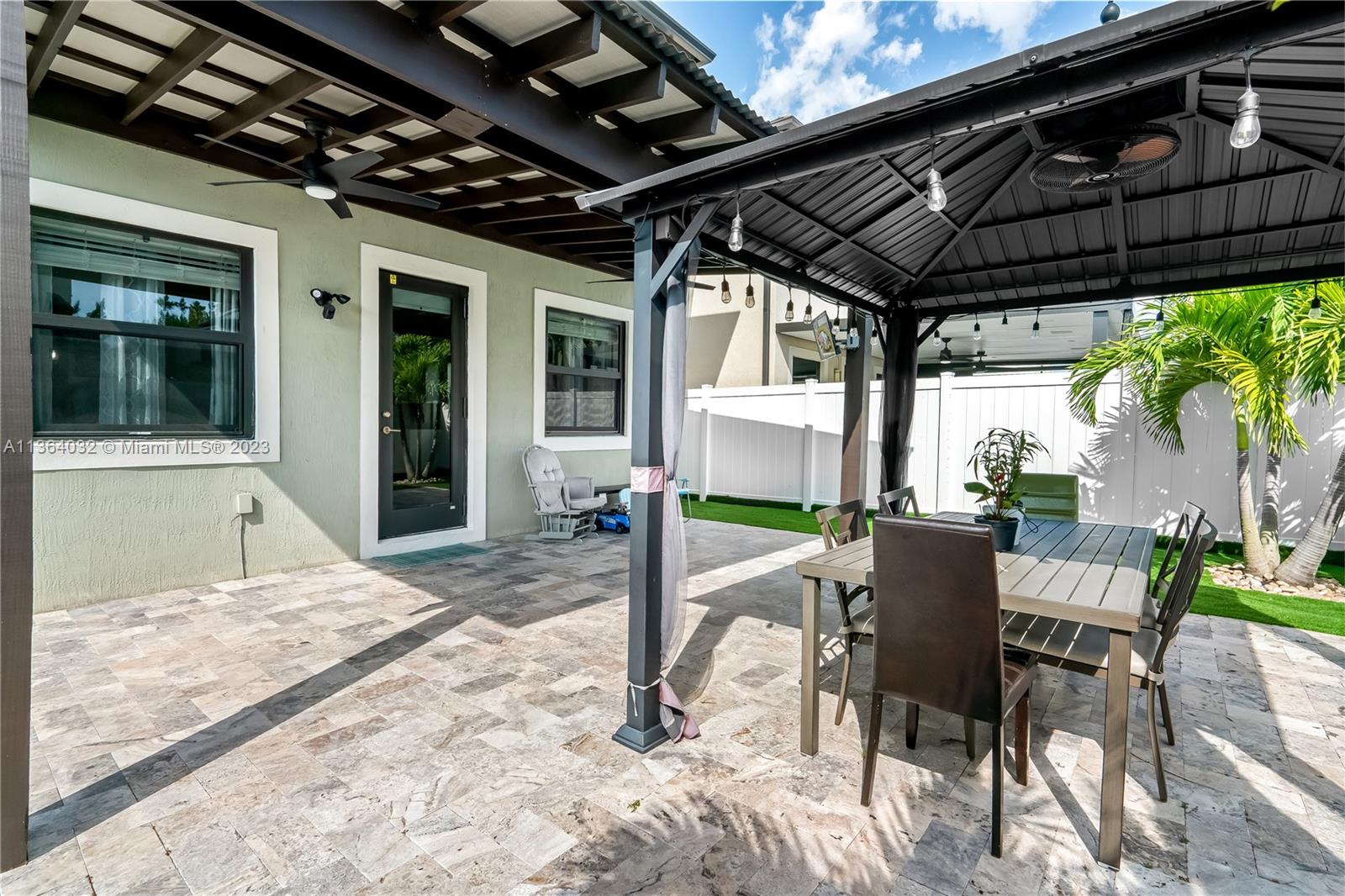 This stunning 4-bedroom, 3-bathroom house is situated in a gated community with 24-hour security. As you enter the home. The first floor boasts a conveniently located bedroom with a full bathroom, perfect for visiting guests. The impact windows throughout the house provide both security and allow natural light to flood the living spaces all day long. The expansive living room is perfect for entertaining family and friends, with a direct view of the completely fenced patio making indoor and outdoor living seamless. The kitchen is an absolute chef's dream, fully equipped with modern stainless-steel appliances and ample counter space. The second floor has a huge master bedroom/walk-in closet. In addition to all these amazing features, part of the garage has been converted into an extra room.