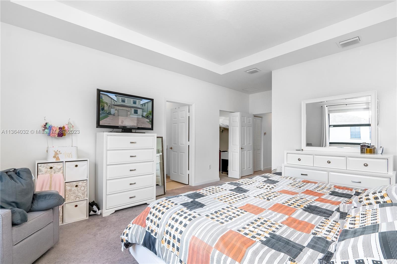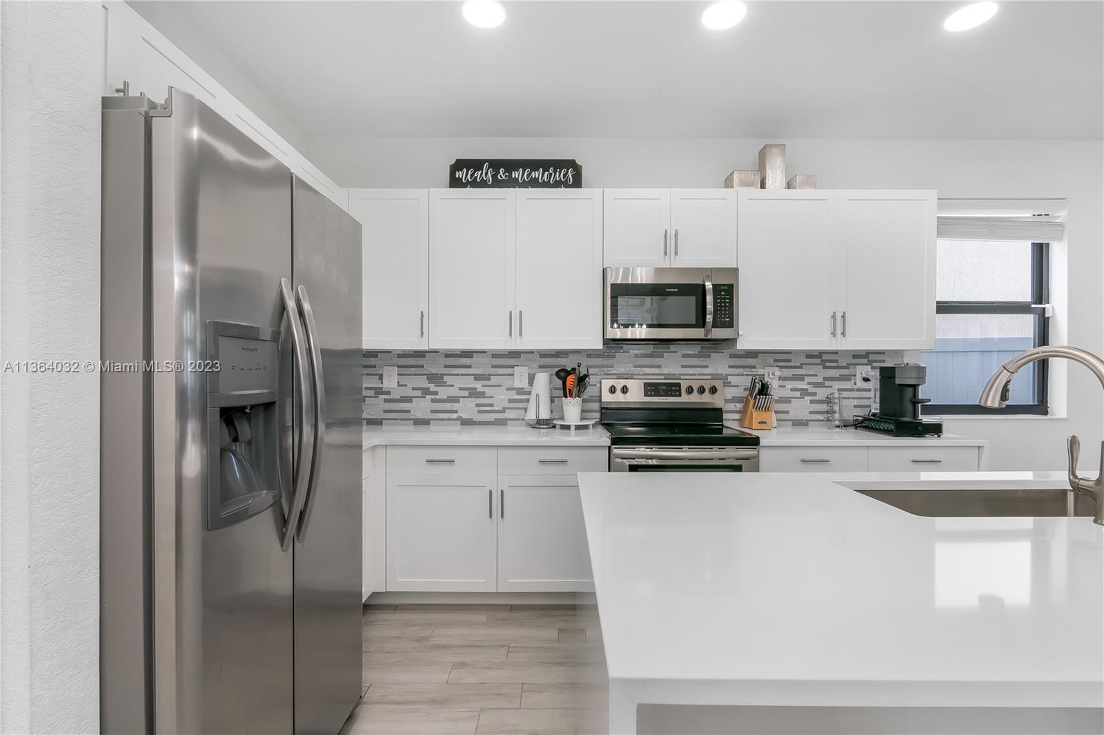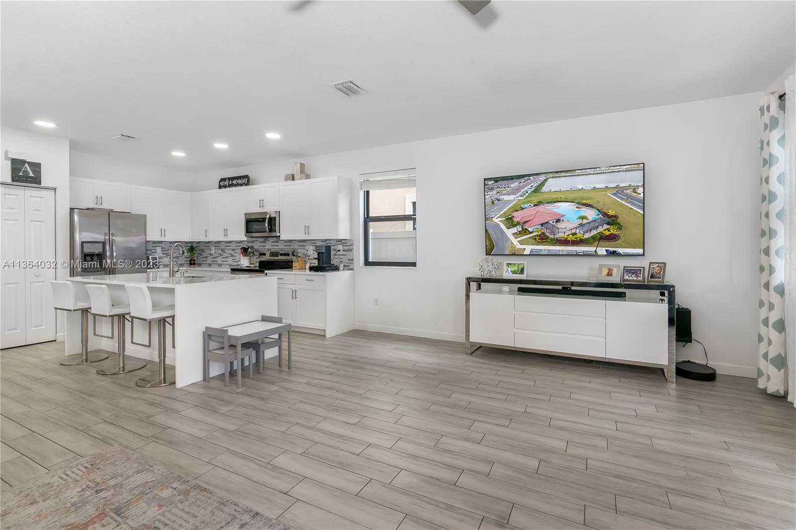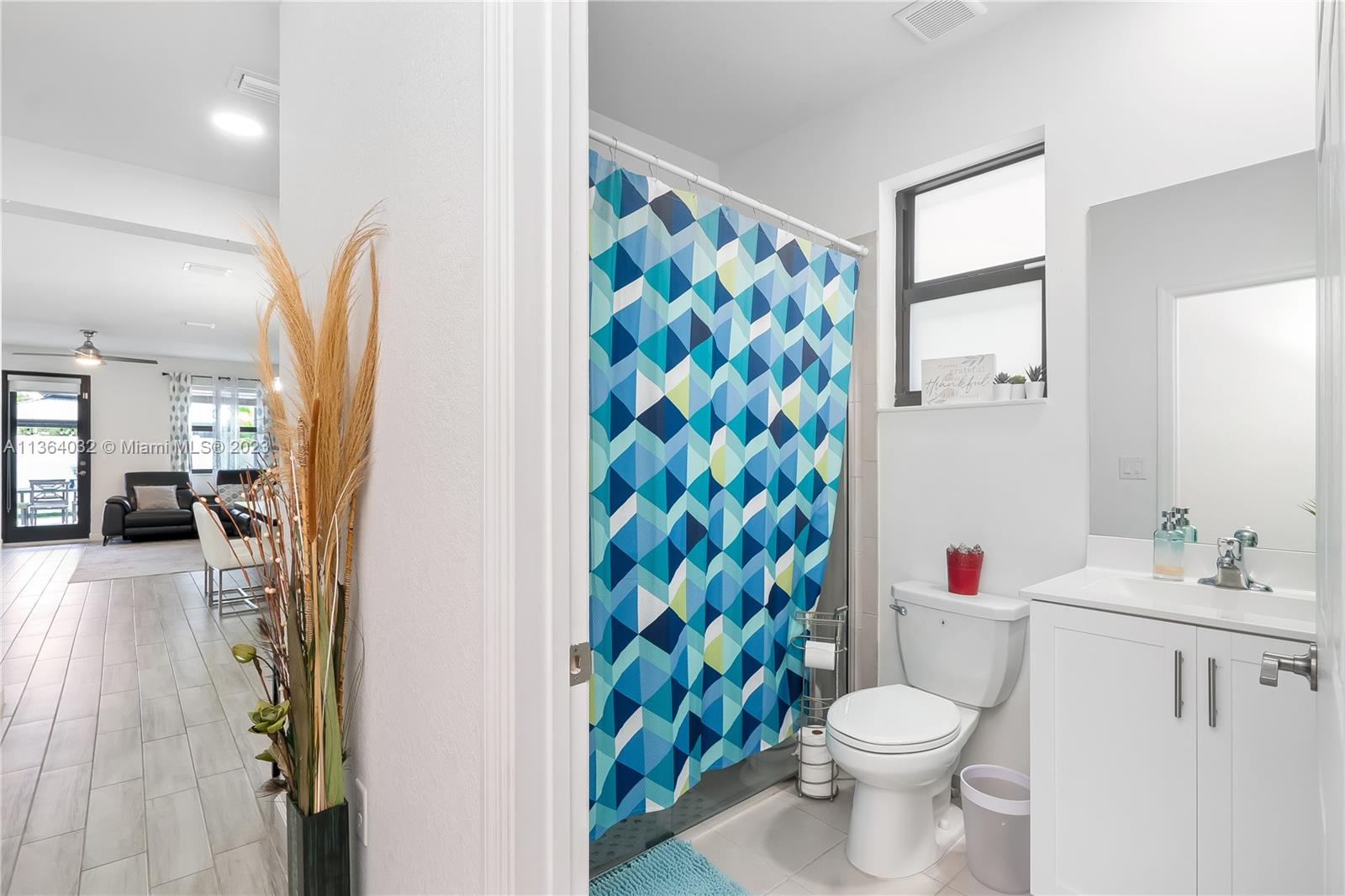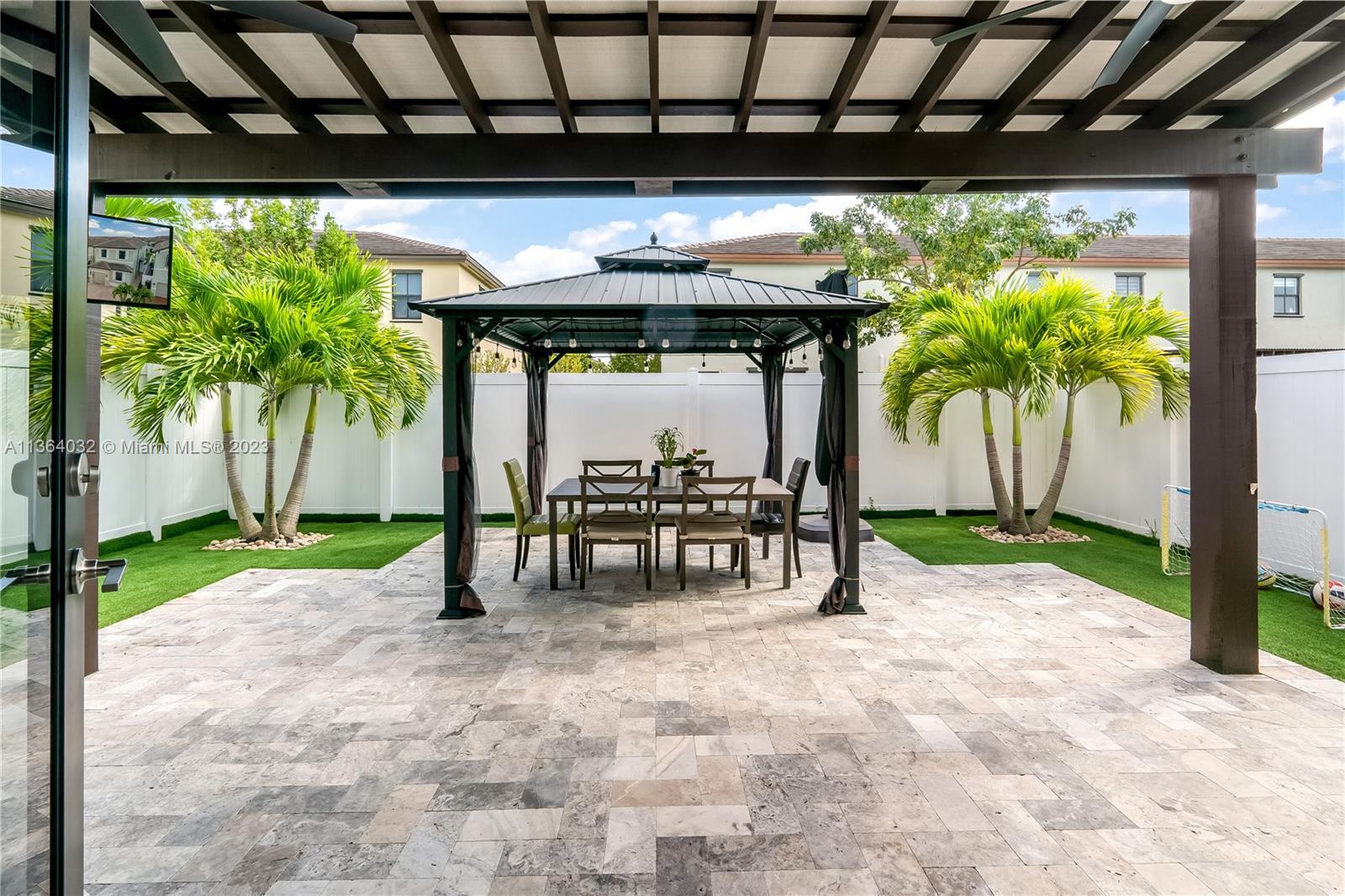 This stunning 4-bedroom, 3-bathroom house is situated in a gated community with 24-hour security. As you enter the home. The first floor boasts a conveniently located bedroom with a full bathroom, perfect for visiting guests. The impact windows throughout the house provide both security and allow natural light to flood the living spaces all day long. The expansive living room is perfect for entertaining family and friends, with a direct view of the completely fenced patio making indoor and outdoor living seamless. The kitchen is an absolute chef's dream, fully equipped with modern stainless-steel appliances and ample counter space. The second floor has a huge master bedroom/walk-in closet. In addition to all these amazing features, part of the garage has been converted into an extra room.