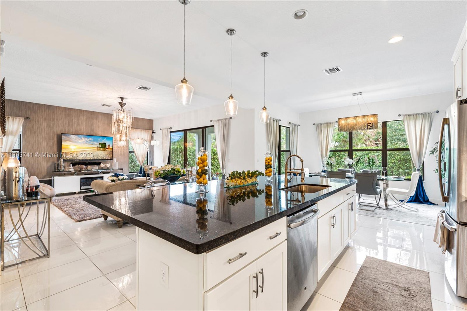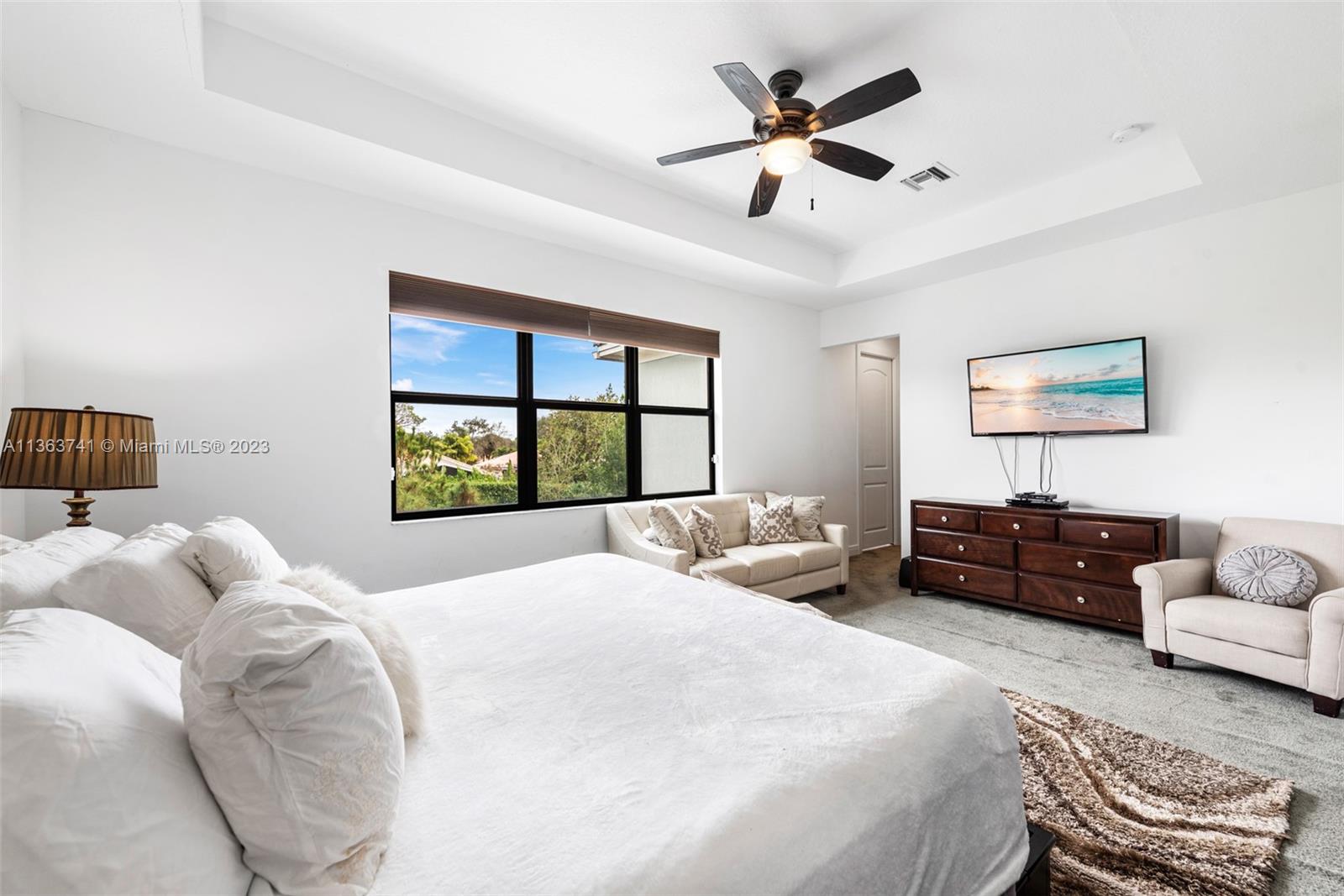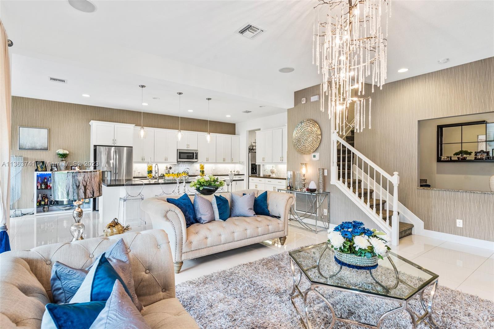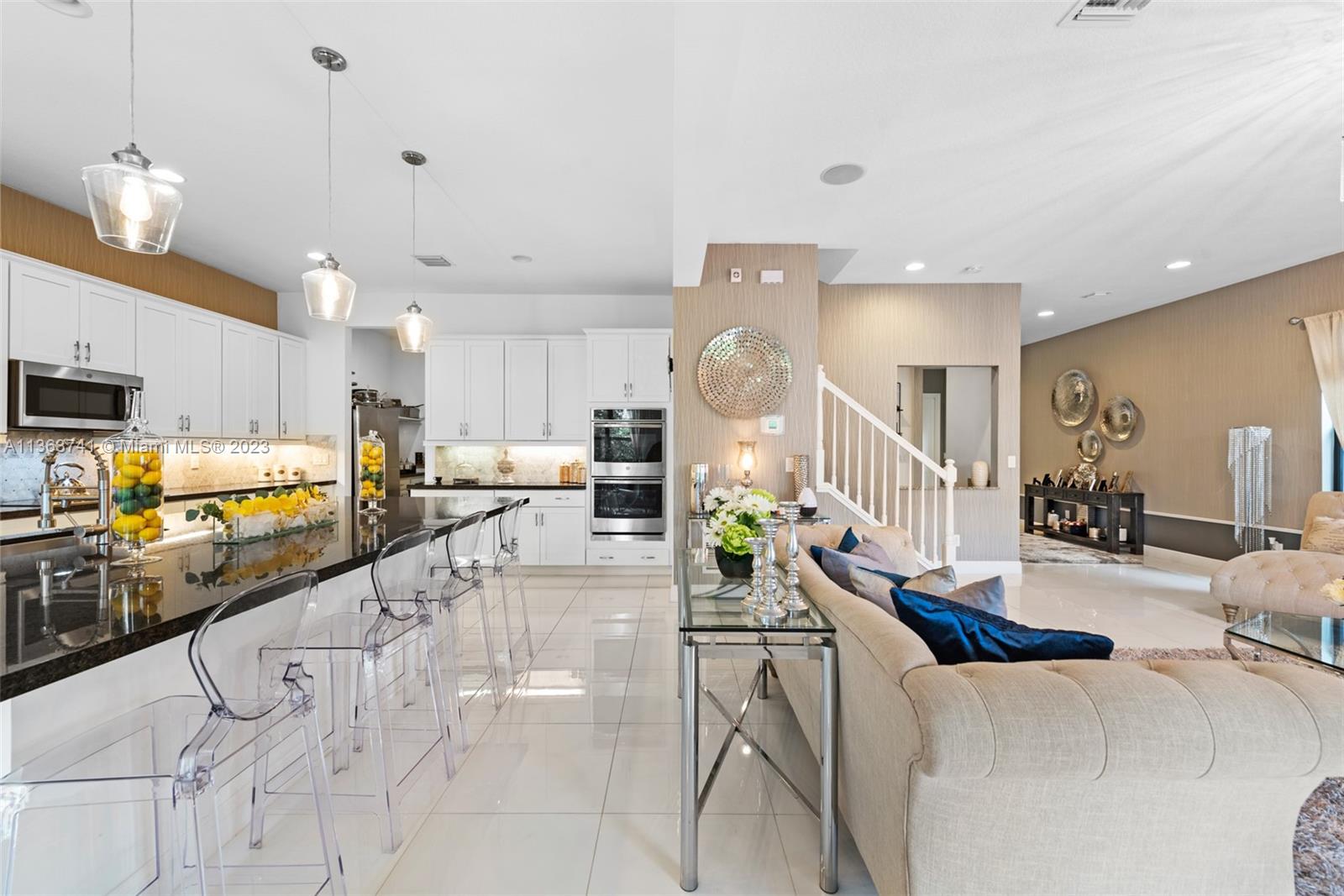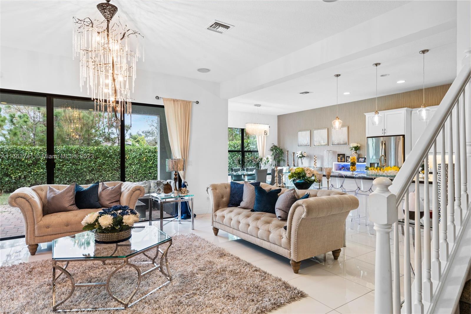 Absolutely stunning and immaculate 5 bedroom 4 bath 2-story house in a gated community. This home has the perfect amount of detail, class, and elegance that flows gracefully from the second you walk in to upstairs. The kitchen has a gracious marble island with an open concept dining room and adjoining living room. Built in 2018, this home is fairly brand new including AC, Barrell Tile Roof, Stainless steel appliances, Washer/Dryer, and more. Very spacious with walk-in closets, pantry, family room area, and private den/office. Coral Lago is a gated community with a relaxing pool, clubhouse, gym, and more. The modern high end furniture including the chandelier is available additional for sale. This home is turnkey ready for any family.
