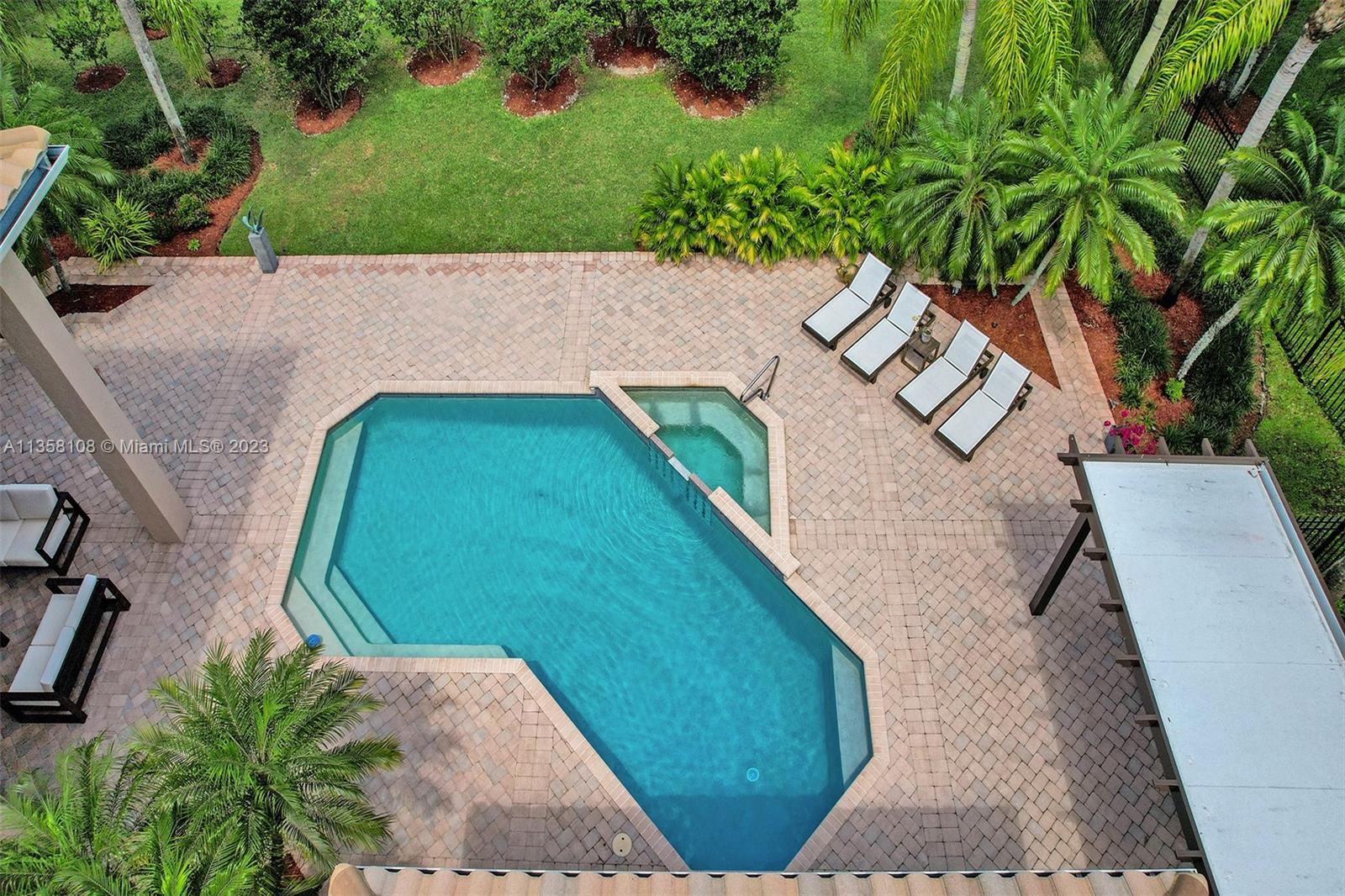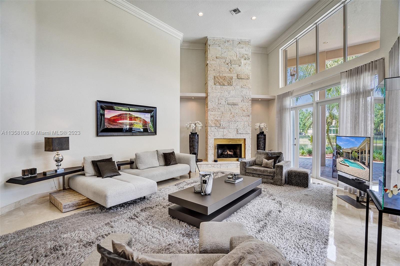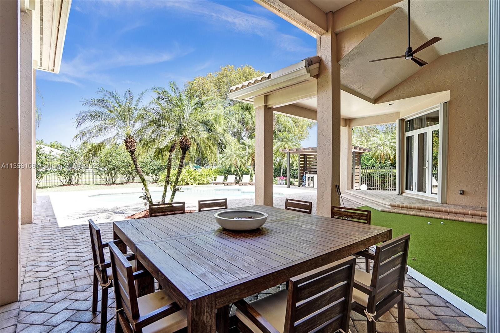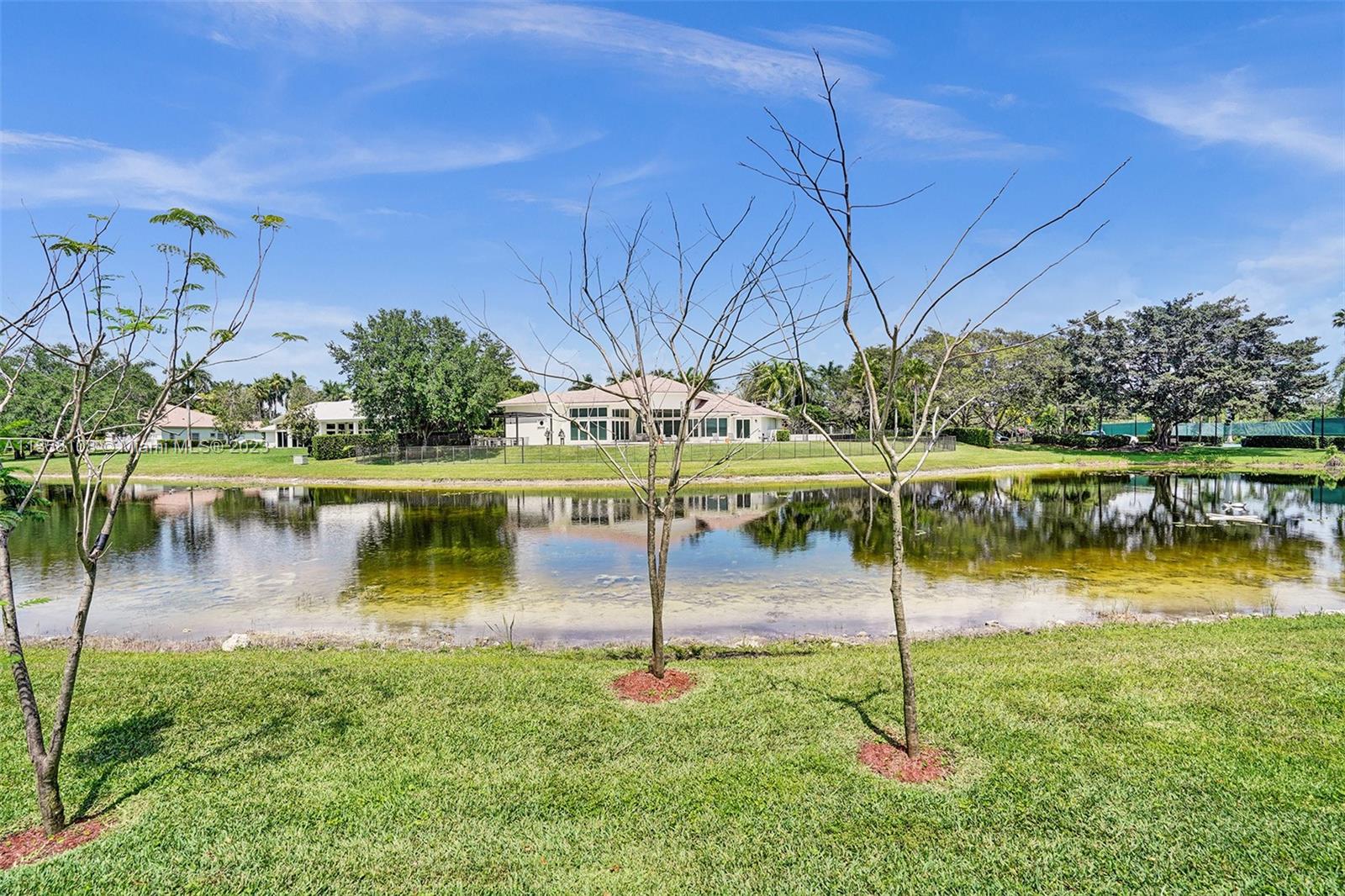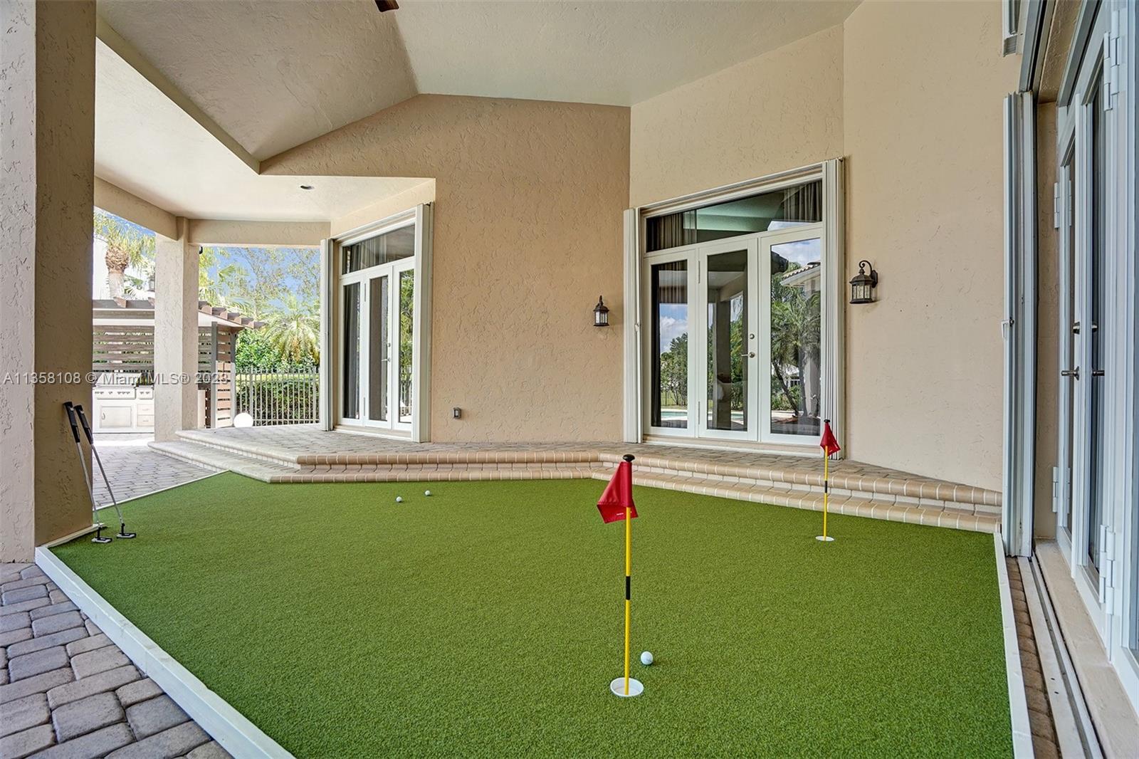 Tucked in the boutique community of Windmill Lake Estates. Stunning acreage property with 5 bed + office 5.5 bath, pool estate home. Expansive paver circular driveway w/ porte-cochere. Private water views from your custom pool w/ pavers, summer kitchen, lushly landscaped, putting green, and fully fenced. Marble throughout living areas w/ soaring ceilings, extensive crown moldings light fixtures. Gourmet white wood kitchen w/ island, breakfast bar, custom cabinetry, granite countertops, SS appliance, double ovens, oversized refrigerator, and expansive pantry. The grand owner's suite w/ sitting room, new plush carpet, and french door to patio/pool w/ sitting room custom master bath dual vanities jacuzzi tub. Full accordion/rolladen protection, newer roof. 3-car side entry with epoxy floor.
