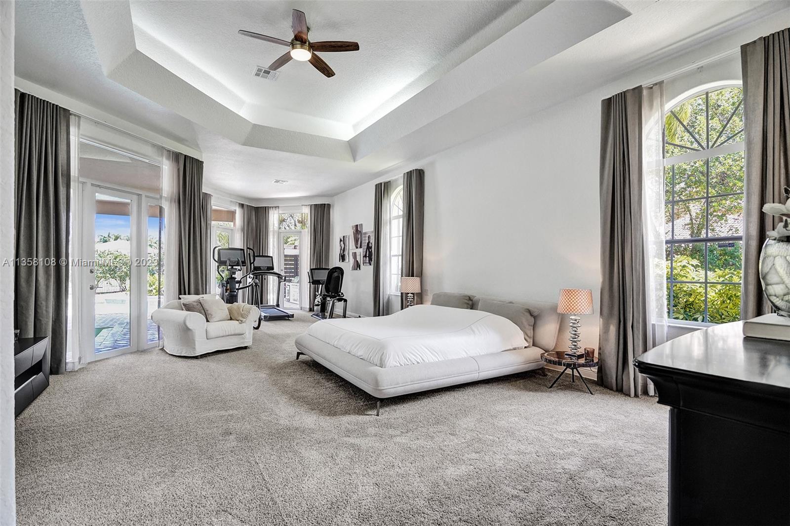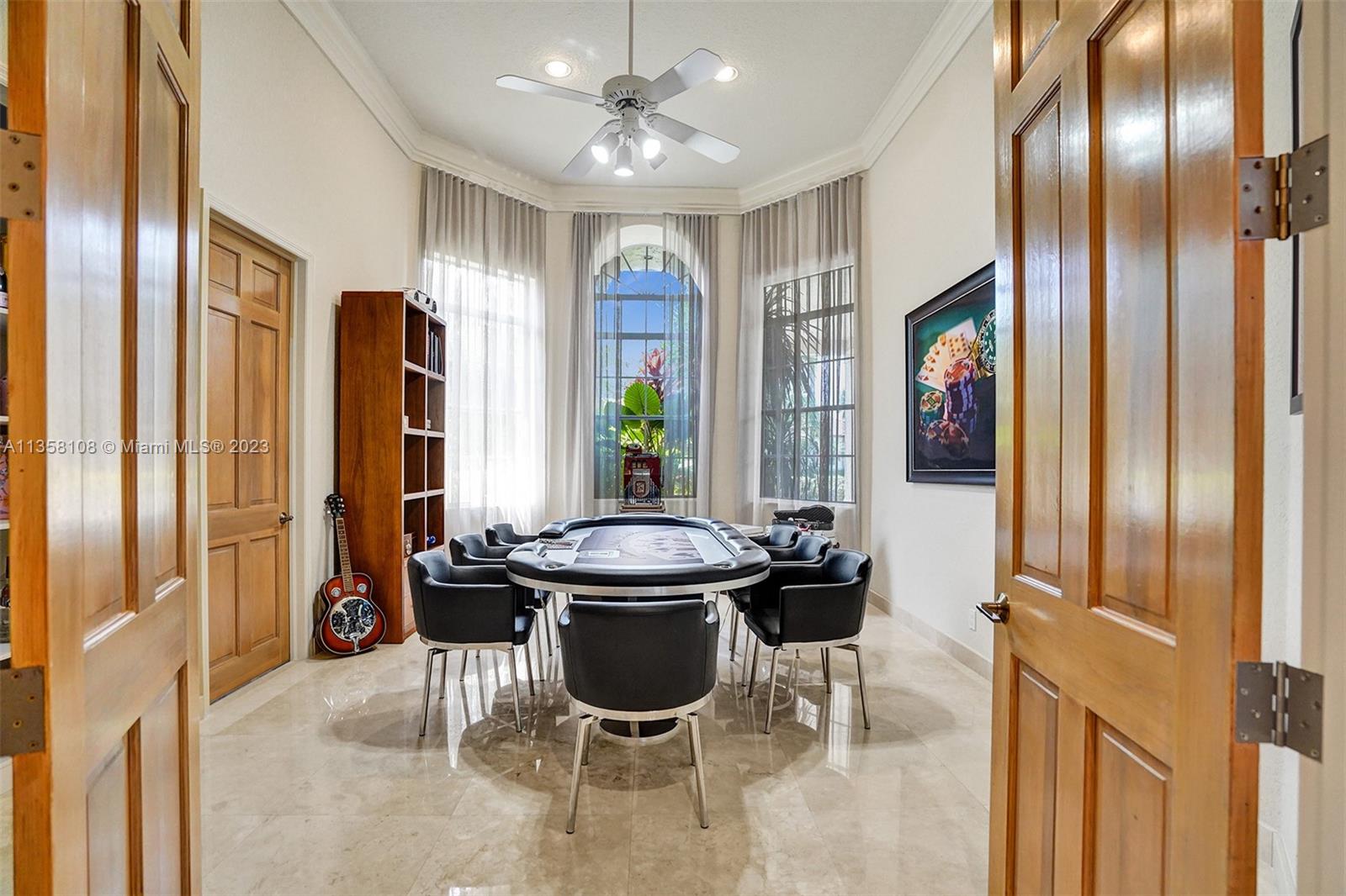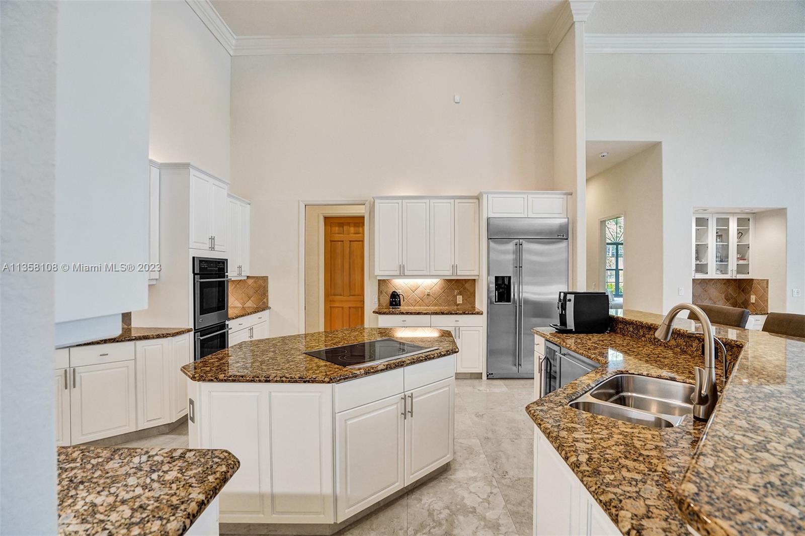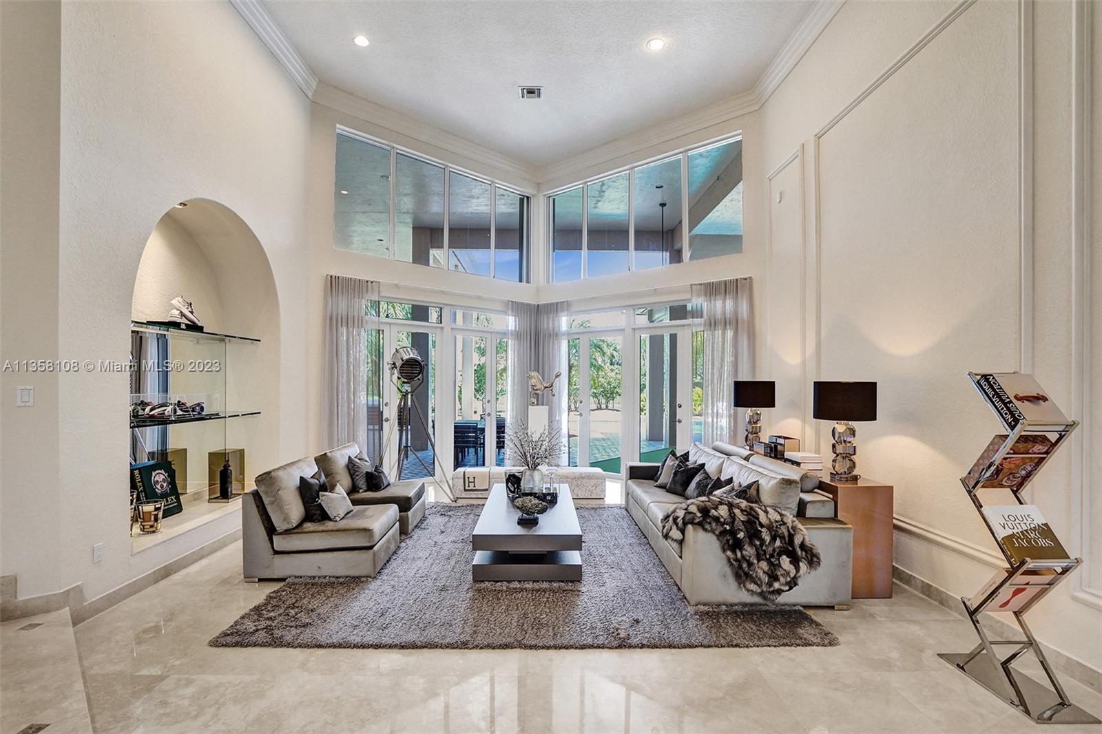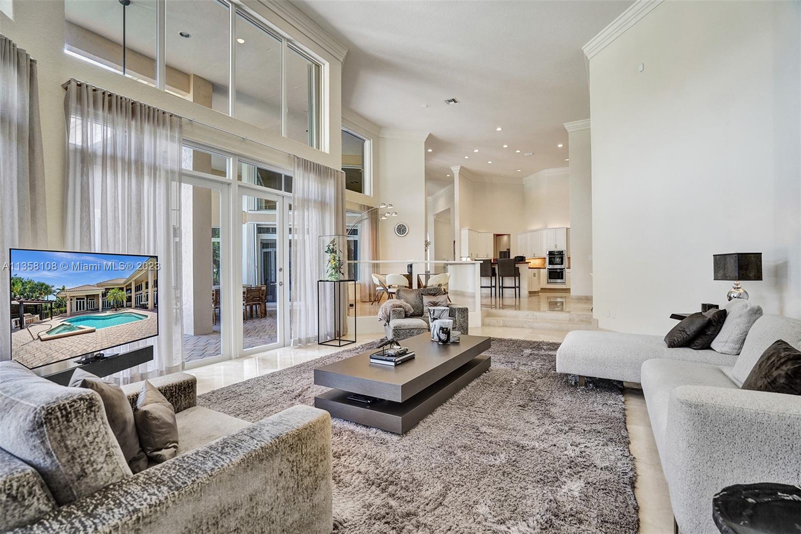 Tucked in the boutique community of Windmill Lake Estates. Stunning acreage property with 5 bed + office 5.5 bath, pool estate home. Expansive paver circular driveway w/ porte-cochere. Private water views from your custom pool w/ pavers, summer kitchen, lushly landscaped, putting green, and fully fenced. Marble throughout living areas w/ soaring ceilings, extensive crown moldings light fixtures. Gourmet white wood kitchen w/ island, breakfast bar, custom cabinetry, granite countertops, SS appliance, double ovens, oversized refrigerator, and expansive pantry. The grand owner's suite w/ sitting room, new plush carpet, and french door to patio/pool w/ sitting room custom master bath dual vanities jacuzzi tub. Full accordion/rolladen protection, newer roof. 3-car side entry with epoxy floor.