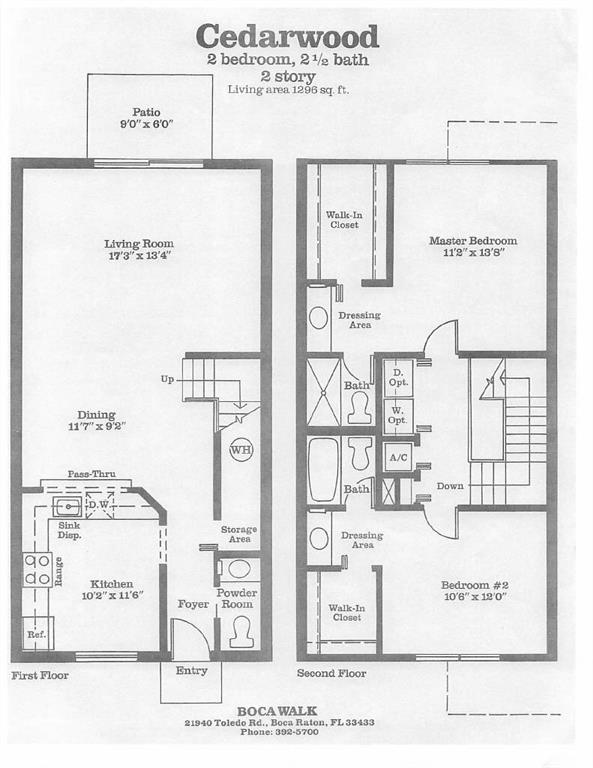 A spacious, 2 bedroom and 2 1/2 bath town home in the great location of Boca del Mar. Although you may want to add your own updating this home is clean & move-in ready. If you are looking to be in a highly sought after area then this is it. Featuring a half bath on the 1st level and a new impact slider leads you to the breezy patio . The 2 upstairs bedrooms have their own bathrooms and walk in closets. Full sized washer & dryer for convenience on the 2nd floor. Whole home has impact windows. Relax at the community pool and spa. Low HOA fee includes cable, internet & more. Walk to parks, YMCA,houses of worship and only 6 miles to Boca's best beaches. Convenient to shopping and restaurants. Top Rated Schools. Verde Elementary School, Omni Middle School, Spanish River High School