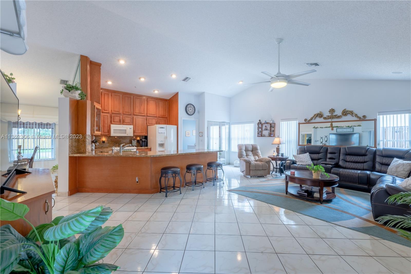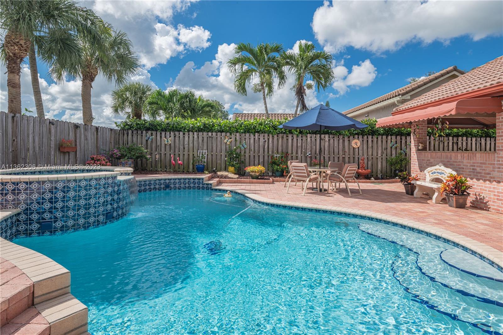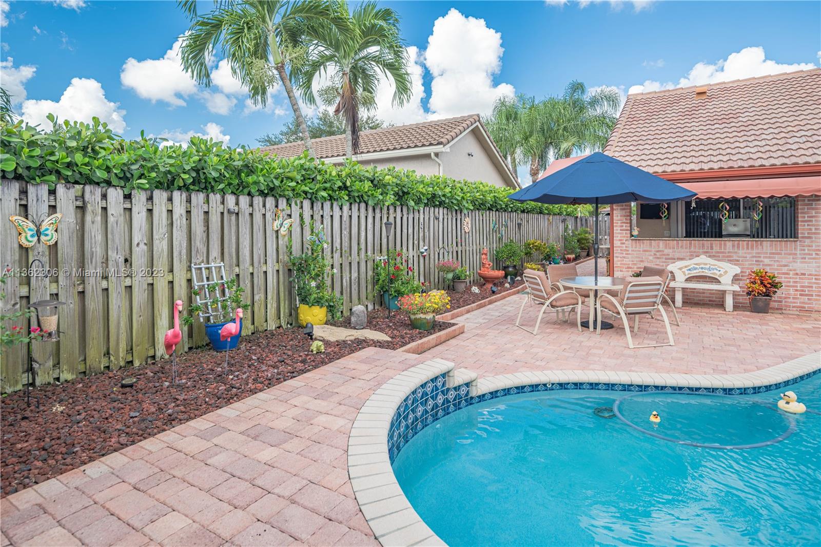 Location, Location, Location!! A must see!! Gorgeous 4/2.5 home. Enter through the double glass doors into a bright & spacious living/dining area w/high ceiling, crown molding & view of your resort-style pool area w/outdoor kitchen. Large family room & kitchen, wood cabinets w/lots of storage, granite countertops, & eat-in area. Split bedroom plan. Spacious master bedroom., updated bathroom w/shower, & his/hers closet. Three large bedrooms & 1.5 baths down the hall from the family rm. The 1/2 bath has an exit to the pool area. Laundry rm w/newer washer & dryer, 2021. Roof-2013. AC-2019. WH-2020. Exterior painted, 2020. Pavers throughout the outside, including the garage. And much, much more to offer. A+ schools. Close to major highways, shopping, entertainment, & house of worship.