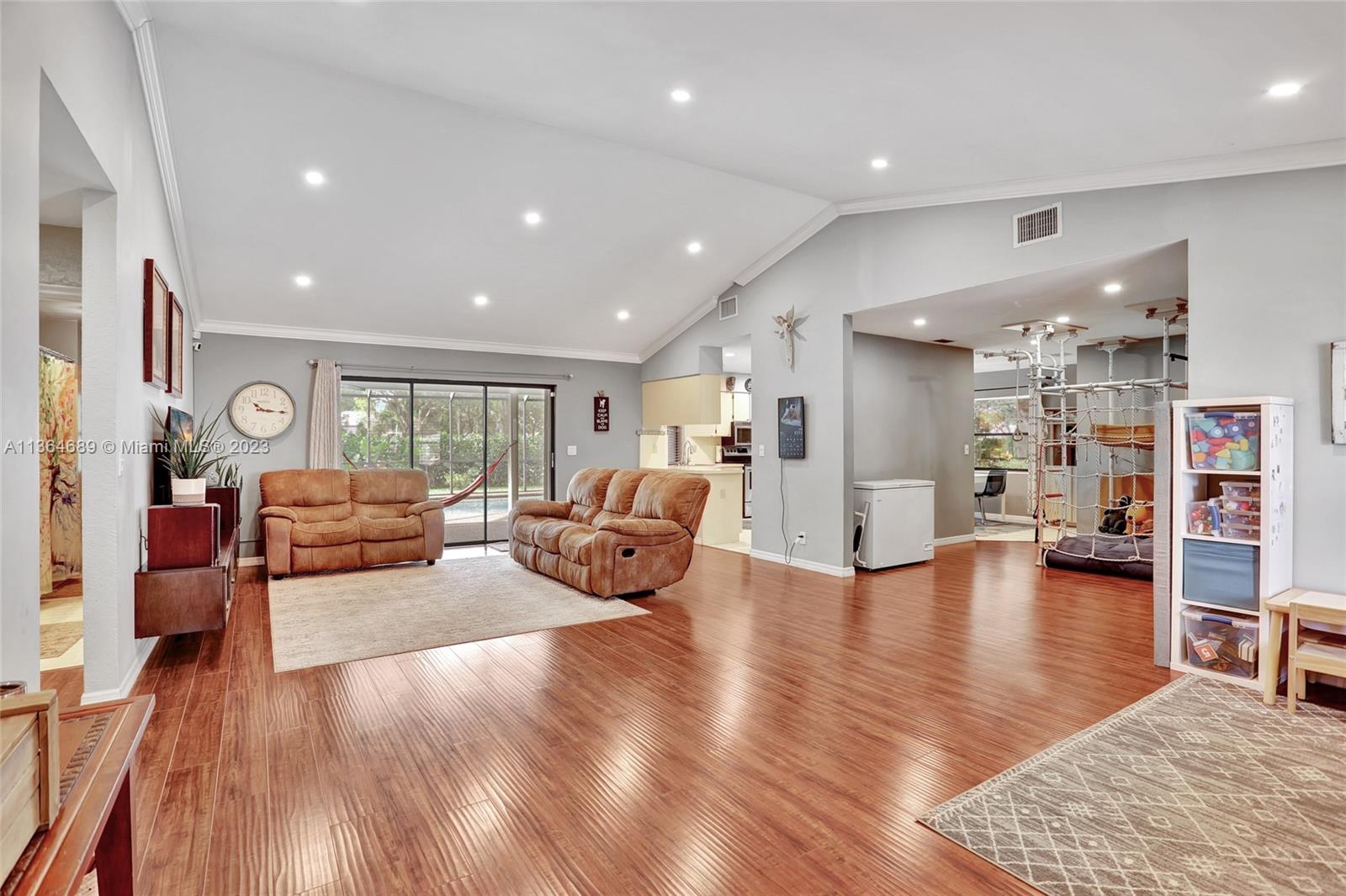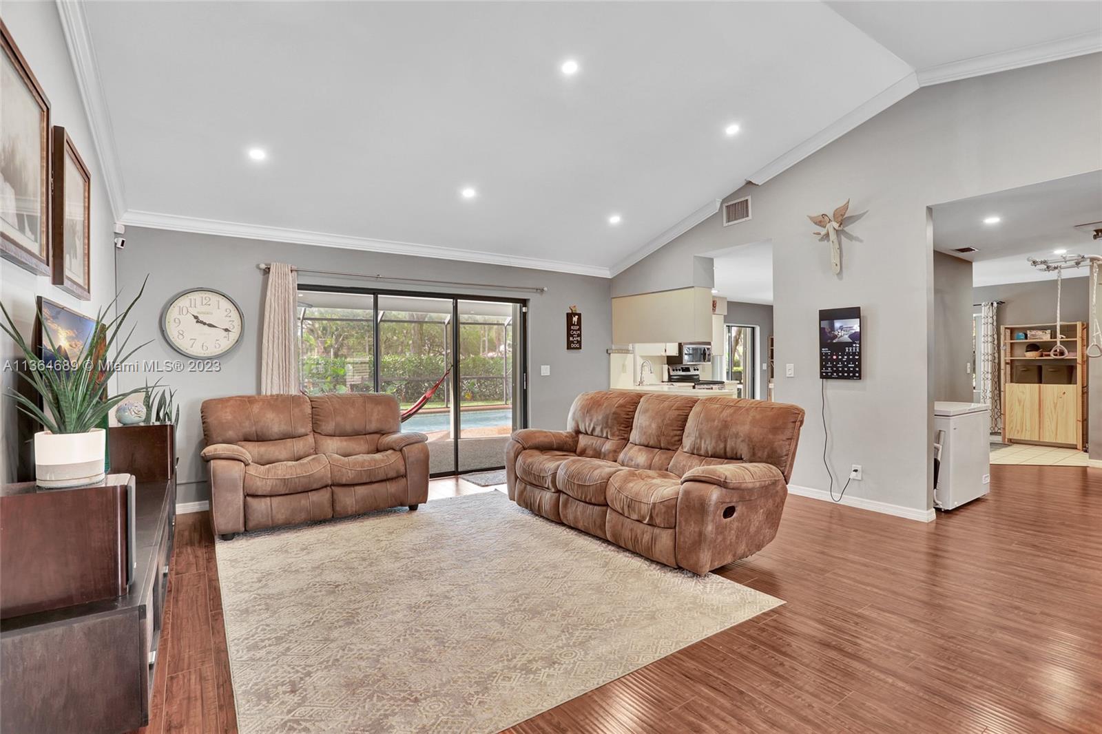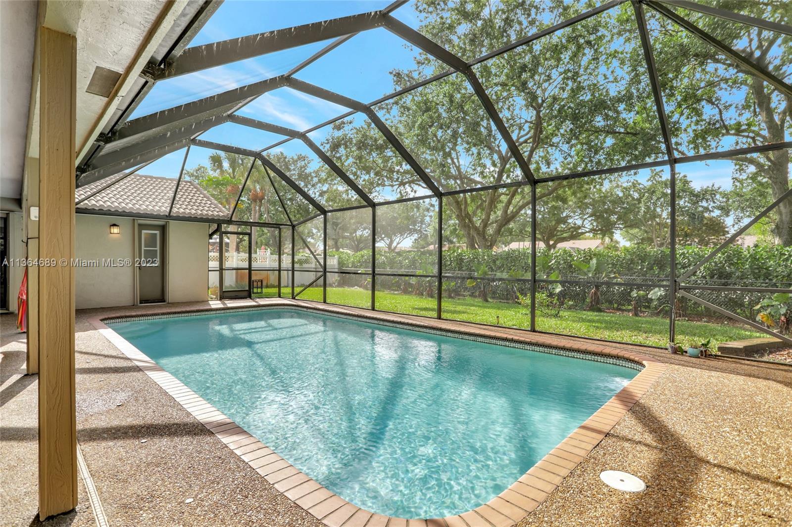 Welcome home to this spacious, meticulously maintained 4 bed, 2 bath pool home in the much desired community of Pine Ridge. Situated on an oversized fenced lot with pool & screen enclosure, 2 cabana bathrooms, open floor plan with large eat-in kitchen that overlooks the pool this home is great for entertaining. The exterior features a large paver patio at the front entrance that is wheelchair friendly, accordion shutters on all openings, a hurricane proof garage door and a solar pool water heater. The interior has been freshly painted in a neutral color, all ceilings have been refinished to remove popcorn and all new AC ducts were installed in 2016. 2021 Stainless refrigerator and dishwasher and an in-home water filtration system installed. Low HOA, A rated Elementary School!