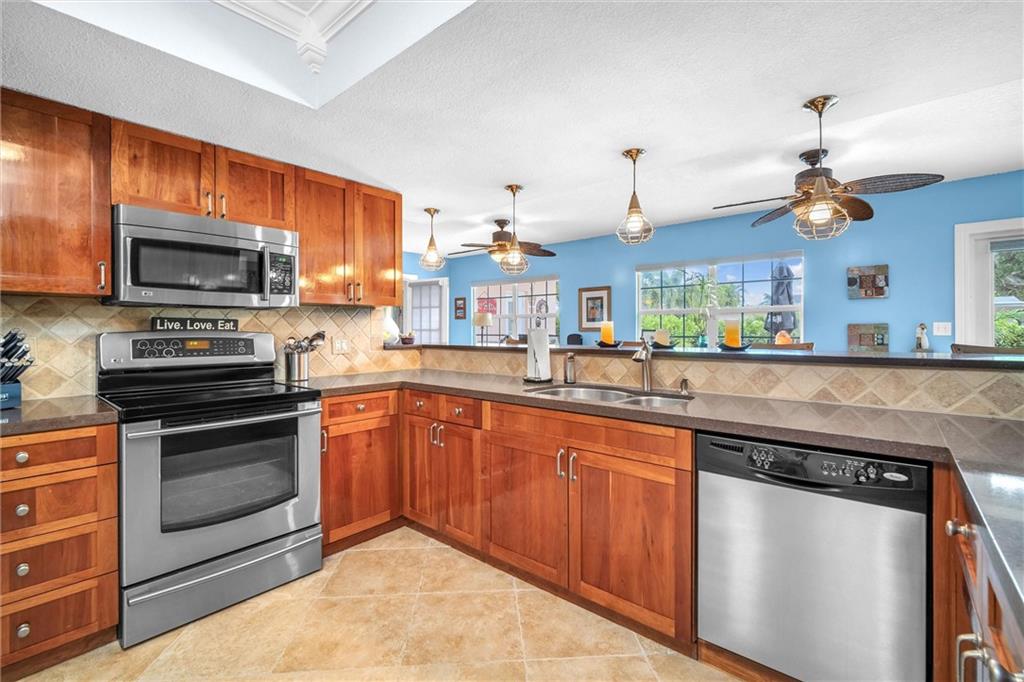 PRIDE of the sellers ownership. Upon entering you'll be greeted with a bright, L-shaped floor plan taking you through living room & dining room. Perfect for entertaining your guests, large kitchen is in the heart of the house with 2 open bar sections that opens to your grand FL room. Ample Zodiaq stone counters & cabinet space. Stainless steel appliances. Ceramic tile floors throughout. While hosting, see guests enjoying your pool & gorgeous paved deck, w/ extra space for Pets to run around in private fenced backyard! NEW impact windows, master bath & water heater! Newer AC & electric panel. Pool resurfaced 2022. A rated ELM school. Central location puts you 2 min drive to I-95, TY City Park & ALL major shopping and restaurant plazas off the amazing Hollywood Hills! 15 min from the beach