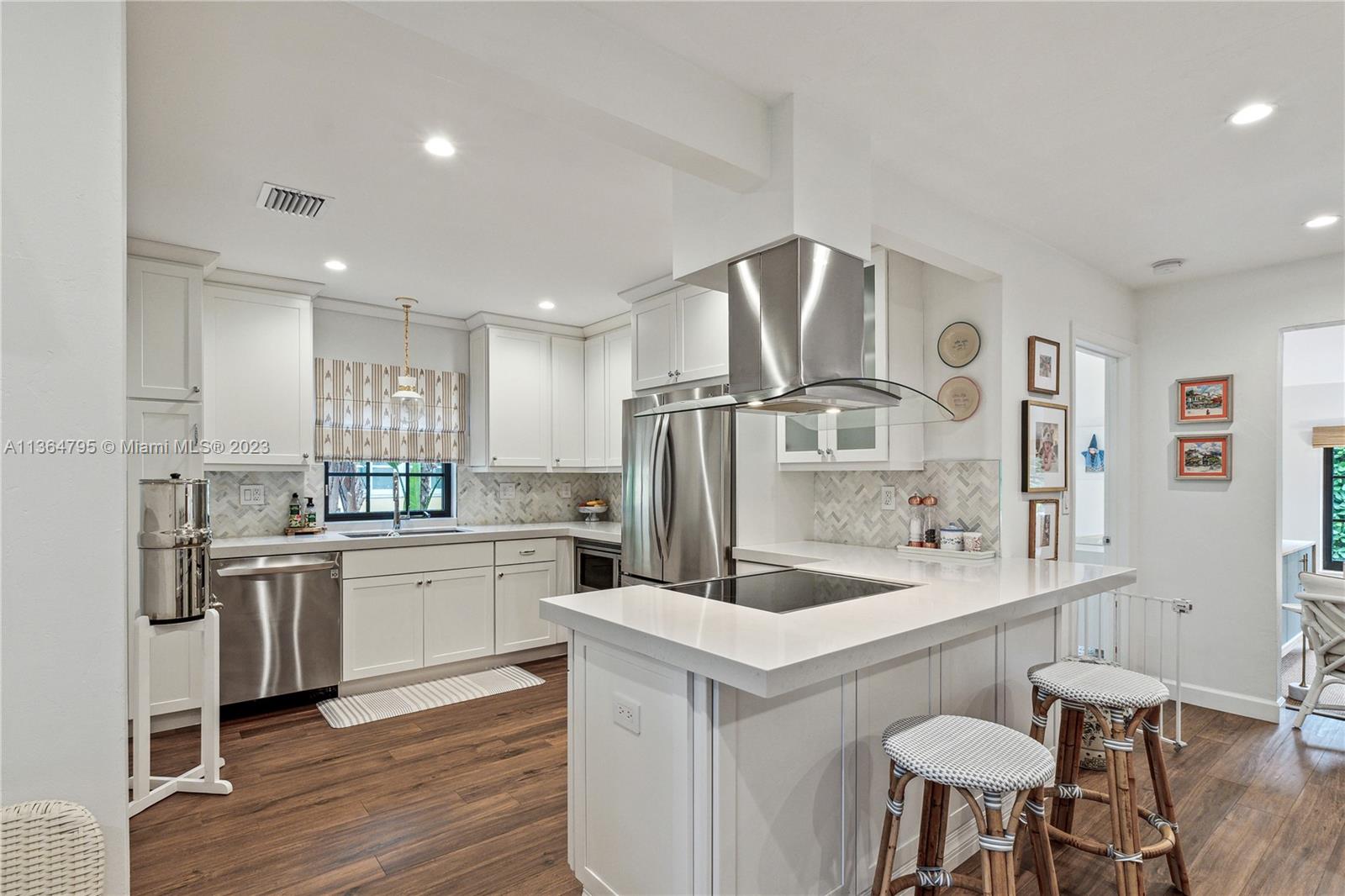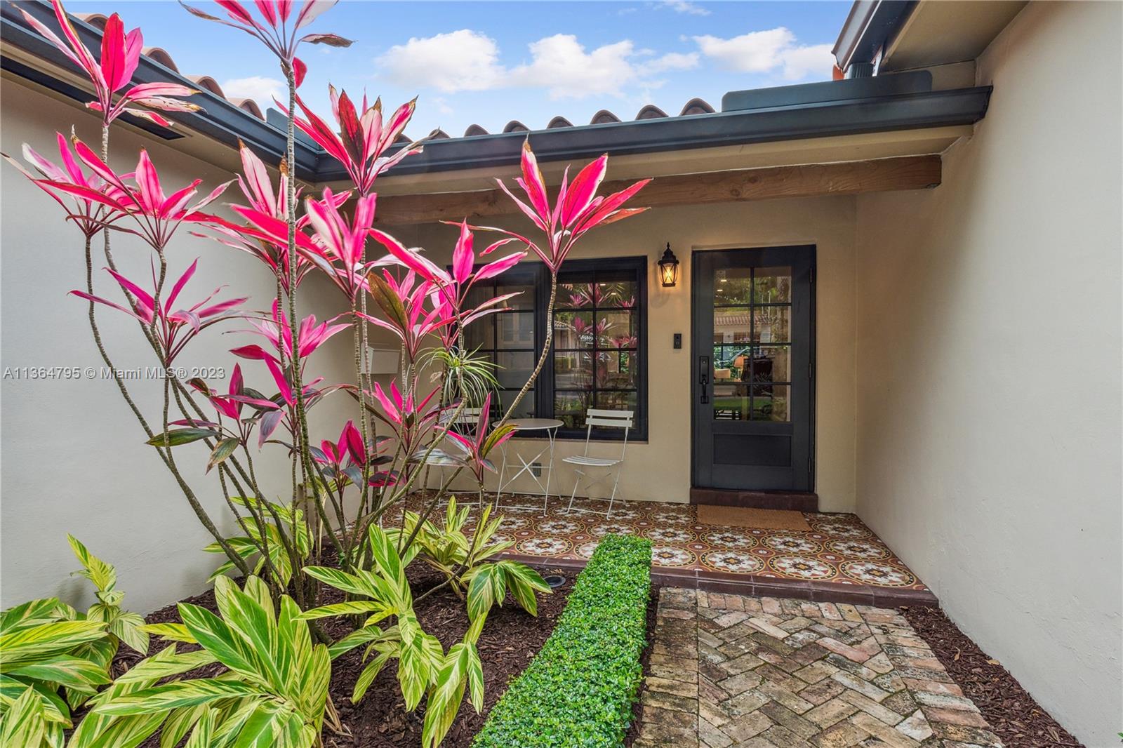 The most perfect home on a quiet, beautiful tree-lined street in North Gables. This home was recently remodeled to perfection and is move-in ready, meticulously maintained, and truly one of a kind home for the price. 3 Beds/2 Baths with about 1500 sq ft of living + 1 car garage. Spectacular curb appeal and entrance with a Chicago Brick driveway and hand-painted Cuban tiles lead to a bright, open floorplan. Beautiful palms and lush landscaping in the front and a mature privacy hedge in the backyard. The kitchen still looks brand new and is open to the living areas. Bedrooms are well-sized and bathrooms are tastefully remodeled. There is room for a pool. The home has updated electrical, plumbing, and impact doors. This one won't last, call today!