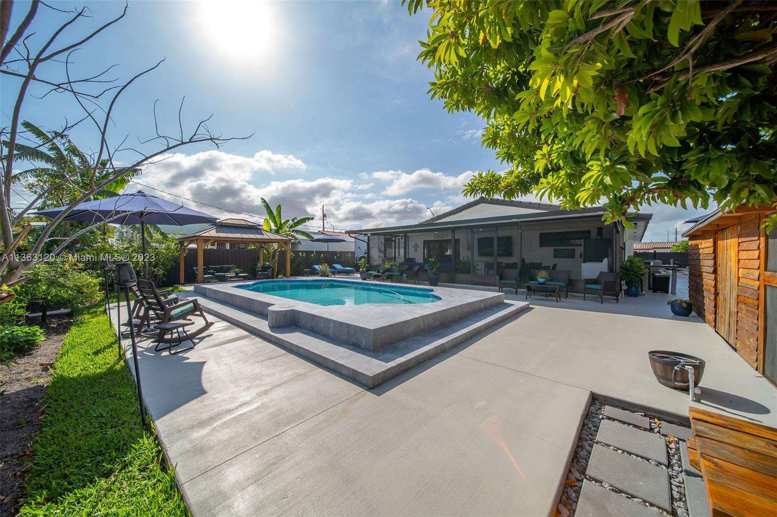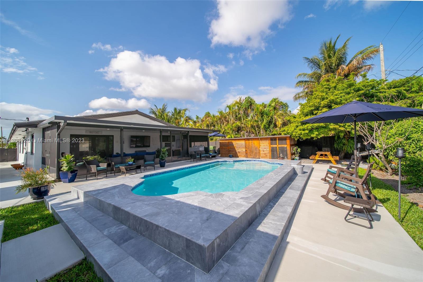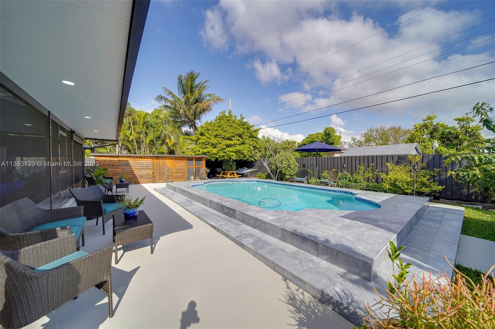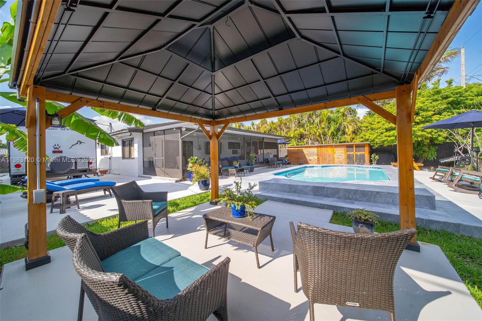 You will love this pristine, modern 4 bed 2 bath pool home in prime West Hialeah location. Enjoy your pool view from 1 of the many seating areas in this back yard tropical oasis. Has a screened patio area, storage shed in a modern wood look, wooden pergola, and plenty of space to park your boats, rv's, or toys.