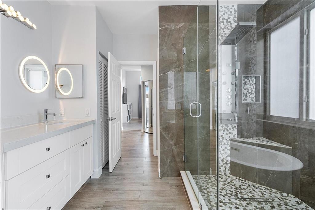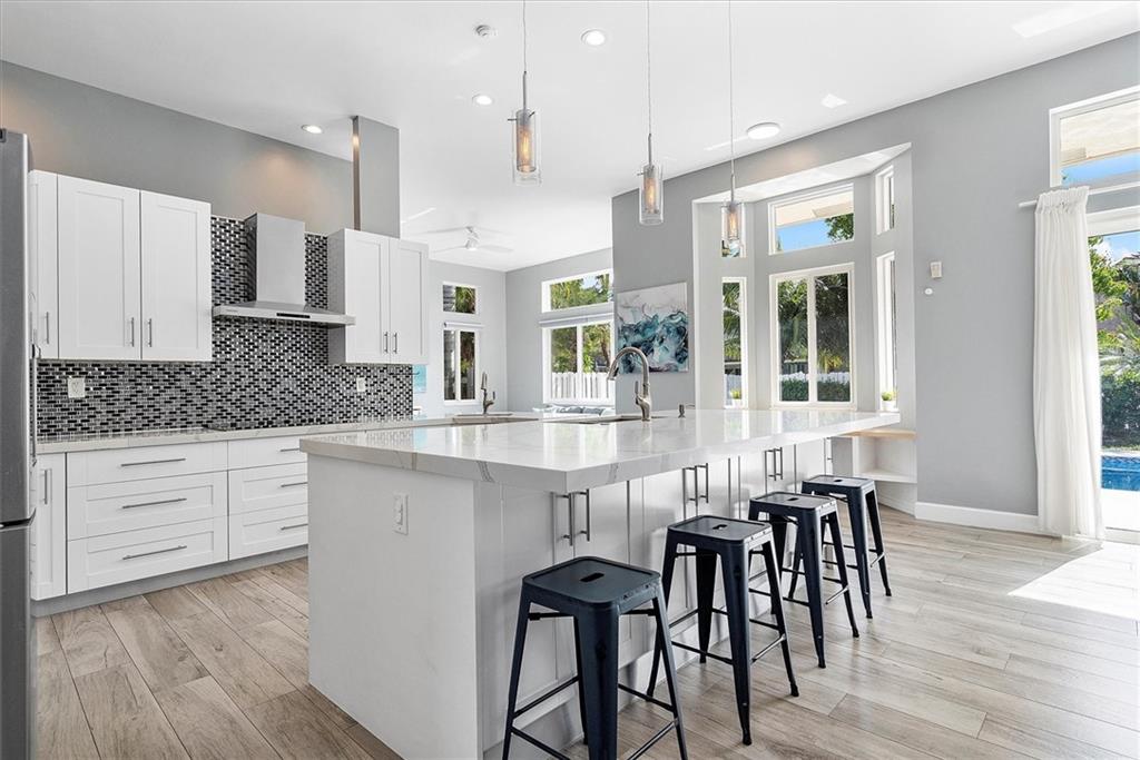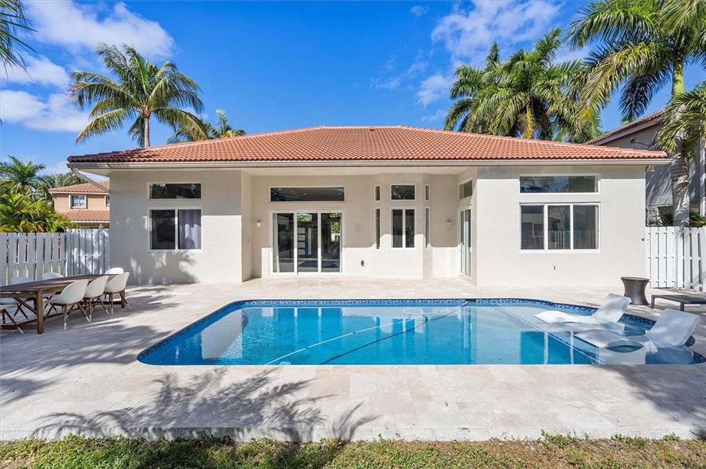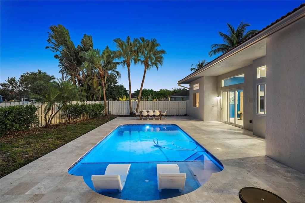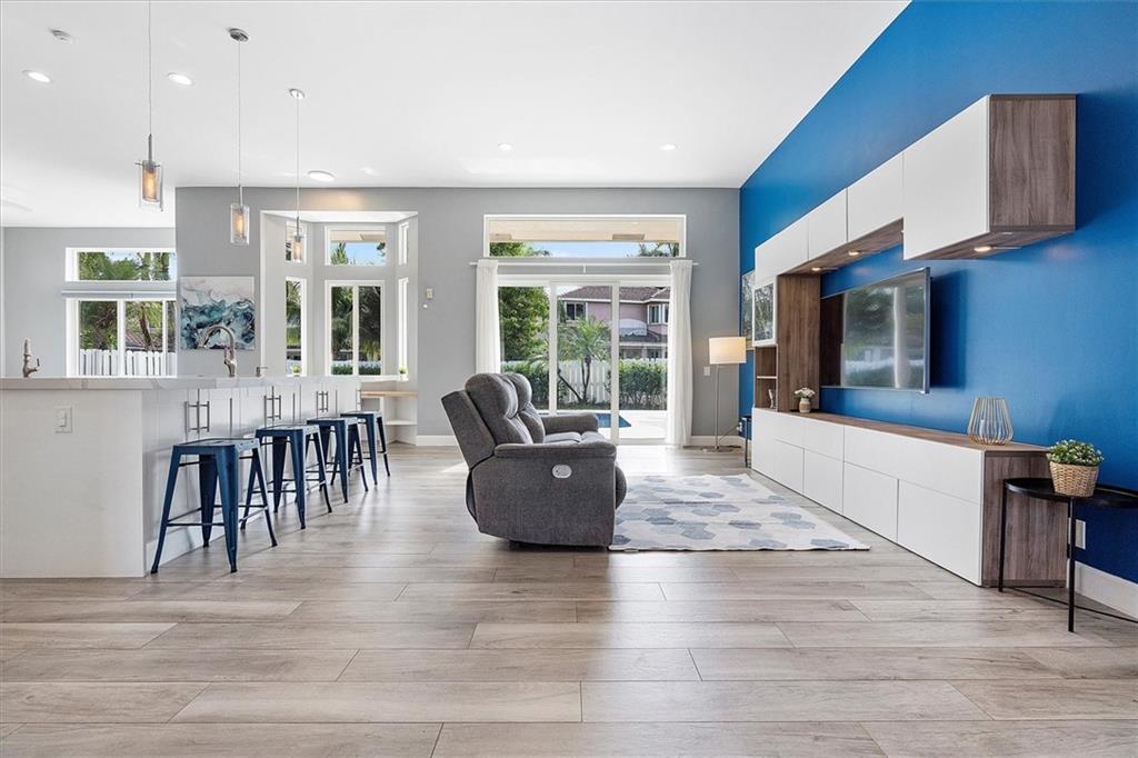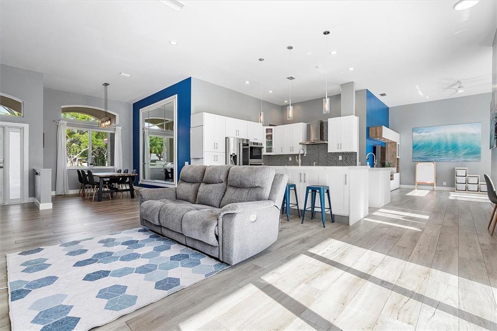 Modern 4 Bedroom home with Pool on a large lot in the highly sought-after community of Heritage Lake. This spacious home features an open concept split floor plan with 12-foot ceilings and porcelain wood look tile throughout. The custom kitchen offers dual oven & sinks, induction cooktop, smart appliances, a huge island, and plenty of storage. There's impact windows & doors throughout (2021) and a 2017 roof. The backyard retreat is the perfect place to entertain with a salt-water pool, sun shelf, travertine paver patio/pool surround, and plenty of room for an outdoor kitchen. This gated community is well maintained, offers a lakeside pool with clubhouse and is close to parks, golfing, shopping & Top Rated Schools. Larger than tax rolls sqft includes adj sqft.