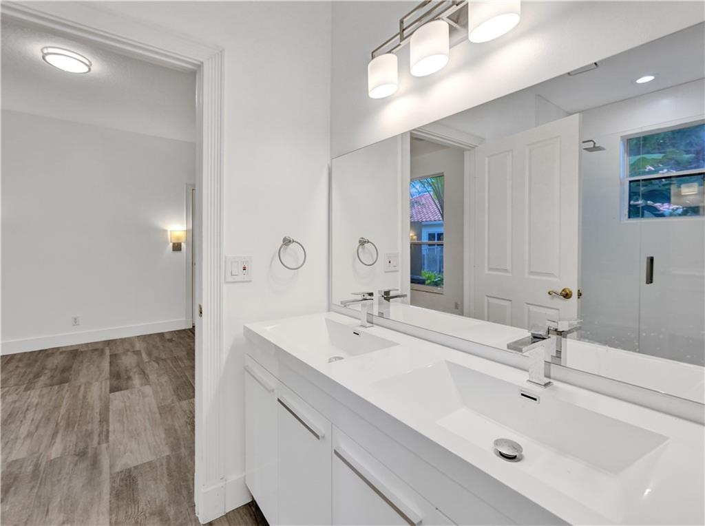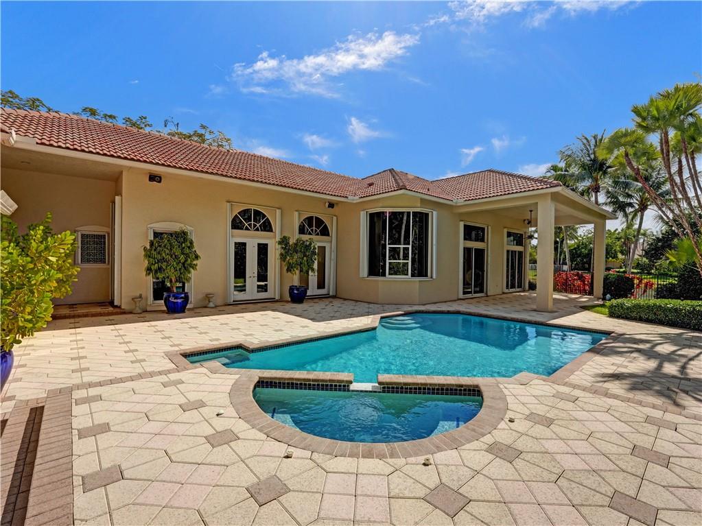 What an extraordinary Home! A hidden gem nestled on an oversized, private, lushly landscaped, fenced corner lot, with breathaking lake views in the covetted Weston Hills Country Club. This amazing courtyard home features 3 bedrooms + a Den, 2.5 bathrooms in the main house and a 1 bedroom, 1 bathroom guest house. With Soaring 15ft ceilings elegant crown moldings, and beautiful wood floors add to the sophisticated ambiance, while the open, bright floorplan frames tranquil lake views. The gourmet kitchen boasts a center island and wine cooler, perfect for entertaining friends and family. The resort like pool and patio areas are ideal for relaxing and taking in the serene views of the landscaping and lake. Spacious driveway with 3 car garage completes this exceptional property!