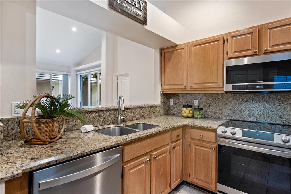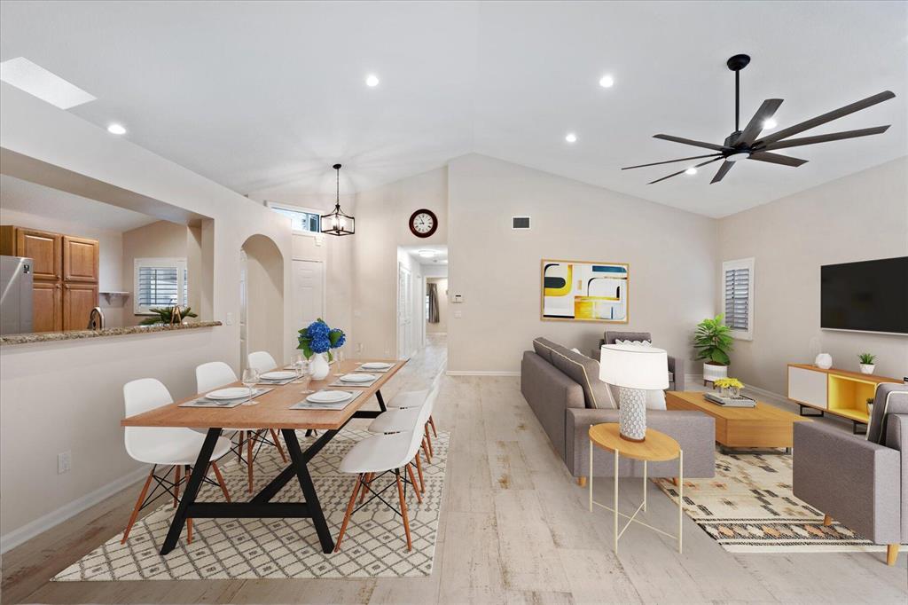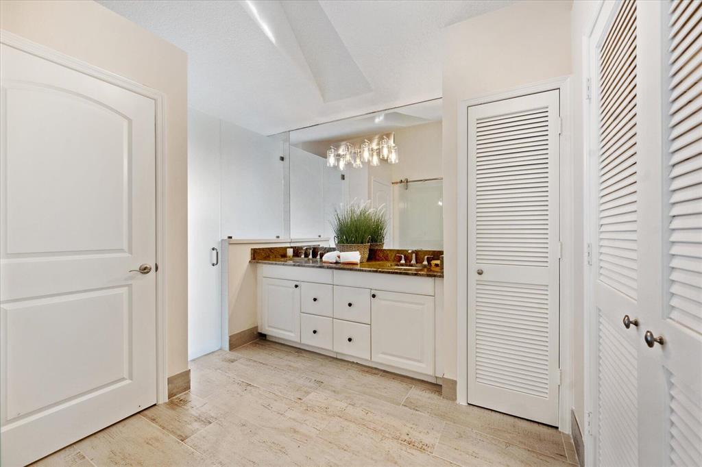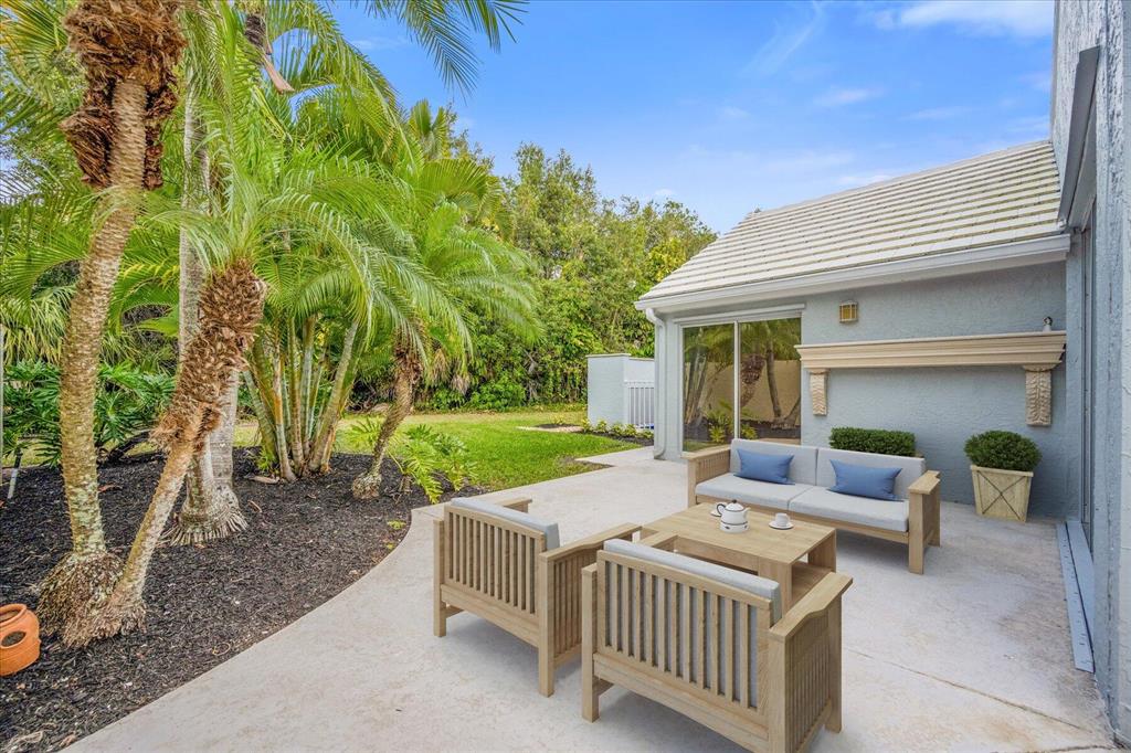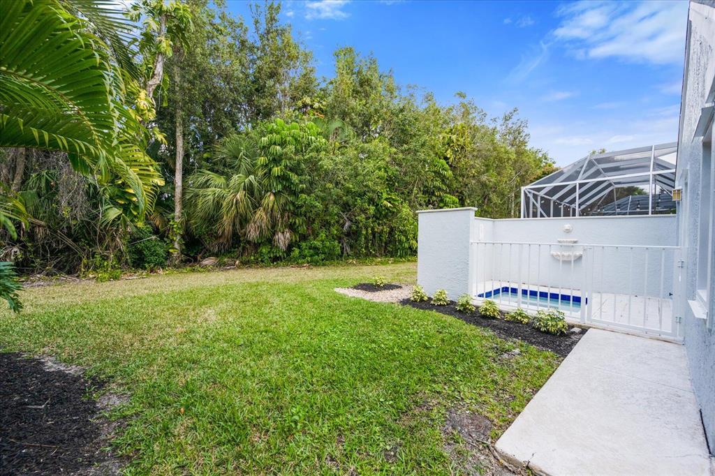 West Palm Beach's desirable gated community--Breakers West! Lovely home available in the popular Colony neighborhood with 3 Bedrooms, 2 Baths, 2 car garage with almost 1,600 AC Living Area. Freshly painted interior and exterior. New porcelain tile wood plank flooring thru out (no carpet in this house!) Great Room with vaulted ceilings opens to patio with private treed yard. Primary Suite has vaulted ceilings and will accommodate a king-size bed. Modern frosted-glass sliding barn door leads into Primary Bath with its marble vanity w/2 sinks, new frosted frameless glass shower door & lg walk-in closet. Or step out into In-Ground Spa surrounded by privacy wall. Popular split floor plan gives the 2 guest bedrooms privacy & ample space. Bedroom 2 & 3 share a lovely bath with tub/shower combo.