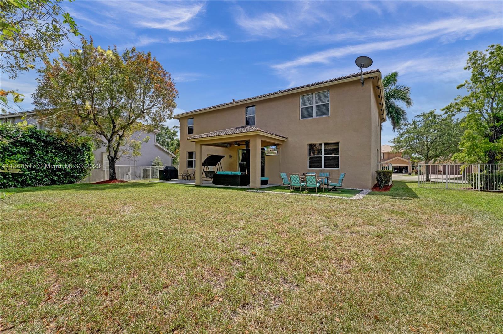 Fabulous 5 bedroom, 3.5 bath + loft located in the pristine, gated community of Isles At Weston, featuring gourmet kitchen with granite countertops, center island, and walk in pantry. Primary bedroom with ensuite spa-like bathroom, complete with soaking tub, double vanities, separate shower, and huge walk-in closet. Laundry room conveniently located on second floor. Full bedroom and cabana bath on first floor, perfect for guests. Spacious and bright living area make this home perfect for entertaining. Expansive ceiling heights, impeccable curb appeal, tranquil and completely private, fenced backyard, with plenty of room for a pool, and sits perfectly on an oversized lot. Walking distance to A+ schools. Fantastic clubhouse with gym, and an array of amenities for the whole family to enjoy!