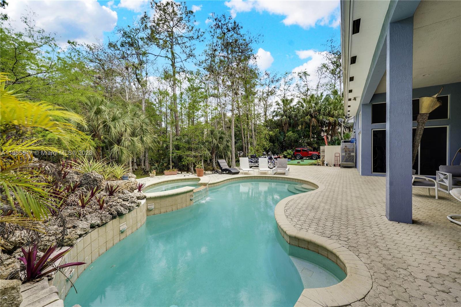Magnificent property in a highly desirable neighborhood. Featuring brand new AC systems and Updated Bathrooms. Fresh interior/exterior paint. Entire house, water filtration system w/ Alkaline water dispenser. Grand Circular driveway! Beautiful lush landscaping w/lots of fruit trees. UV treated Windows. Dog Run, Media Room, Putting Green, Pool w/ Spa. Property has its very own nature preserve w/ loads of privacy. Near all major shopping, schools and highways. One of a kind property w/best of both worlds: a sense of country in the city. Architectural Plans for a 1 or 2 bedroom apt available and paid for included in sale Motivated Seller..!! No HOA..!!