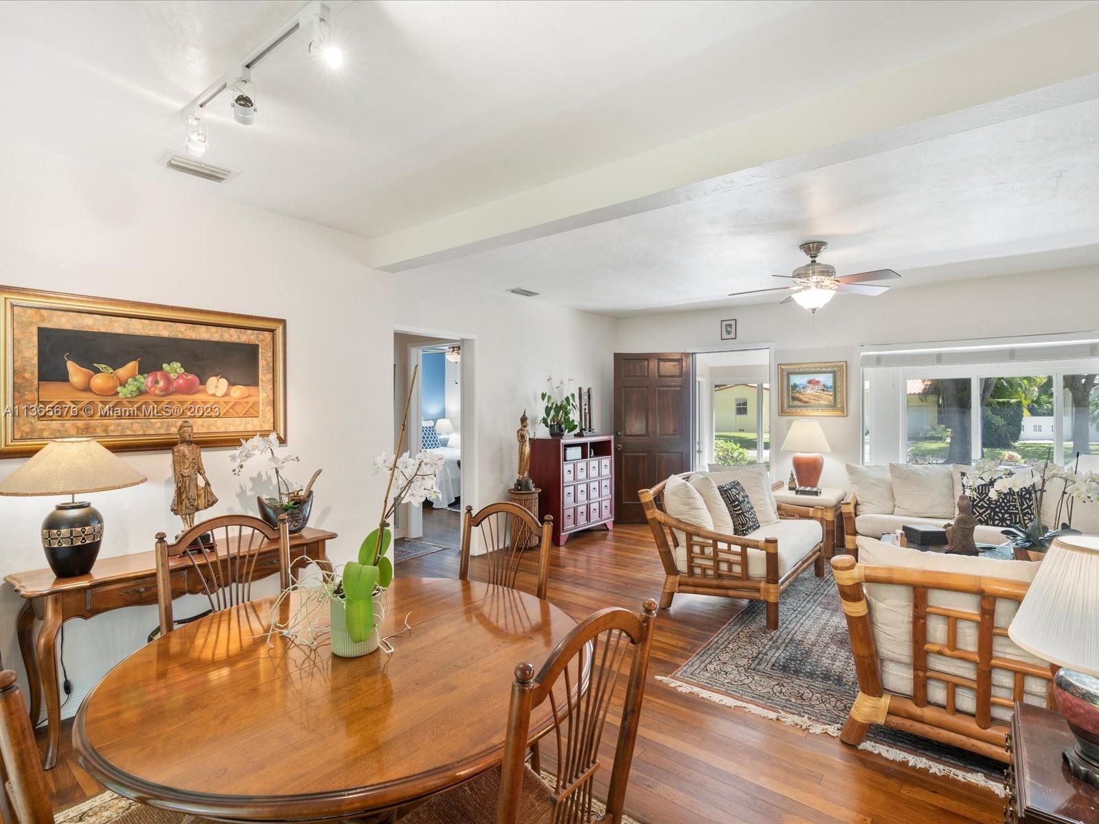 This gem is located on a no through street in Miami Shores Village. Some of the features include wood floors in living/dining area and bedrooms, several sitting areas to enjoy including family room with door leading to the inviting back yard, impact windows, newer roof, updated plumbing, and one car garage.