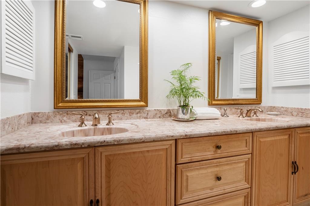 Welcome Home! You will love this rarely available model unit with serene lake views. Nestled in sought after Ironwedge community with breathtaking ambiance, this 3BD 2.5 BATH with over 2100 sq. ft. of living space, this residence features a bright and open living area, soaring ceilings and lots of natural light, a fireplace, plantation shutters in the living area, updated kitchen with ample cabinet space, spacious bar area with passthrough ideal for entertainment, spacious master suite with sitting room and private balcony, his/her closet, dual sinks with large soaking tub, the entire interior has been freshly painted, updated flooring throughout, new a/c unit, new flat roof, spacious screened in patio with endless nature views, mature landscaping and much more. This Home is a must-see!