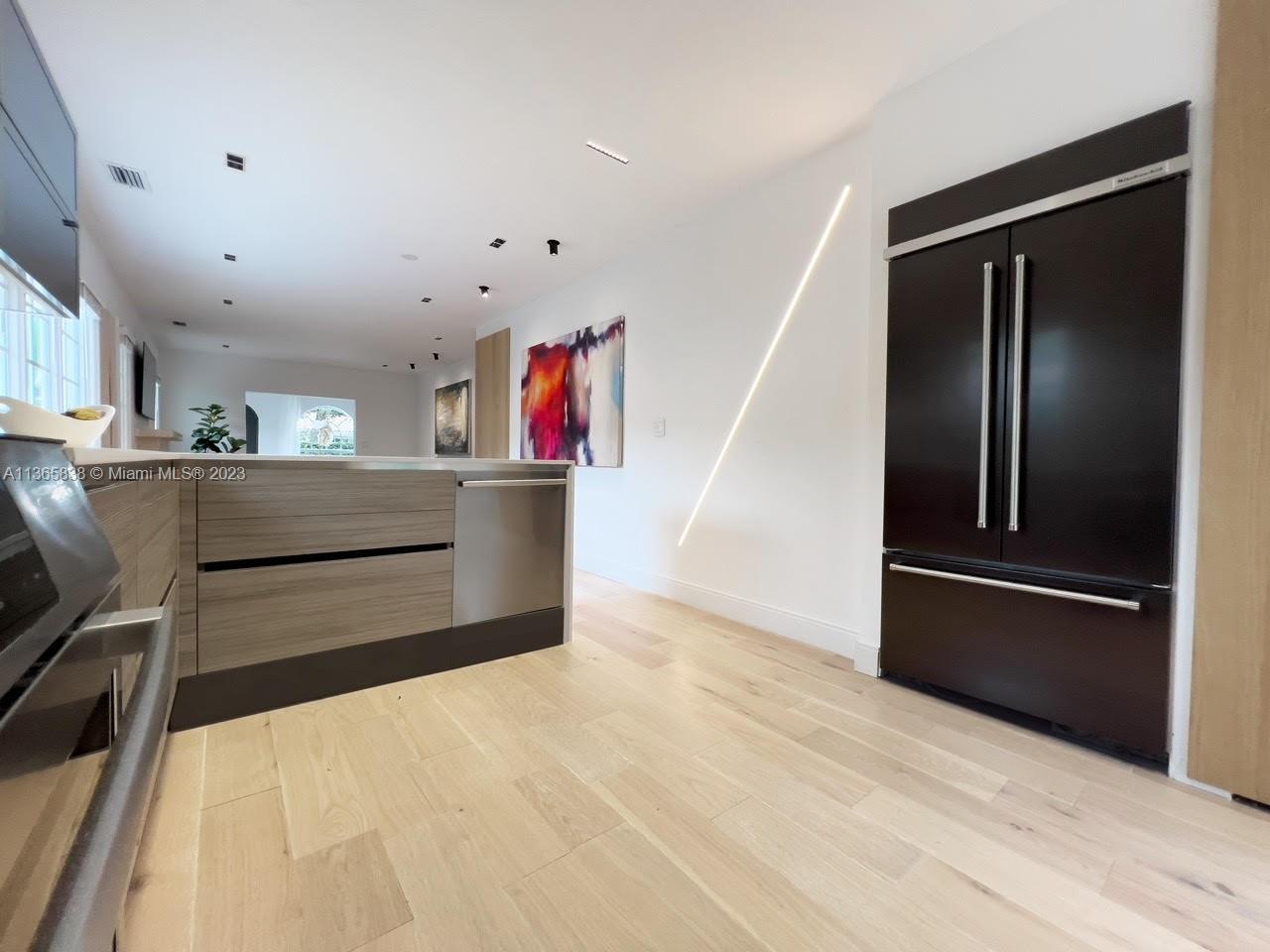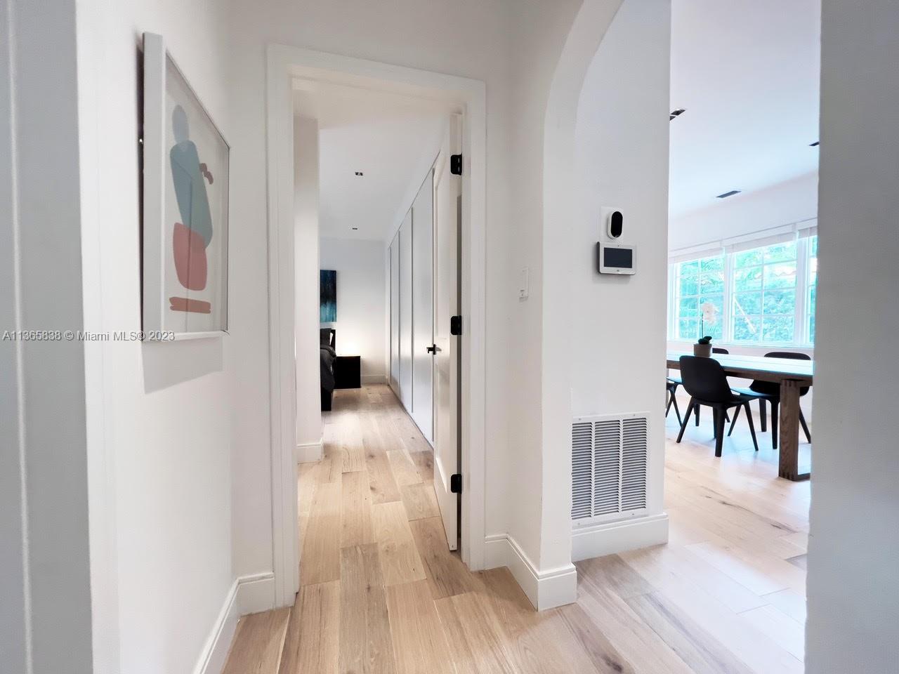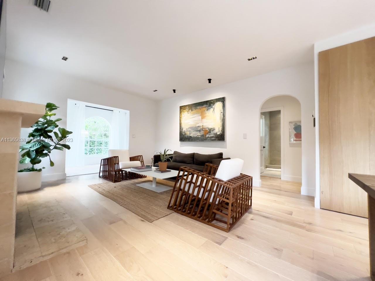 A beautifully updated Old Spanish charmer moments from Granada Golf Course and downtown Coral Gables. With 3 bedrooms, 2 bathrooms in the main house, third room perfect for office with garden view plus a spacious 1 bedroom/1 bathroom guest cottage. Features a large Foyer with wood ceiling beams, natural lighting throughout the home, open floor plan, large living room with fireplace, dining room, that connects to a beautiful Italian kitchen with quartz waterfall counter, high end appliances and gallery lighting. New engineered solid wood flooring throughout the home. An ample backyard for family entertainment. Tesla charging station. Home furnished or unfurnished. New Barrel Roof (March 2023).This gem is move-in Ready, schedule a private tour today! Seller motivated!