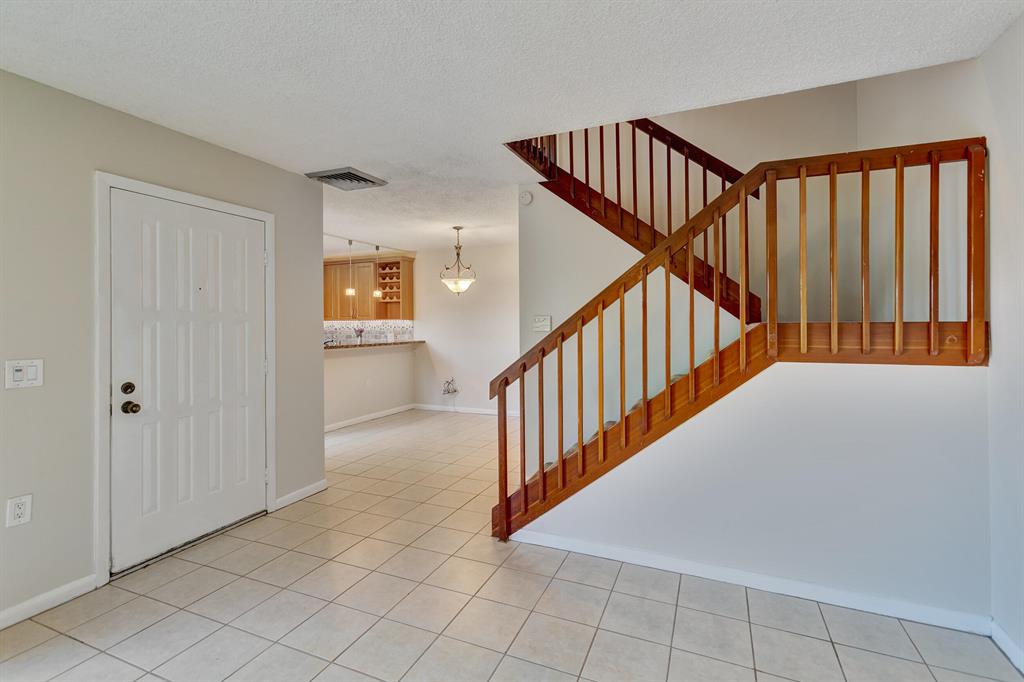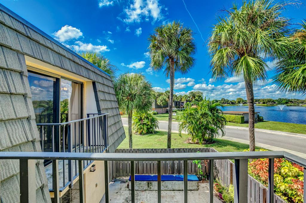 Welcome to this beautiful townhome in the highly desirable community of Sandalwood Lakes. Centrally located in the heart of West Palm Beach, this renovated townhome features neutral tile floors, new interior paint, newer a/c (2020), new fans, fixtures, and renovated bathrooms. Spacious kitchen fully equipped with an abundance of light wood cabinets capped with crown molding and built-in wine rack, Quartz counter tops, custom stone and tile backsplash, under cabinet lighting and sparkling pendant lighting over the breakfast/snack bar. Downstairs powder room redone with new vanity, lighting, and mirror. Plush carpet on steps leads to 2 generous bedrooms, each with their own private balconies overlooking fabulous lake/water views!Master suite features huge walk-in closet with built-ins,