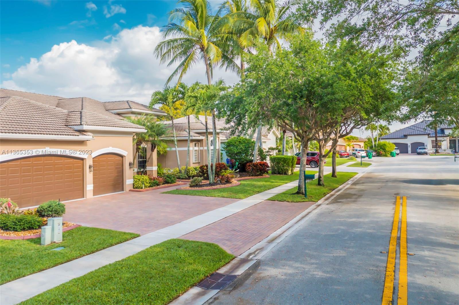 Stunning home in the sought after guard gated section of Majestic Falls in Sunset Lakes. This highly desired Caliterra model is privately located on a cul de sac street w no thru traffic.Its amazing lush landscaping awaits you. Interior features an abundance of natural light, plantation shutters, & new flooring throughout.The kitchen boasts all GE SS appliances, a snack bar & a breakfast nook. Butlers pantry located off of the dining room. Primary suite features 2 large walk-in closets & sliding doors that open to stunning lake views. Pavered Patio is complete w a covered area including a TV & speakers, perfect for entertaining.The beautifully resurfaced freeform pool includes a spa. Lots of greenery for kids & pets Brand new epoxy flooring in garage.Standby Interior photos coming soon.