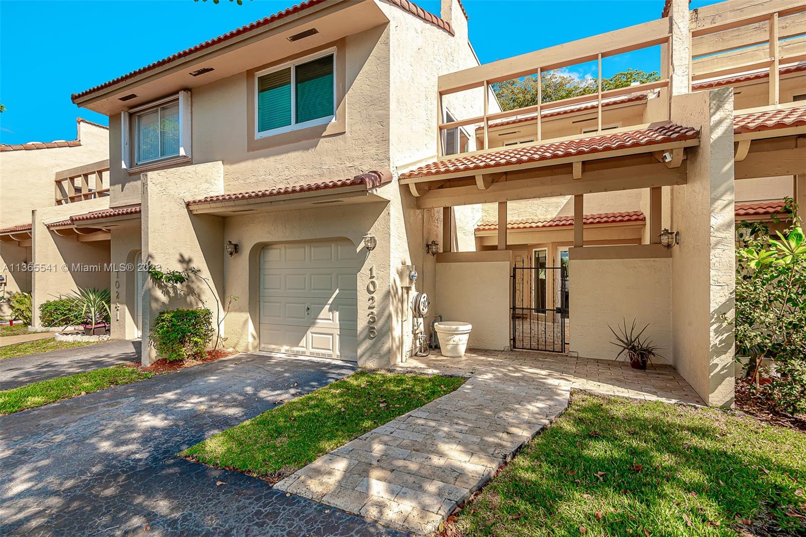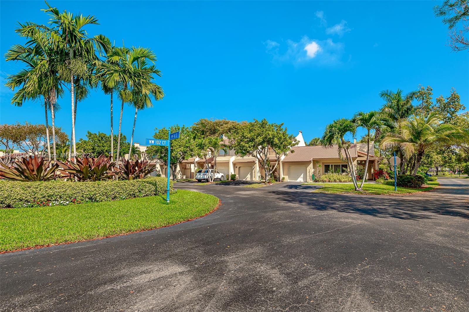 WELCOME TO TOWNHOMES OF DORAL PLACE! EXCLUSIVE/GATED COMMUNITY OF ONLY 83 RESIDENCES FEAUTURING BEAUTIFUL LANDSCAPING SURROUNDED BY GOLF COURSES. OWNER HAS SPARED NO EXPENSE. PAVED COURTYARD ENTRY. MODERN/OPEN KITCHEN FEATURES S/S APPLIANCES, MARBLE COUNTERTOPS, COUNTERTOP SEATING + BREAKFAST AREA. SPACIOUS FORMAL DINING + LIVING ROOM AREAS OFFER NATURAL SUNLIGHT. RECESSED LIGHTS. CROWN MOULDING. BRICK PAVED BACKYARD. ALL WINDOWS & SLIDING GLASS DOORS ARE IMPACT RESISTANT. UPDATED 1/2 BATH DOWNSTAIRS. 3 BEDS/2 BATHS UPSTAIRS. MSTR BEDRM FEAUTURES 2 CLOSETS (1 WALK IN) + INSUITE MODERN BATH. 1 CAR GARAGE + 2 CAR DRIVEWAY. AMPLE GUEST PARKING. WASHER/DRYER. GAS WATER HEATER. A/C (2018). 24/7 SECURITY. COMMUNITY POOL + DORAL PARK COUNTRY CLUB AMENITIES. PRIVATE RESIDENT ENTRANCE. LOW HOA FEES