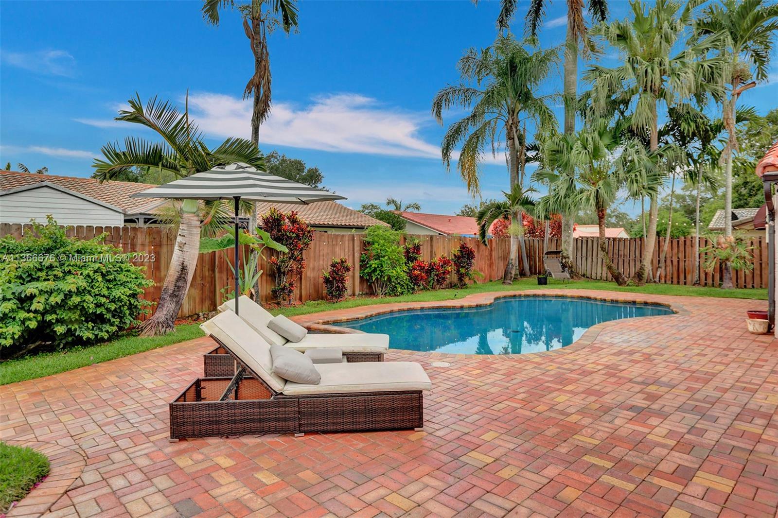Tropical oasis located in the highly desirable Forest Lake neighborhood of Cooper City. Charming 3 bedroom, 2 bathroom PLUS bonus room/office. Two Car Garage. Stunning backyard overlooking your own slice of paradise. The HEATED Pool Builders Inc. pool is exceptional with recent renovations. Great for entertaining! Tile throughout the home with hardwood floors in all 3 bedrooms. Walk-in closet in master bedroom. Fully remodeled kitchen. There is a large side yard for a boat or RV. NO HOA. Beautiful neighborhood with a park with basketball & tennis courts within walking distance from home. Quiet & Peaceful neighborhood, zoned for desirable Cooper City schools, and located minutes to shops and restaurants with easy access to I-75. Come see the area for yourself!