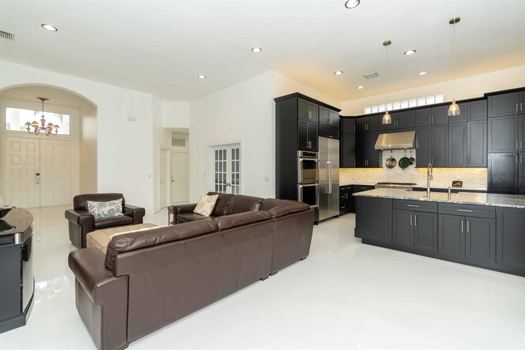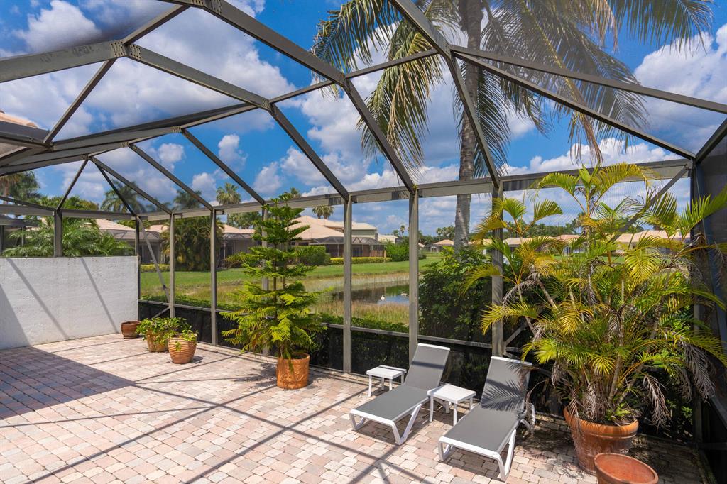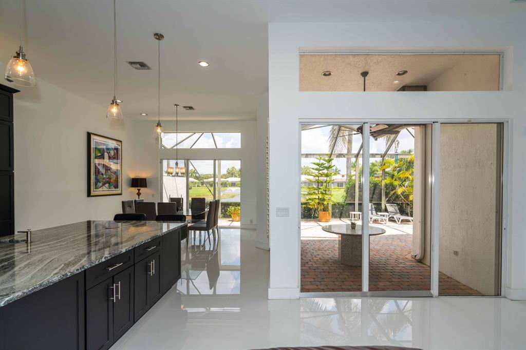 Prestigious Country Club with mandatory club membership. Walk right into this beautifully renovated Hamilton waterfront home with an open floor plan, volume ceilings, high gloss 31 x 31 white porcelain tile through-out living space leading you to a scenic screened in porch with lake and fountains, perfect for entertaining. The home has 3 bedrooms, office with custom built ins & 2 1/2 luxurious bathrooms. Enjoy the state of the art kitchen with oversized top of the line Cambria Quartz island as well as Thermador appliances with double wall oven, gas cooktop and vented hood. LED sealed lighting, house pre wired for 7000W portable generator. Step into the primary suite with custom walk in closets frameless glass enclosureprimary bath is spa level with insulated soak tub.Memberships ava