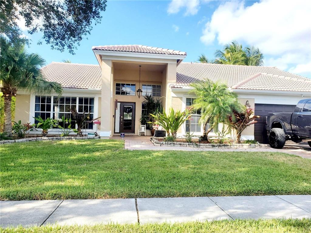 Beautiful Chapel Trail Estates 4/2, 2 car garage with open floor plan. Tranquil lake view with a screened-in heated pool & spa. The only model of its kind to have a custom-designed covered patio that was built to be converted into an additional room in the future. Could also be perfect space for outdoor kitchen! Gorgeous granite counters and spacious island with glass-top stove. Kitchen is completely open to a fun, formal dining or family room. Great for entertaining! Amazing schools! Close to everything!