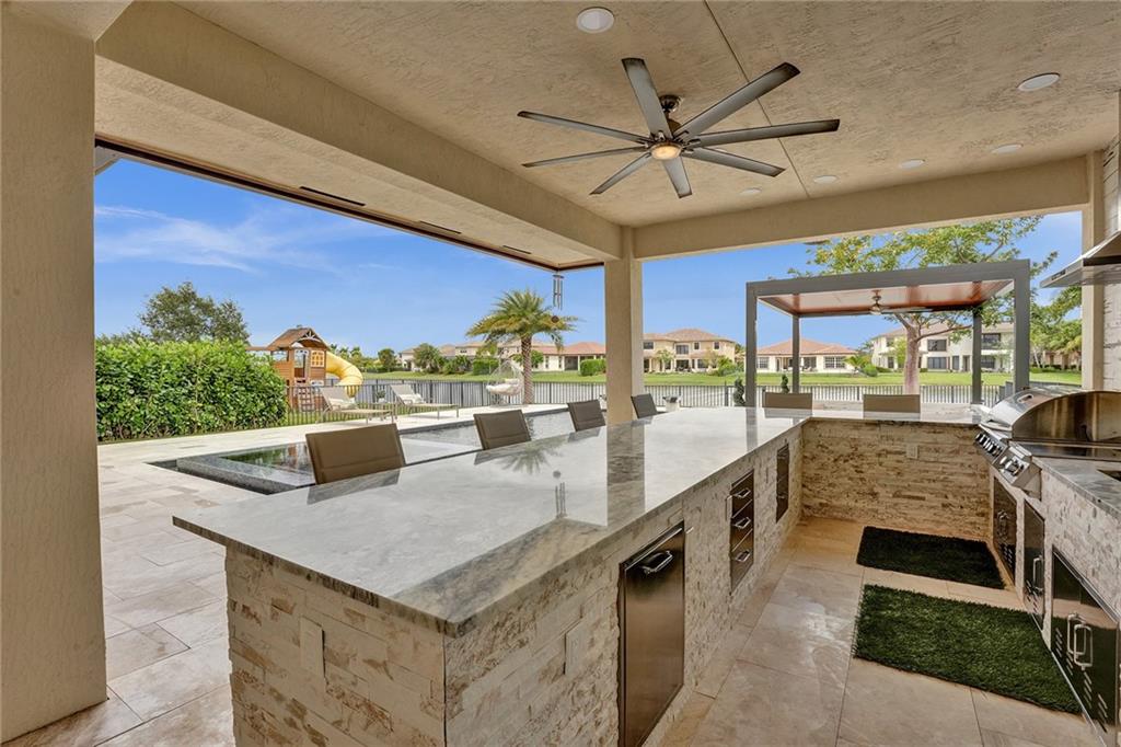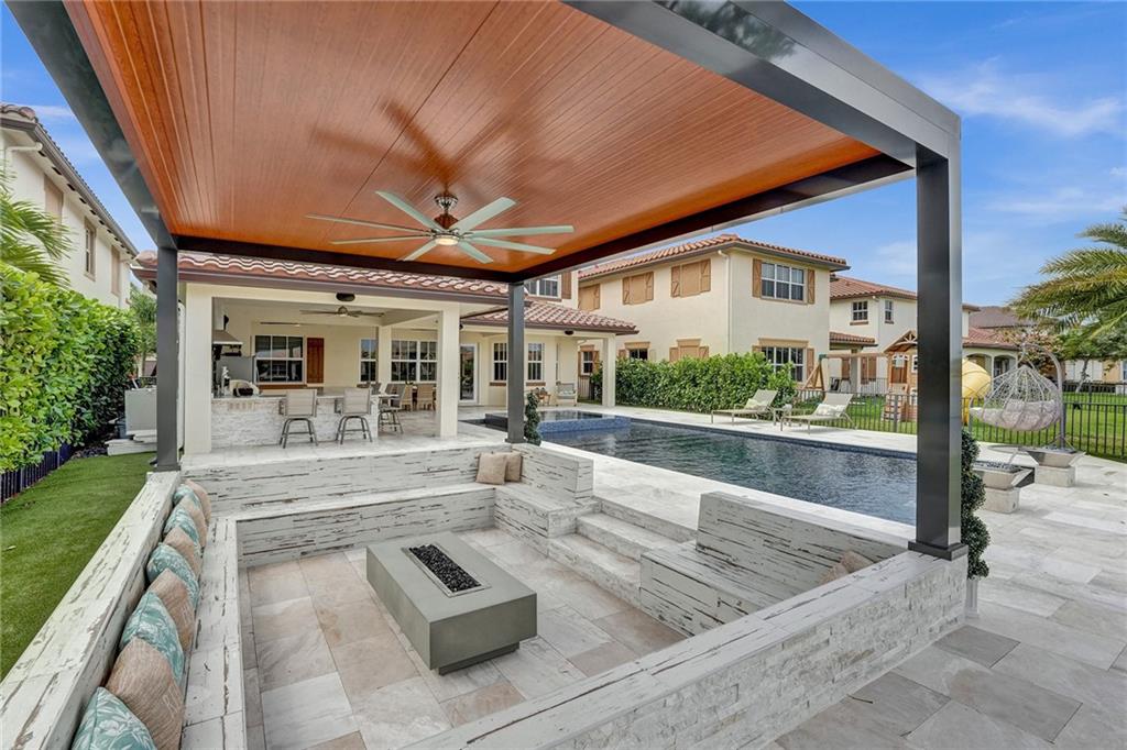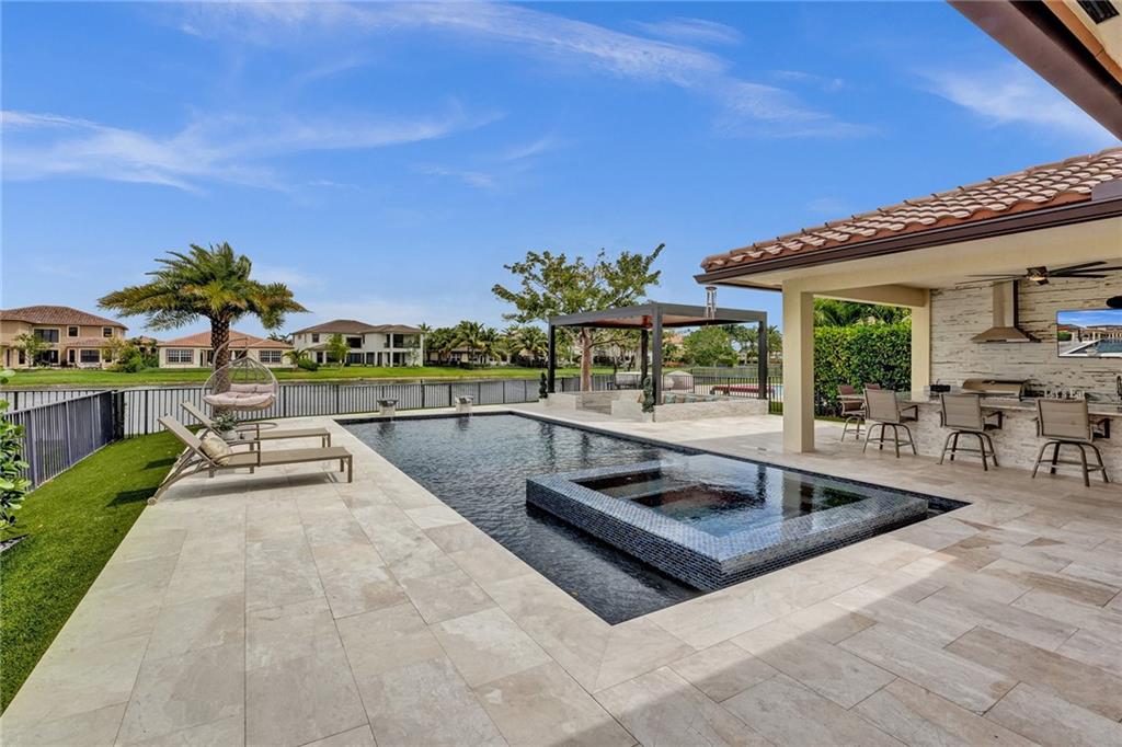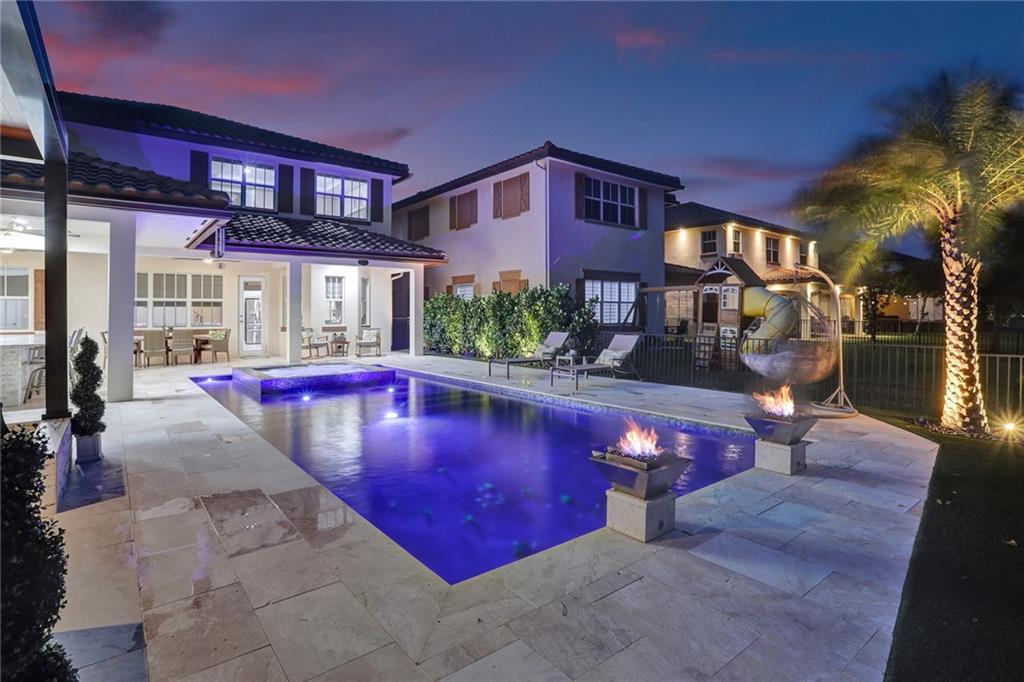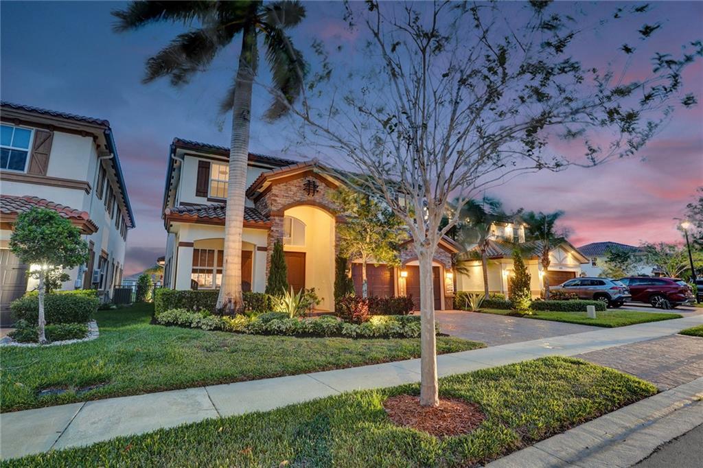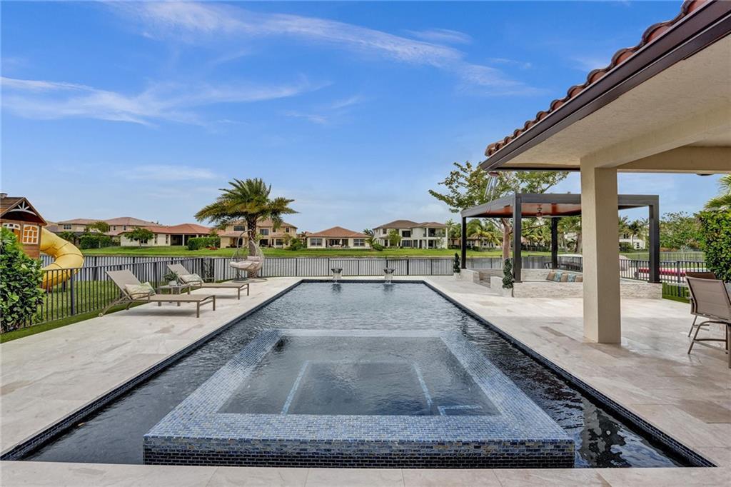 Wow! Wow! Wow! One of a kind magnificent home with additions and upgrades over $400K+ spent. Just a meticulously kept home with every detail thought of. This backyard is better than any high end resort. All the bells and whistles you can dream of with the finest materials. Upgrades and features listed attached as there are too many to mention. 5 Bedrooms (one first floor) and 4 full baths; gas cooking, dryer and tank less water heater, impact windows and doors, all brick construction. No detail left undone on this lakefront Miralago beauty. Amazing gated community; with resort-style amenities. A clubhouse and a sportsplex including gyms, tennis, indoor and outdoor basketball, billiards room, tot lots, kids Water Parks and amazing party and ballroom. Showings begin 4-14-2023. Come see!