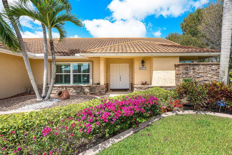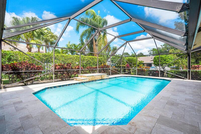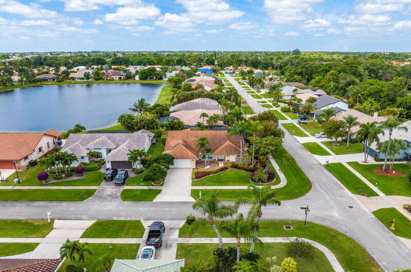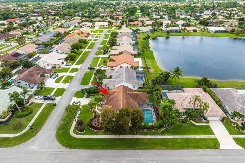 Beautiful & spacious 2466 SF 4 bed, 2.5 bath POOL home made for entertaining! Great Boca location w/ A rated schools. Features include LIFETIME metal roof (looks like Spanish tile!), solar hot water, heat pump on pool, security cameras around perimeter, Ring doorbell, Wi-Fi controlled sprinkler system draws water from the lake, lush tropical landscaping. Front door and 3 sliders are impact, energy efficient windows have accordion shutters, screened pool and deck recently upgraded w/ waterfall. Interior boasts large gourmet eat in kitchen, Kitchen Aid appliances, Kraft Maid cabinets, split floor plan, primary suite, custom cabs in primary & 1/2 bath, engineered hardwood in 3 bedrooms, top of the line plantation shutters thru out, formal dining w/ wet bar. HOA only $121/quarter. A must see!