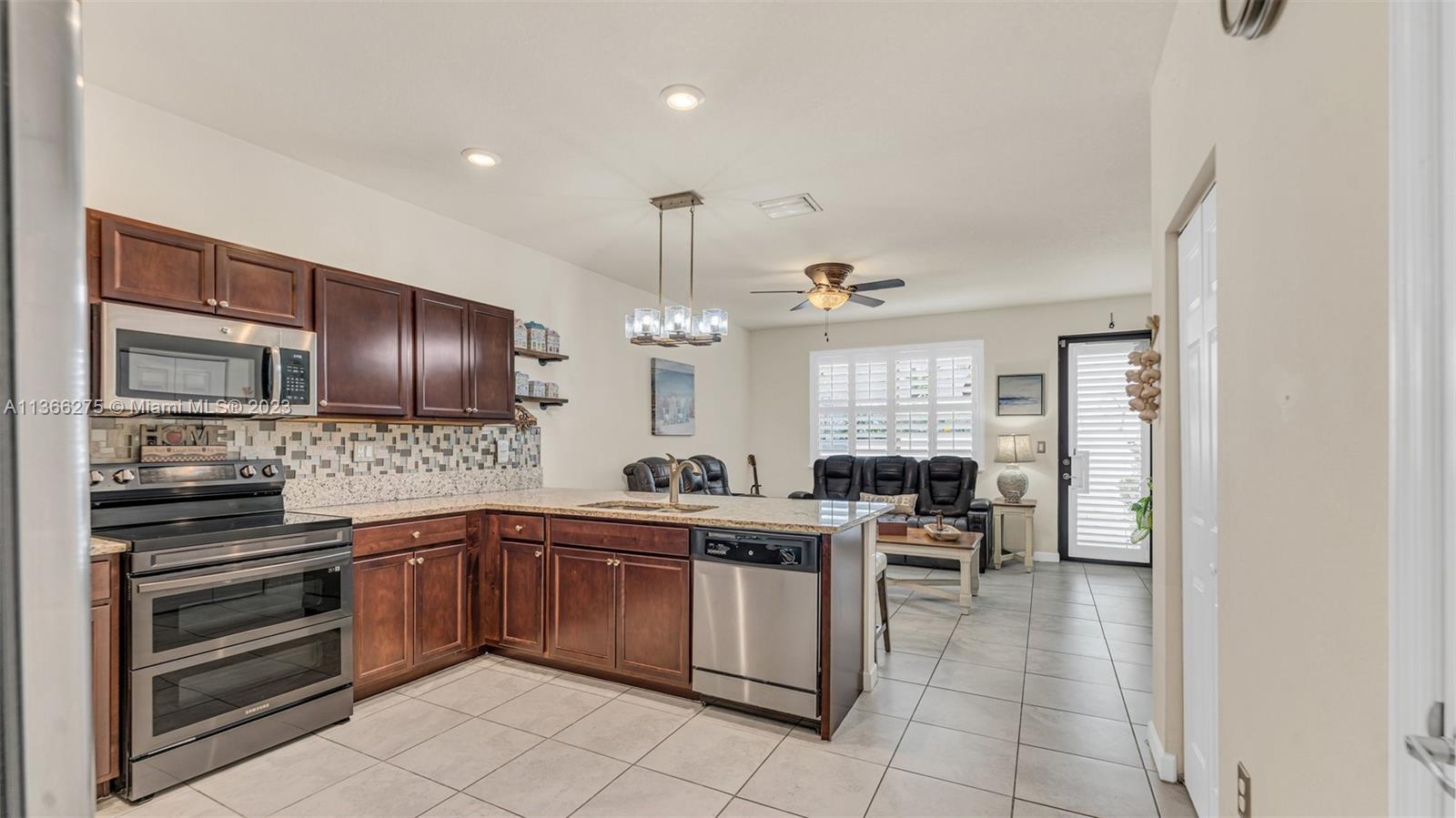Lennar AquaBella, 3 bd/2.5 and Separate 1 bd/1 bth in law quarters with it's own private entrance built by Lennar Homes. Home is located on a cul-de-sac with a view to the lake. This amazing two-story corner home features stainless steel appliances, granite counter tops, plantation shutters, fenced yard with white PVC privacy fence, custom outdoor lighting, accordion hurricane shutters and keyless entry. Private gated community with clubhouse, pools, business center, fitness center, kids game room, water park, plenty of parking spaces for residents and guests. Close major highways, shopping and restaurants
