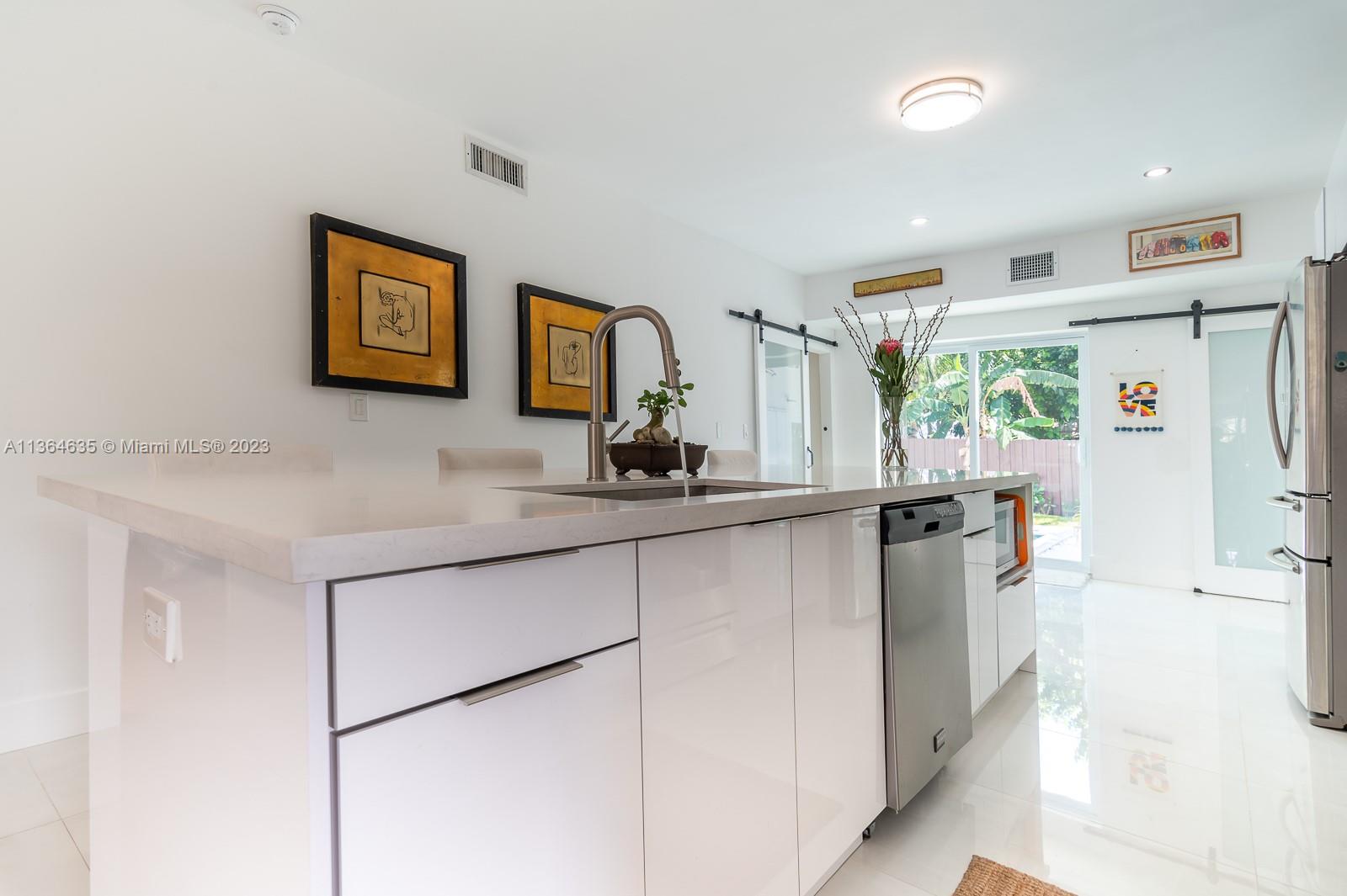 Remolded 2700+ square foot Old Spanish in Griffin Park Estate ( Biscayne Park Area). This 4/3 home has new high impact windows, a great pool, and finished to a high standard. The new kitchen is in the center of a great room which allows for the enjoyment of this home. The huge master suite suite leads out to the pool. All 3 gorgeous bathrooms are finished glass showers, and multiple barn doors tie in the design of the interior. To the west of the Kitchen is a very large room(currently used as a home office and a work out area) which can easily be converted to a family or a Florida room. This corner property is across the street from a park for added enjoyment.