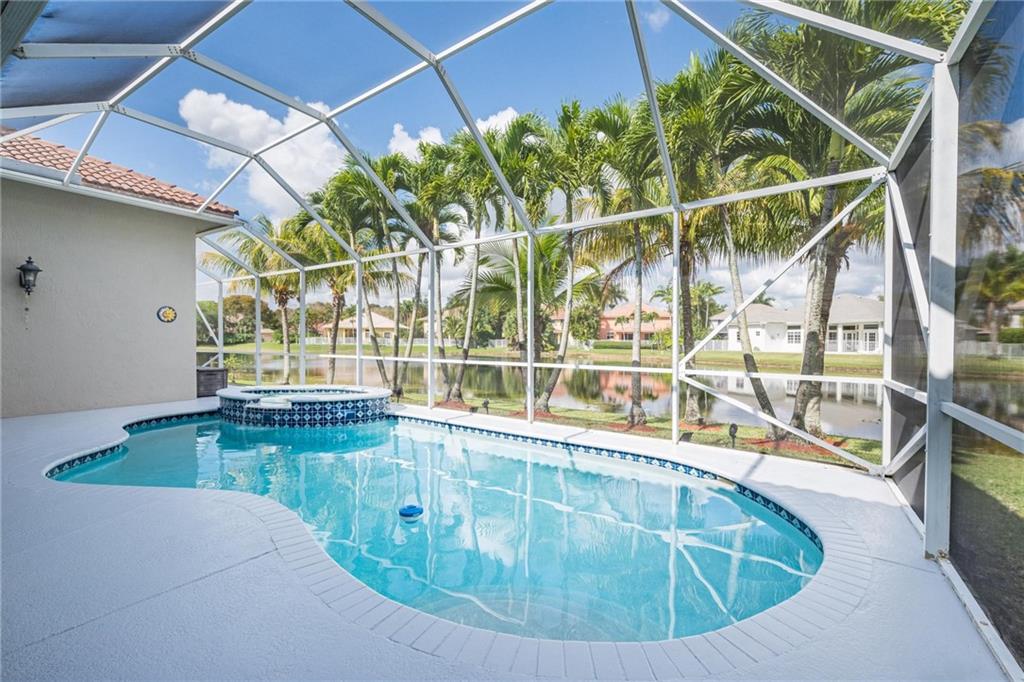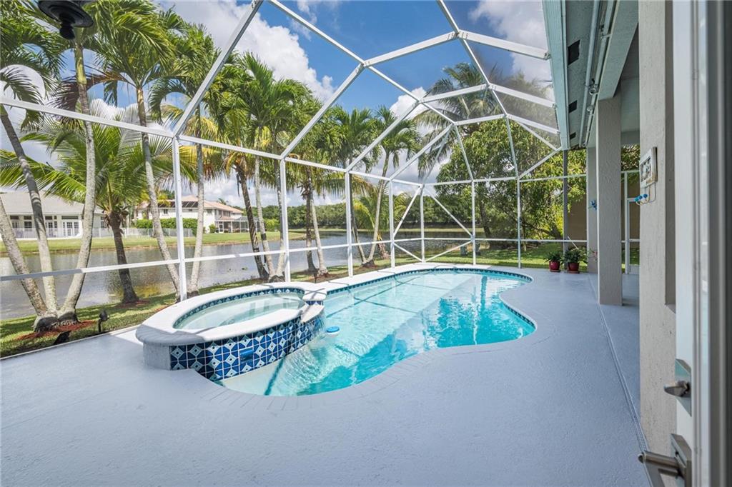Level Up with this Sharp and Modern Pool home located on wide waterfront lot. Home fully remodeled in 2018 with the following improvements: Kitchen and All Appliances, All Bathrooms, All Flooring, Pool Heater, Pool Motor, Water Heater, 2 new ac units, Molding and more. Open floor plan allows the space to flow seamlessly. Master Bedroom has sitting area that can be converted to office/gym/sitting area. High ceilings throughout. Tons of light and views from most rooms in the house. Enter paradise on pool/patio deck with raised spa and huge overhang to relax and take it all in. A plus schools. 24 hour Guard gated community with pickleball and basketball courts, pool, playgrounds, walking trails, and open space.