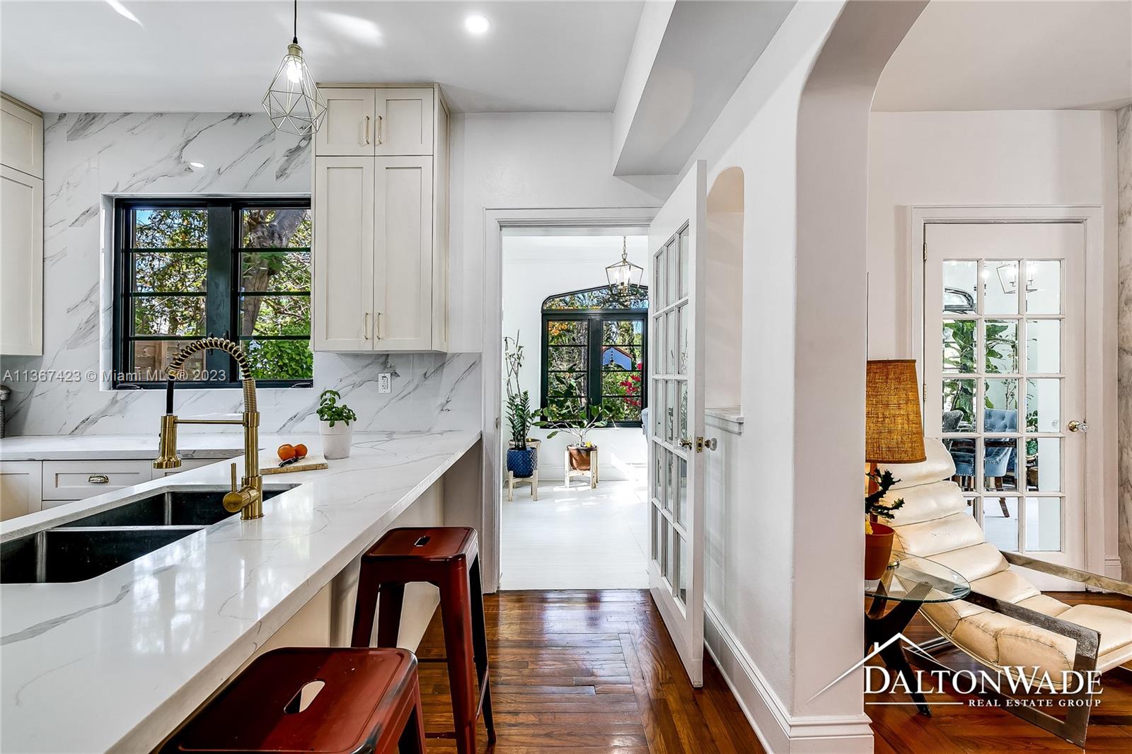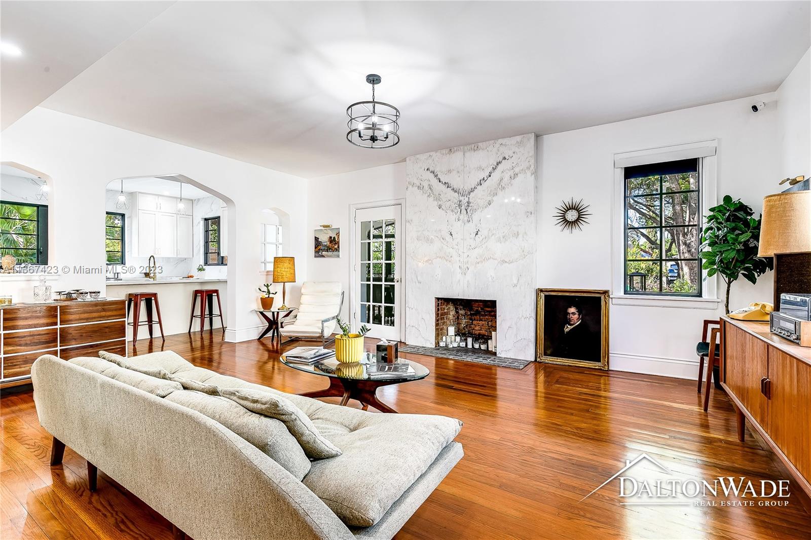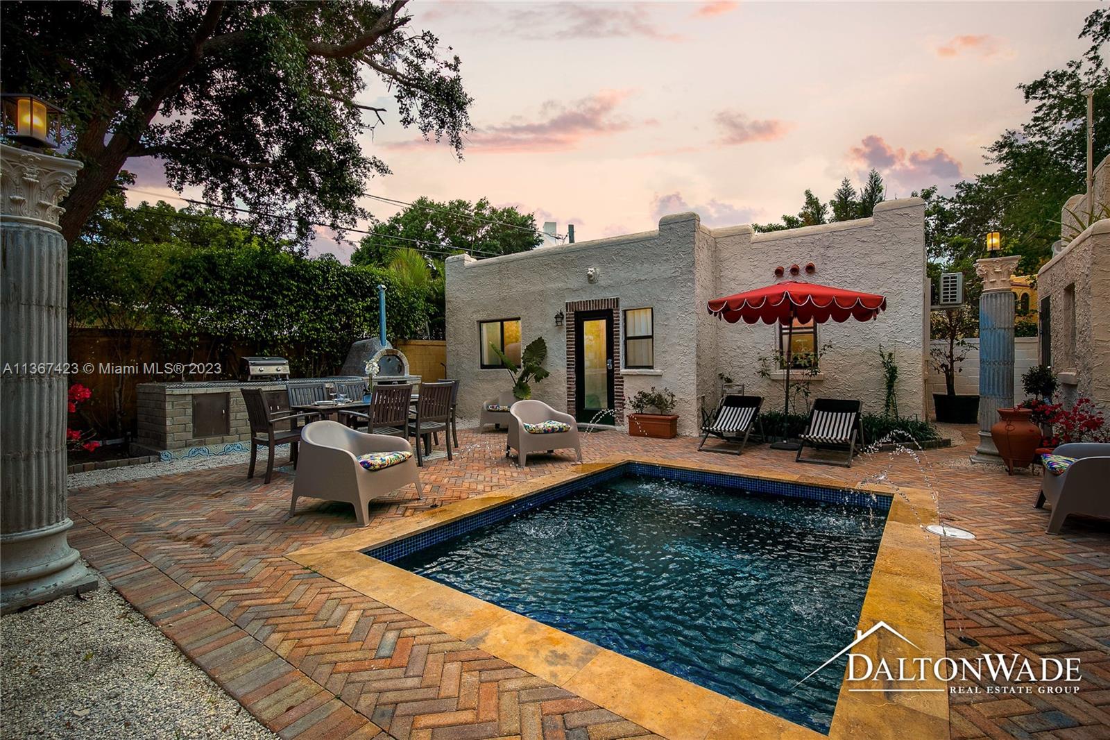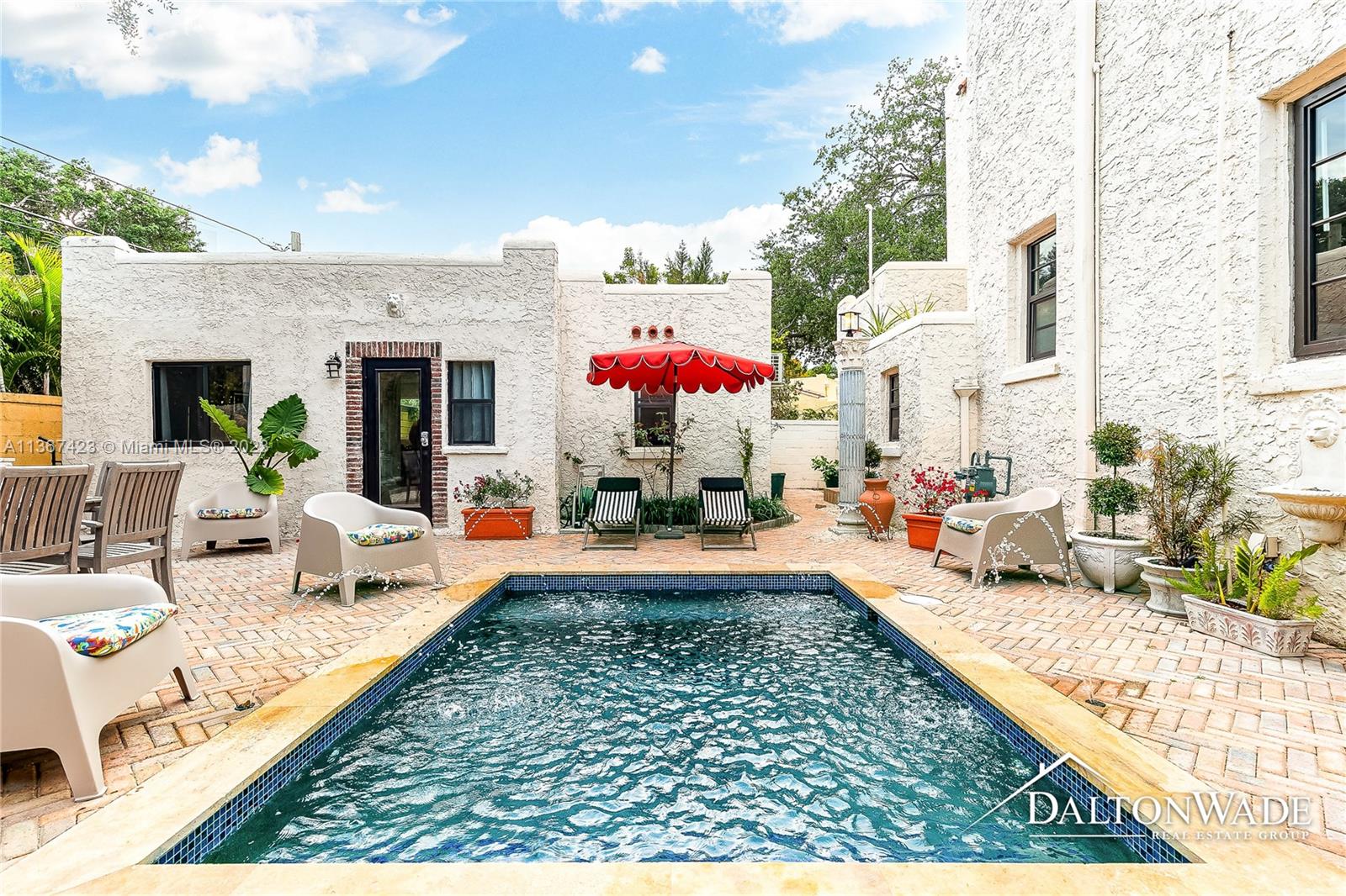 Nestled in the historic highly sought after neighborhood of Morningside, located on the cusp of Biscayne Bay is this exquisite five-bedroom, four-bathroom Mediterranean manor. The open-concept living and kitchen area creates an entertainment hub, while expansive windows and French doors invite an abundance of natural light, creating a vibrant atmosphere. The centerpiece of this luxurious retreat is the heated saltwater pool. Adjacent to the pool lies the al fresco kitchen, an outdoor culinary paradise, perfect for hosting intimate gatherings. This fully renovated home with a cozy in-law suite overlooking the pool offers unparalleled luxury and warmth.