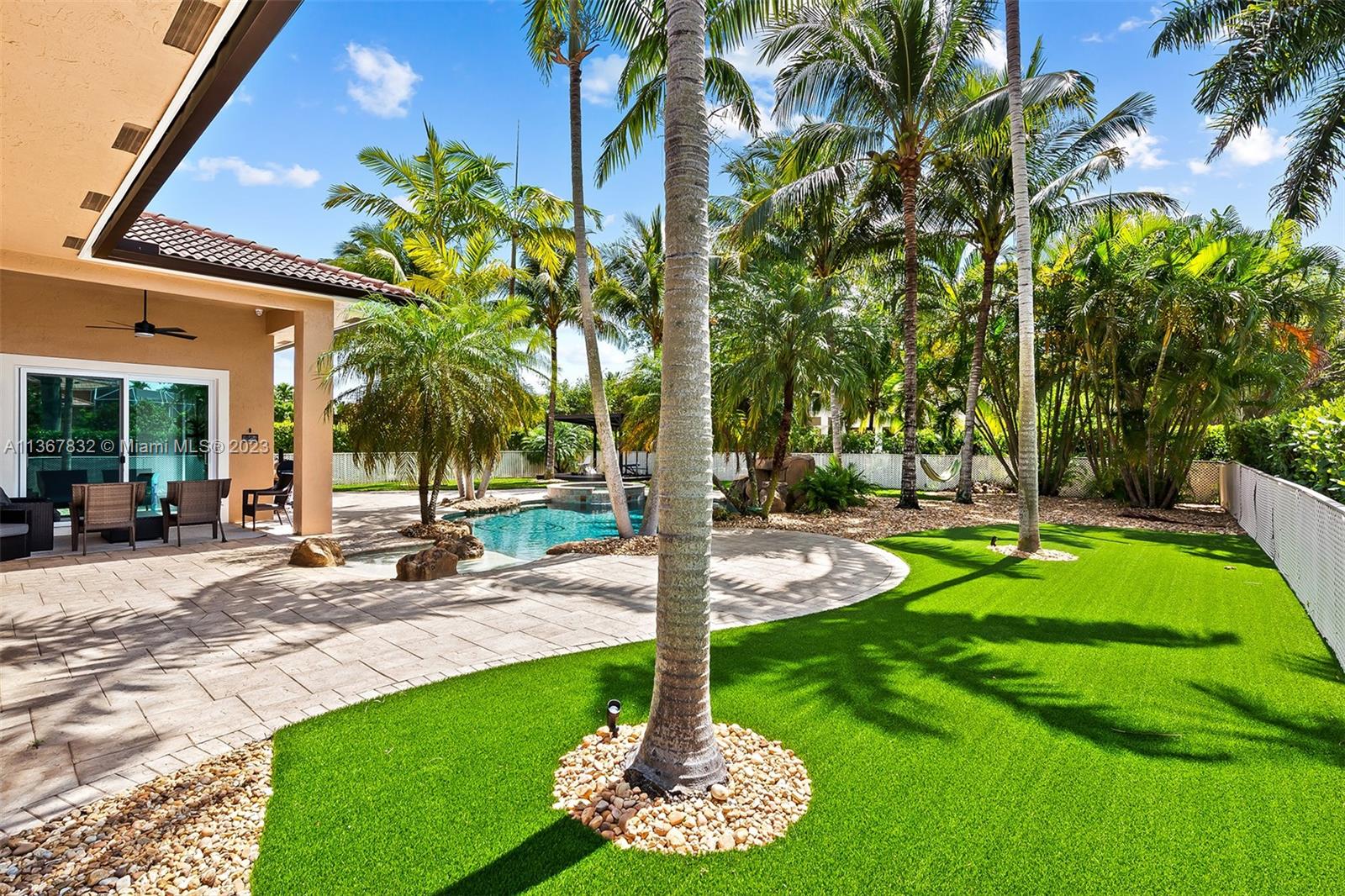 Welcome to the most upgraded home in the gated community of Wyndham Lakes! This gorgeous home received a full renovation with $250k+ in upgrades. Lush landscaping with landscape lighting throughout the property. Marble floors lead you back into the impressive modern kitchen with double stack cabinets, thick quartz counters with waterfall edges, and an island oriented towards the great room. The great room is centered around a custom built-in floor to ceiling marble fireplace surround. Sliding doors lead out to a large lanai and a massive backyard with a pool & spa, turf and a gazebo, perfect for an outdoor gym setup. Upgraded bathrooms with frameless shower glass are sure to impress. New hurricane impact doors and windows throughout, new AC & water heater. Wood floors in all bedrooms.