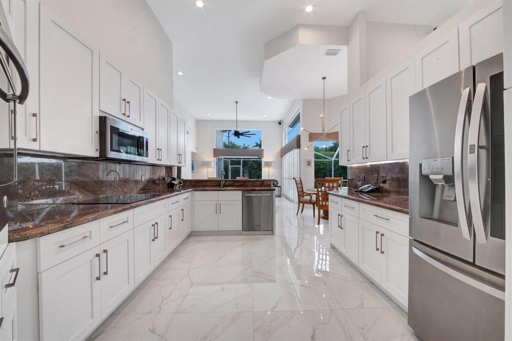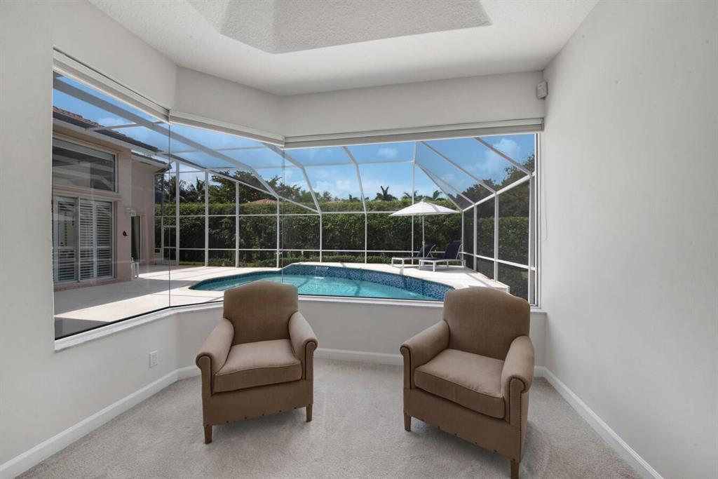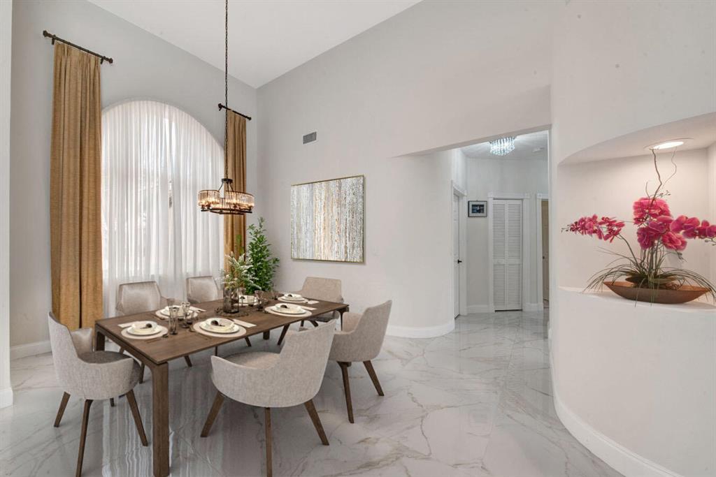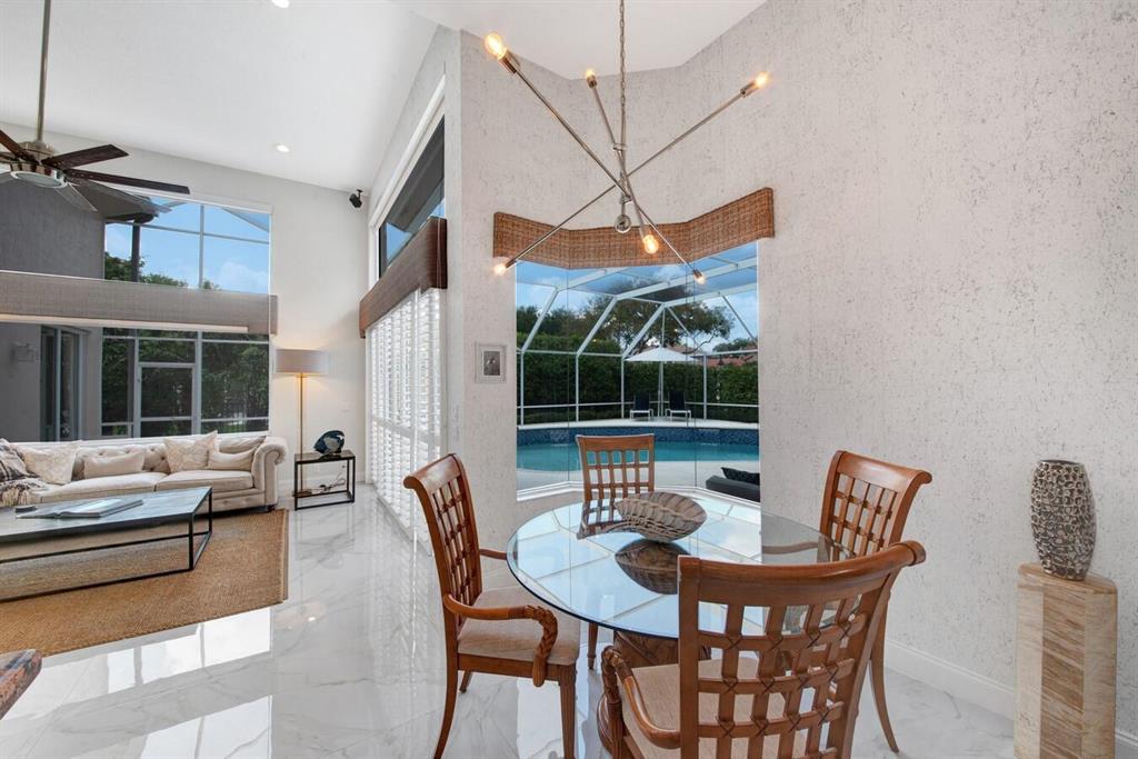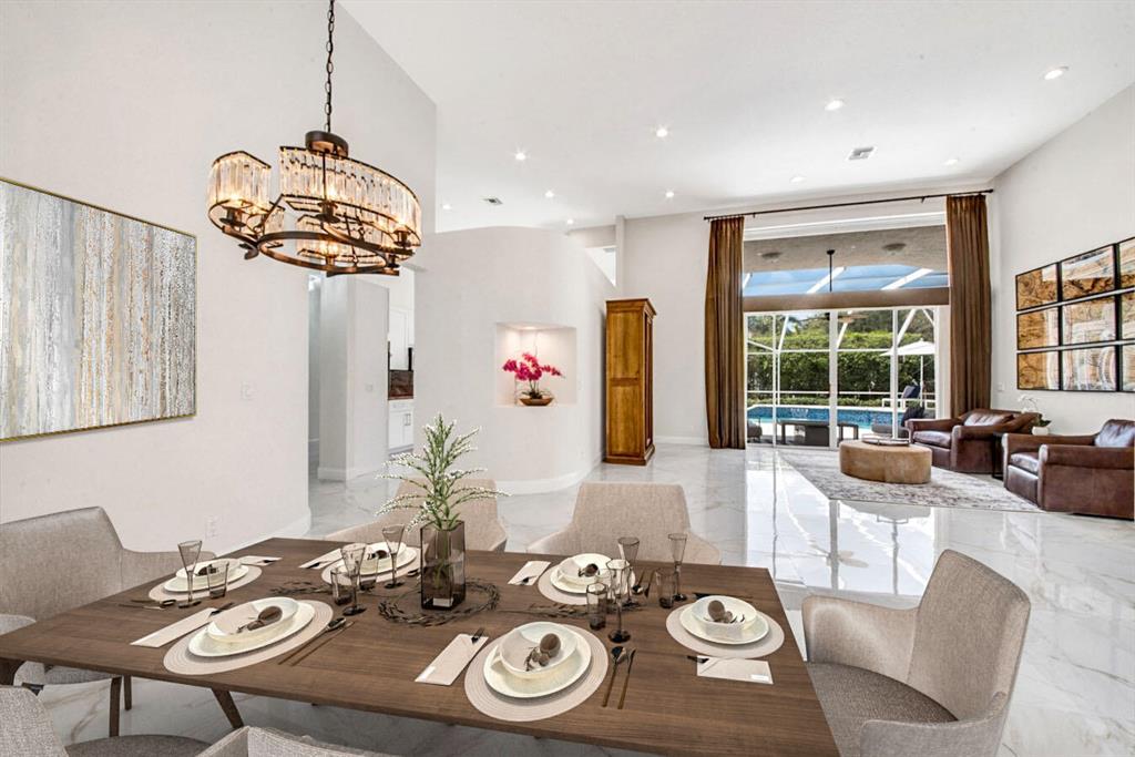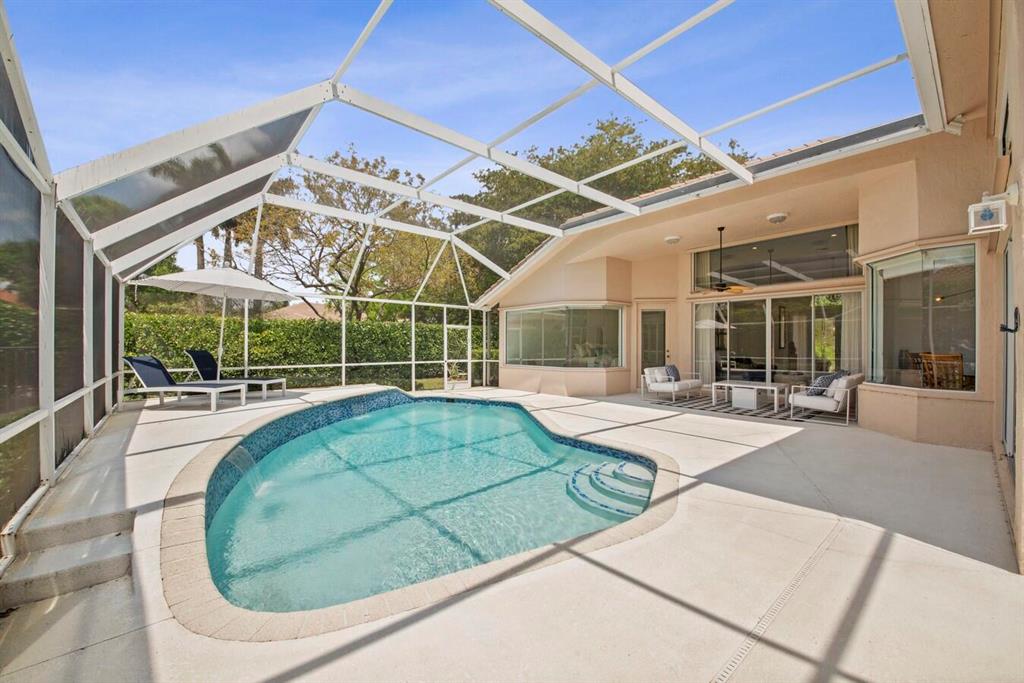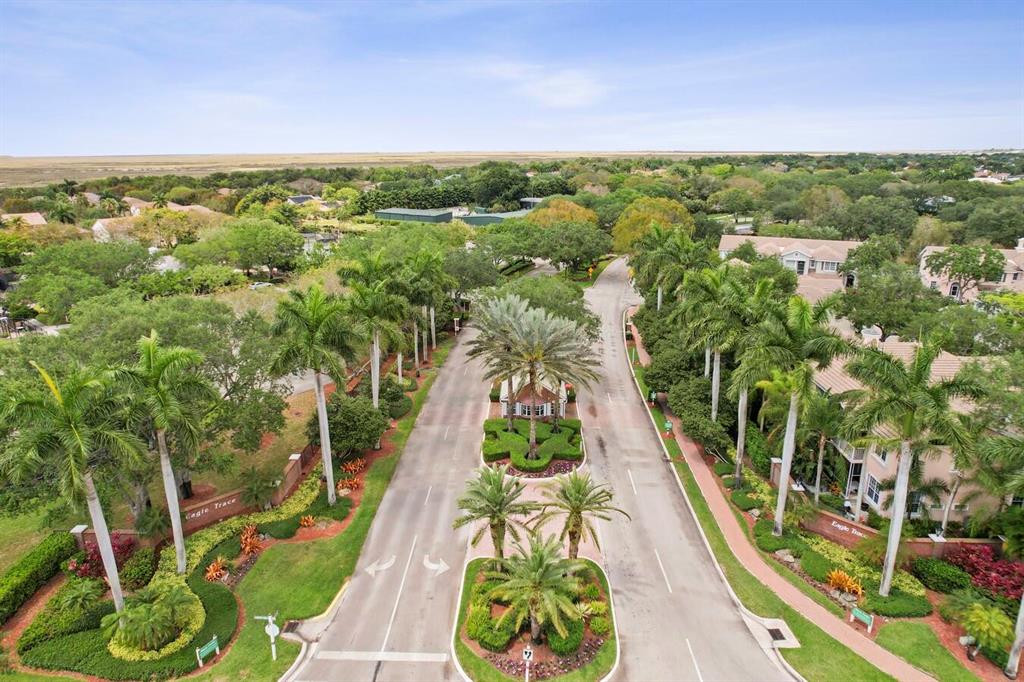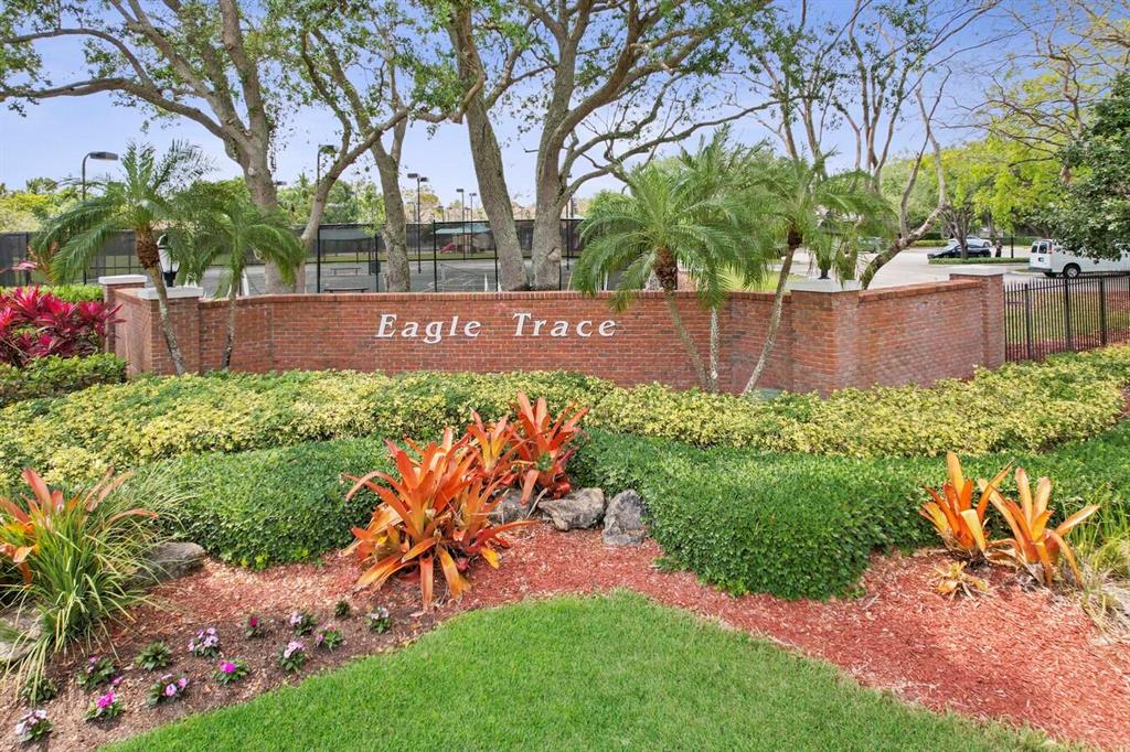 A residence of exquisite distinction awaits in this 5 bedrooms, 3 bath home, located in the Greens section of Eagle Trace a TPC non-equity premier golf community. Perfect combination of private living and easy entertaining with a formal living room dining room, family room and screen enclosed pool. Stunning dream kitchen with modern white cabinets, under cabinet lighting, granite countertops, full granite backsplash, stainless steel appliances, a snack bar and a breakfast nook. The spacious primary retreat features a double door entrance, sitting area, door to the patio and his and her walk-in closets. Luxurious primary bath provides dual sinks with granite counters, jetted tub and a walk-in shower.