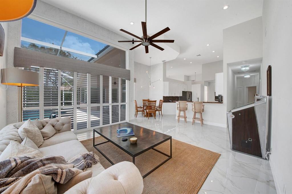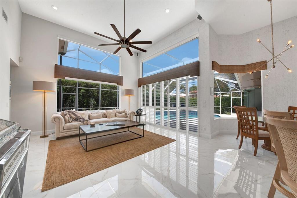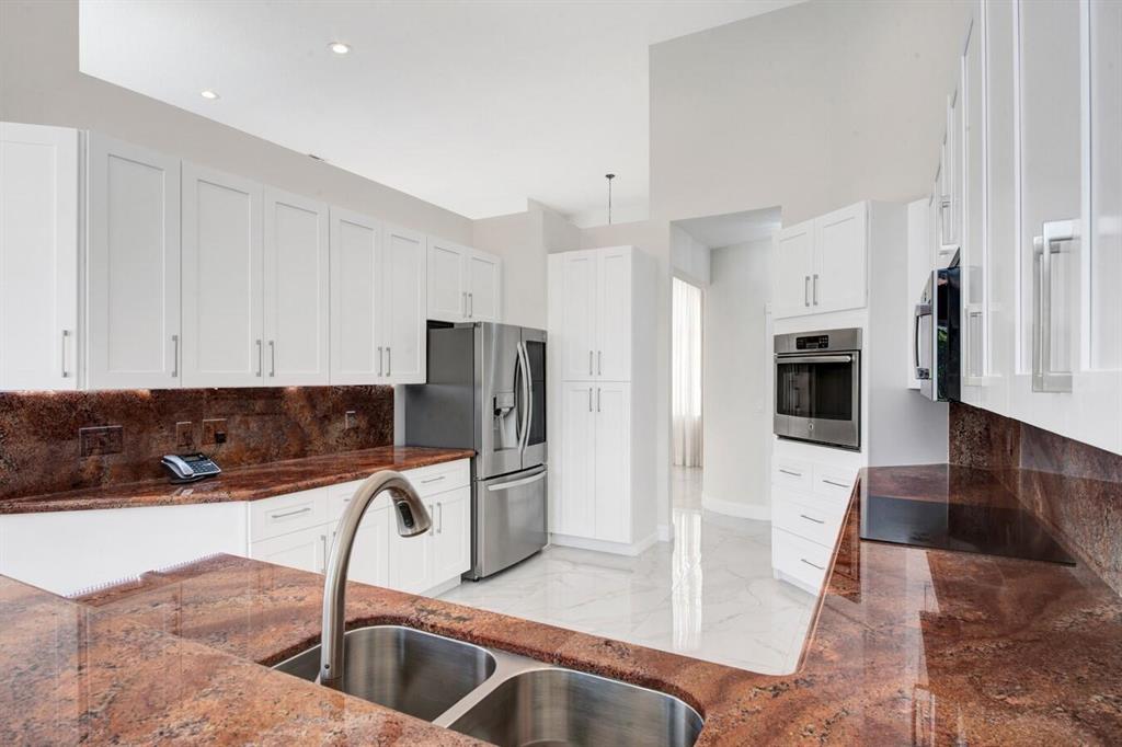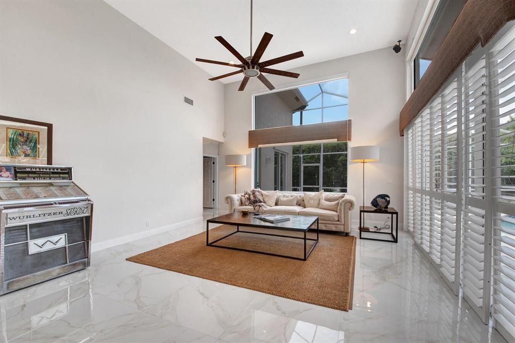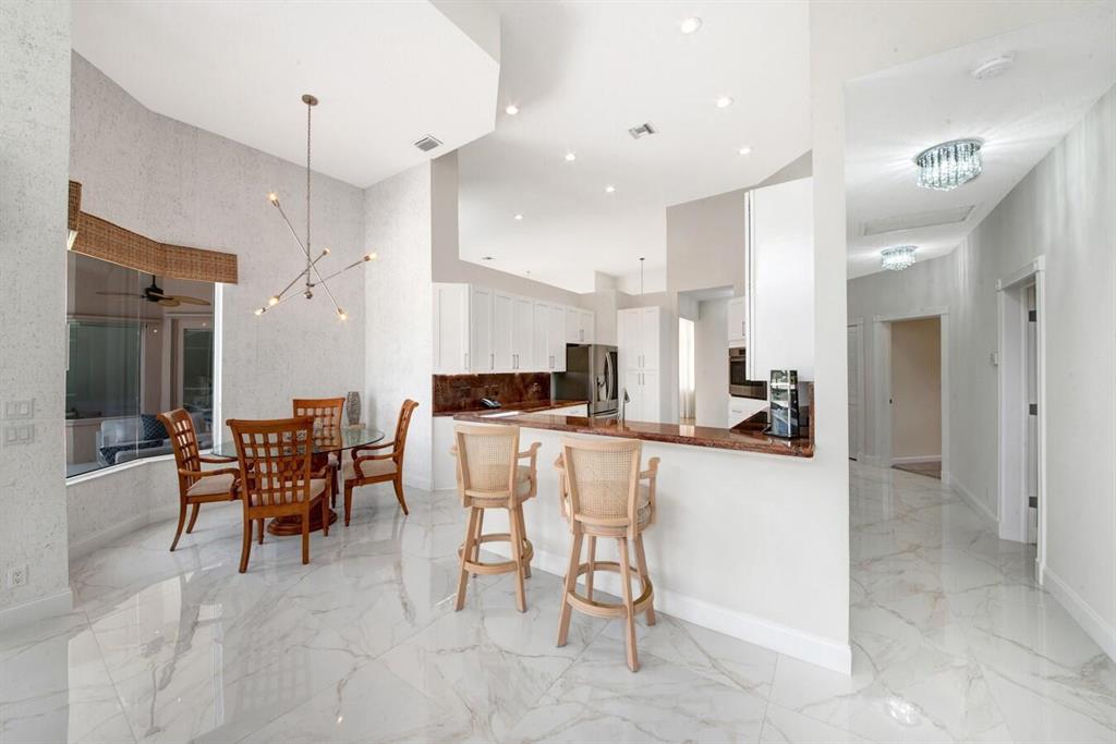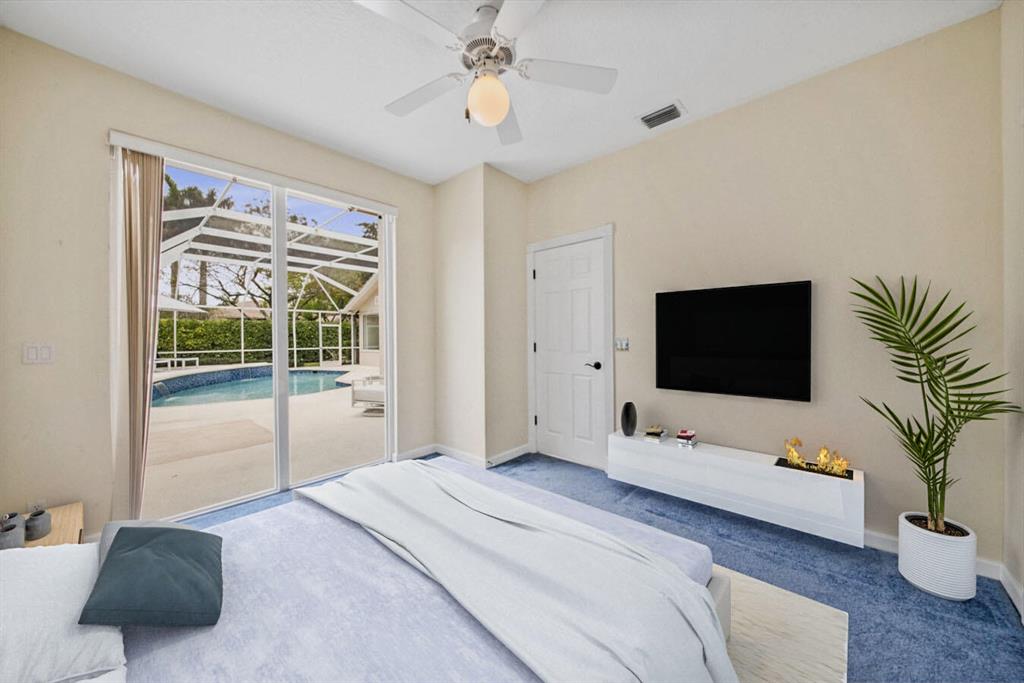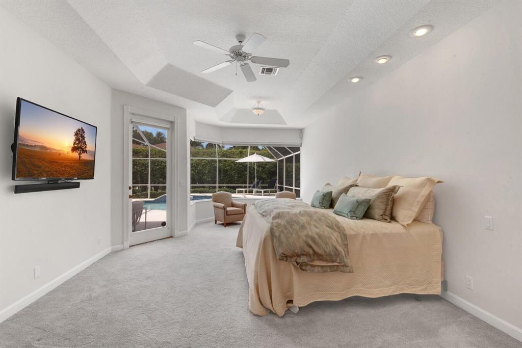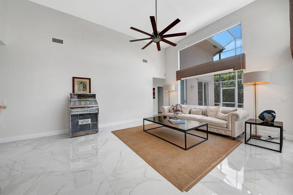 A residence of exquisite distinction awaits in this 5 bedrooms, 3 bath home, located in the Greens section of Eagle Trace a TPC non-equity premier golf community. Perfect combination of private living and easy entertaining with a formal living room dining room, family room and screen enclosed pool. Stunning dream kitchen with modern white cabinets, under cabinet lighting, granite countertops, full granite backsplash, stainless steel appliances, a snack bar and a breakfast nook. The spacious primary retreat features a double door entrance, sitting area, door to the patio and his and her walk-in closets. Luxurious primary bath provides dual sinks with granite counters, jetted tub and a walk-in shower.
