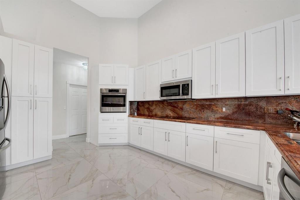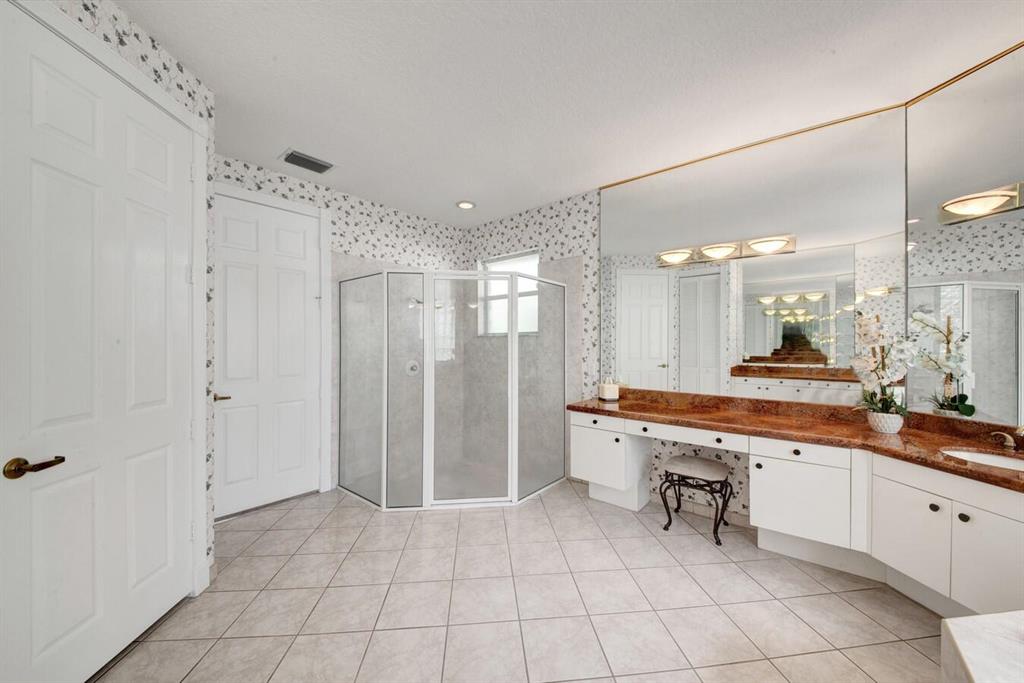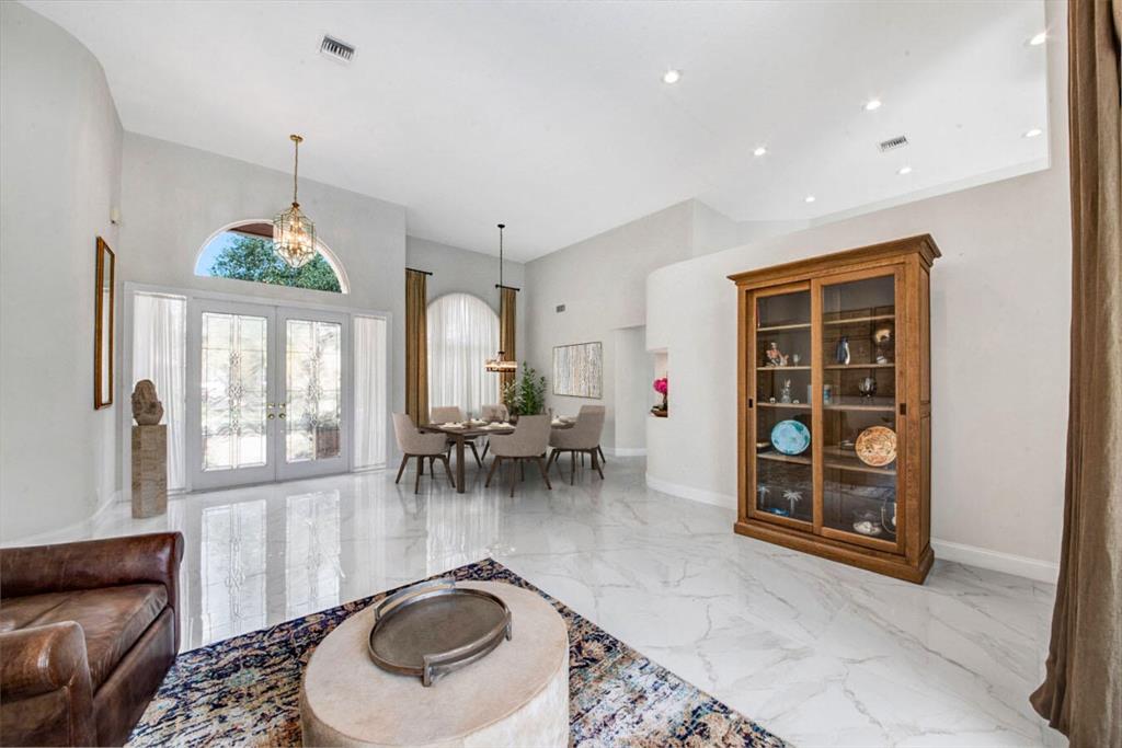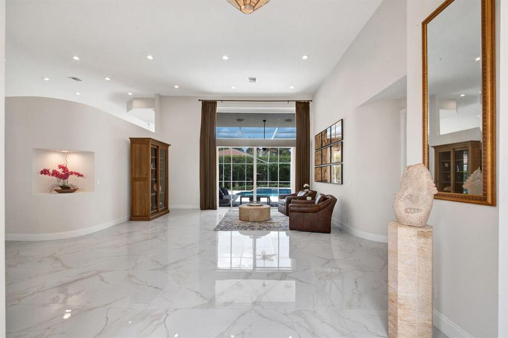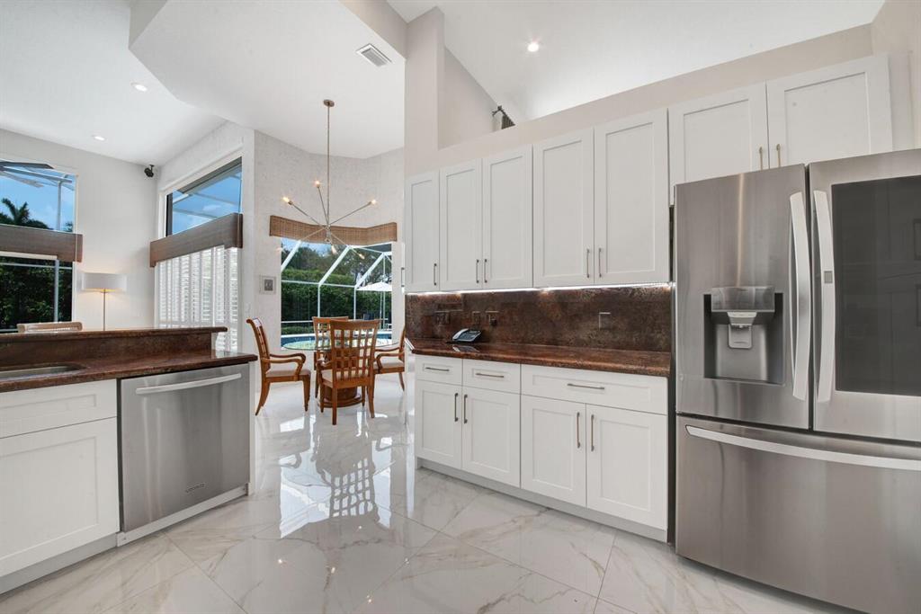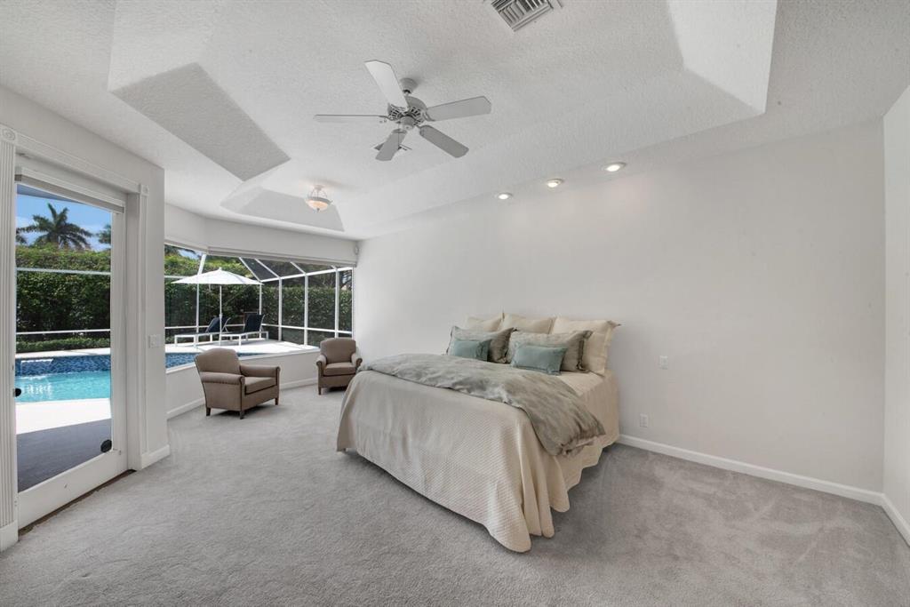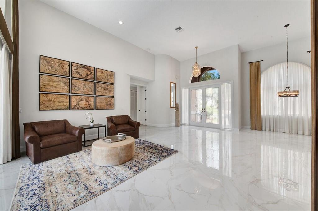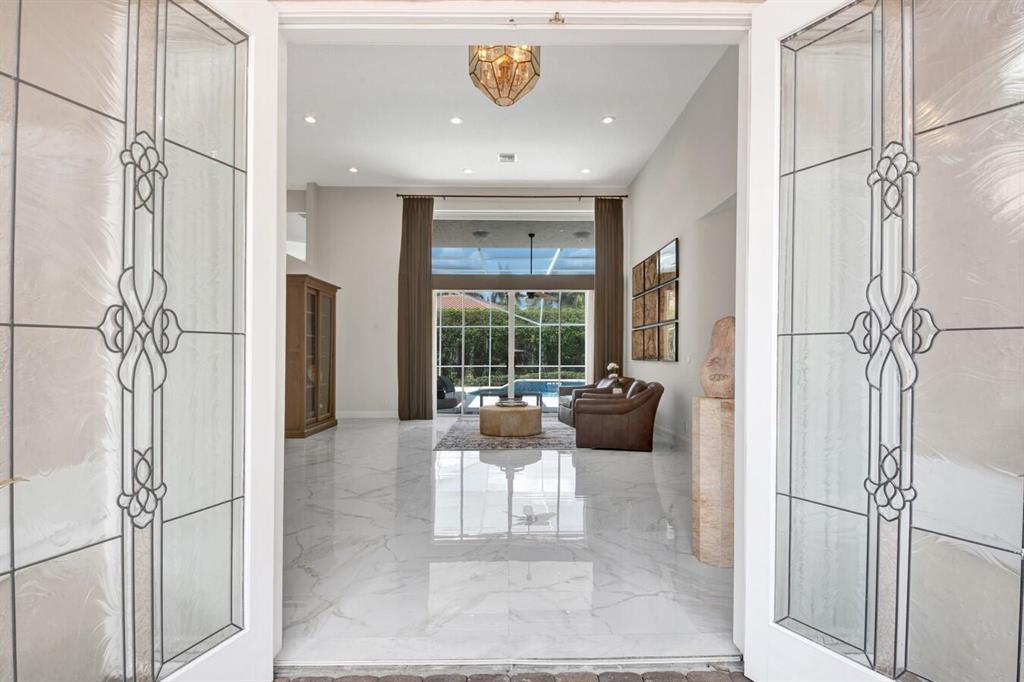 A residence of exquisite distinction awaits in this 5 bedrooms, 3 bath home, located in the Greens section of Eagle Trace a TPC non-equity premier golf community. Perfect combination of private living and easy entertaining with a formal living room dining room, family room and screen enclosed pool. Stunning dream kitchen with modern white cabinets, under cabinet lighting, granite countertops, full granite backsplash, stainless steel appliances, a snack bar and a breakfast nook. The spacious primary retreat features a double door entrance, sitting area, door to the patio and his and her walk-in closets. Luxurious primary bath provides dual sinks with granite counters, jetted tub and a walk-in shower.