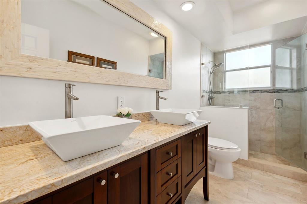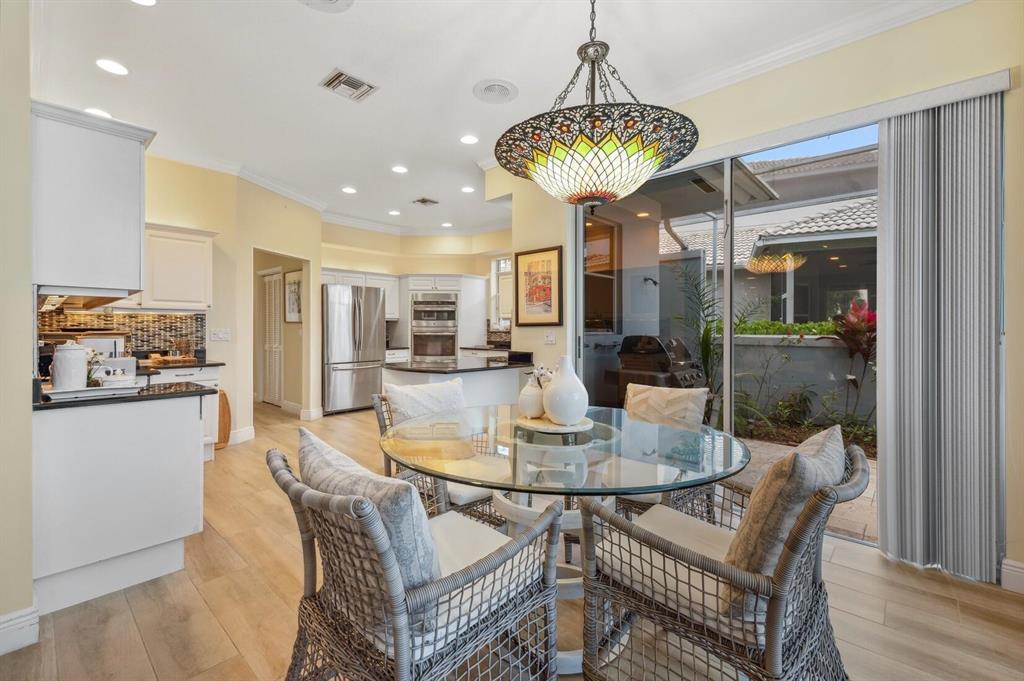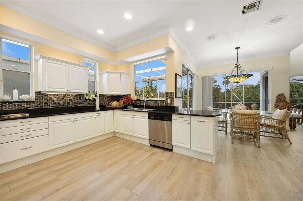Serene island style living is found in this beautiful 2 story pool home located on a quiet cul -de- sac. The moment you enter you will be taken in by the sweeping wrap around waterfront views and double green fairways of Mayacoo Lakes country club golf course . Newer Roof 2014. This renovated 3 BR/3BA fireplace plus elevator is filled with natural light that pours in to all public rooms and bedrooms. A generous master suite with balcony overlooks the screened heated salt water pool with travertine marble flooring. Enjoy morning coffee and evening sunsets in gracious laid back style. Kitchen has mosaic back splash with stainless steel appliances and granite counters. All baths are beautifully updated making this a turn key home